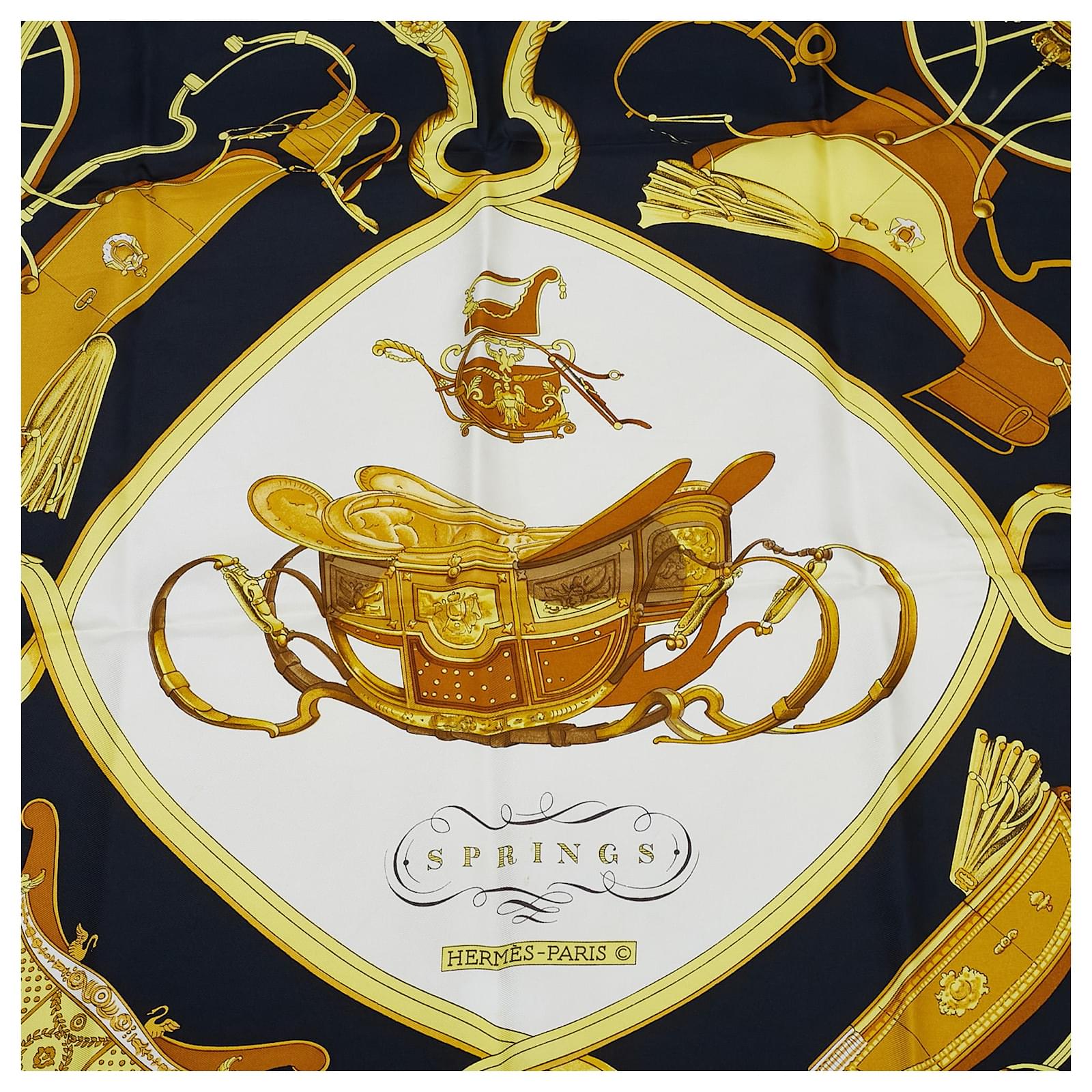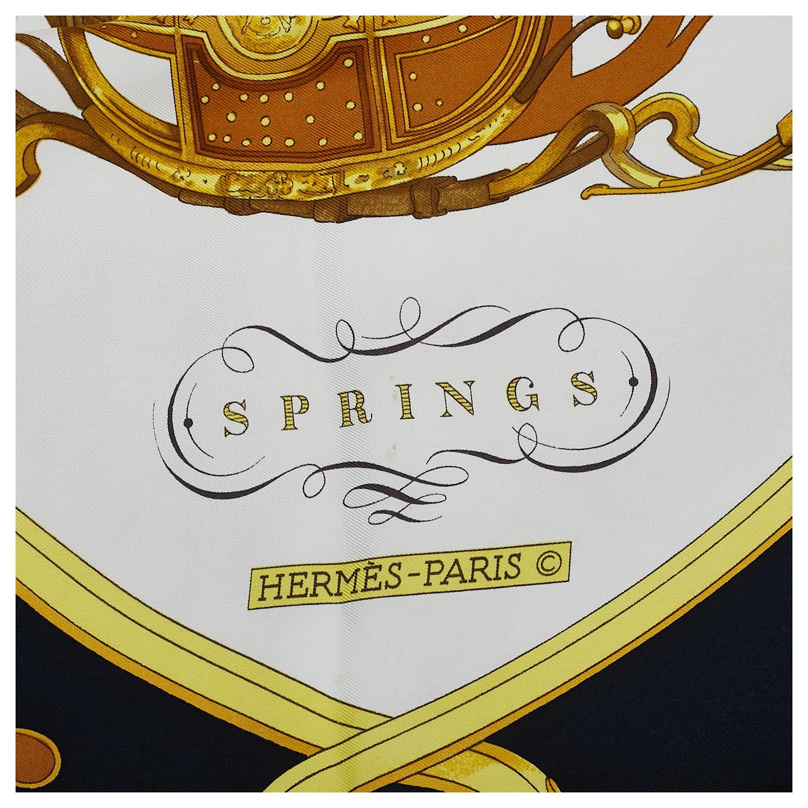 This scarf features a Springs print on 100% silk. It carries an AB condition rating.