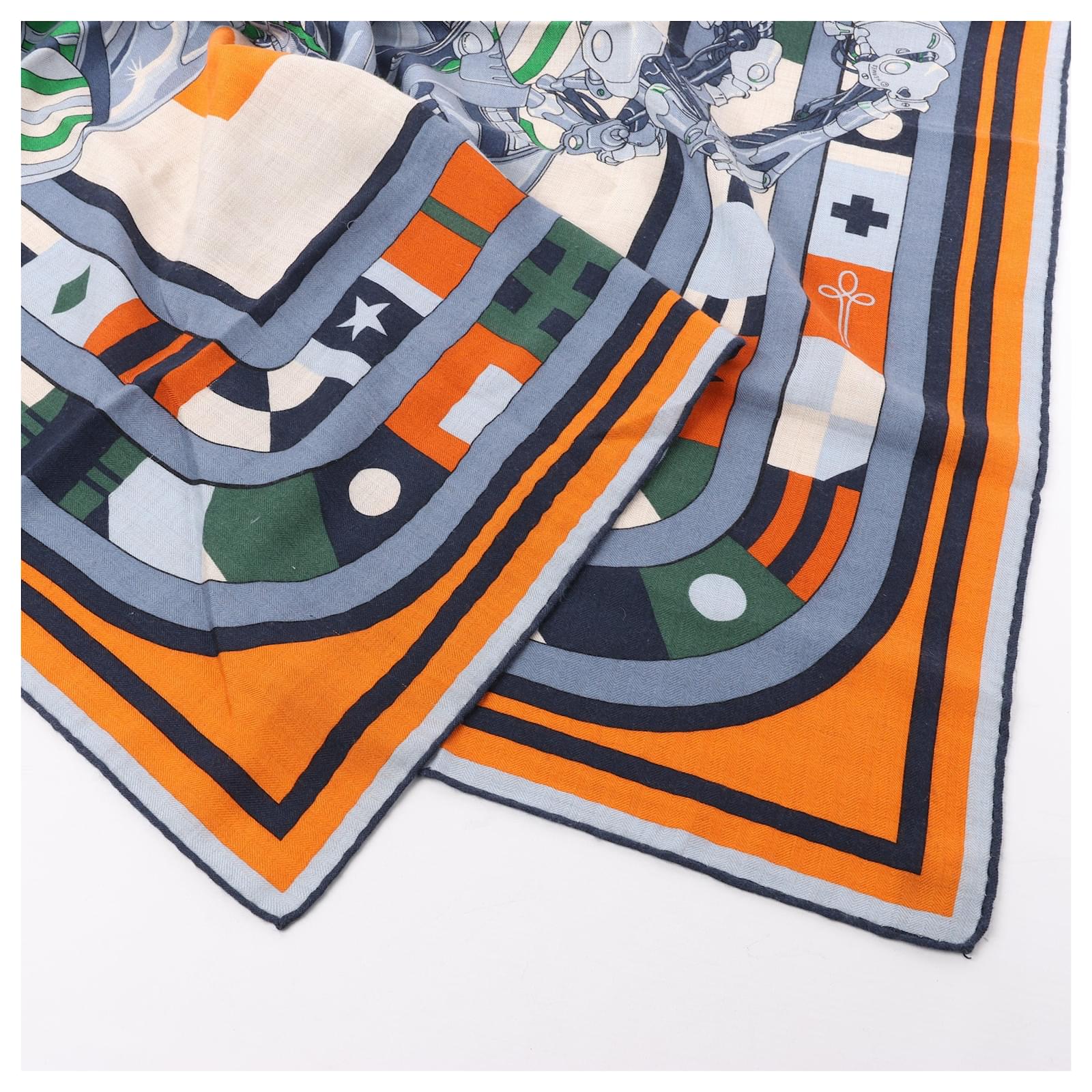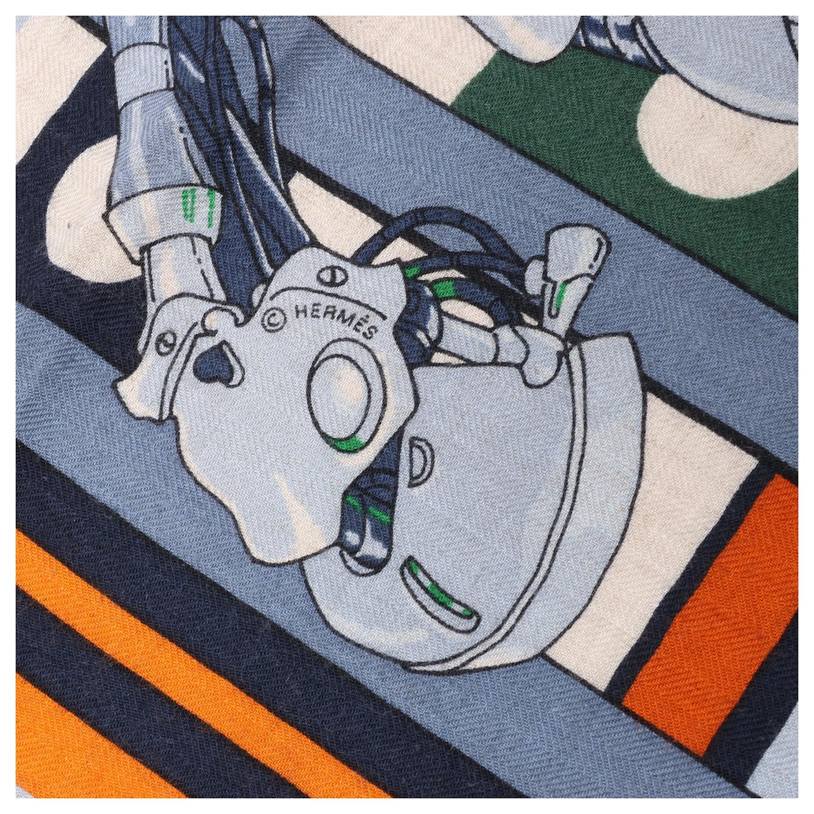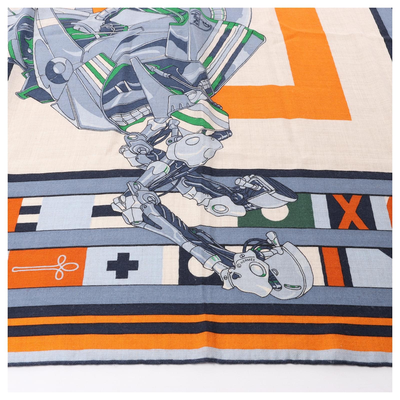 Hermès Carré 100 “ROBOCABAR” scarf in blue and orange blends futuristic charm