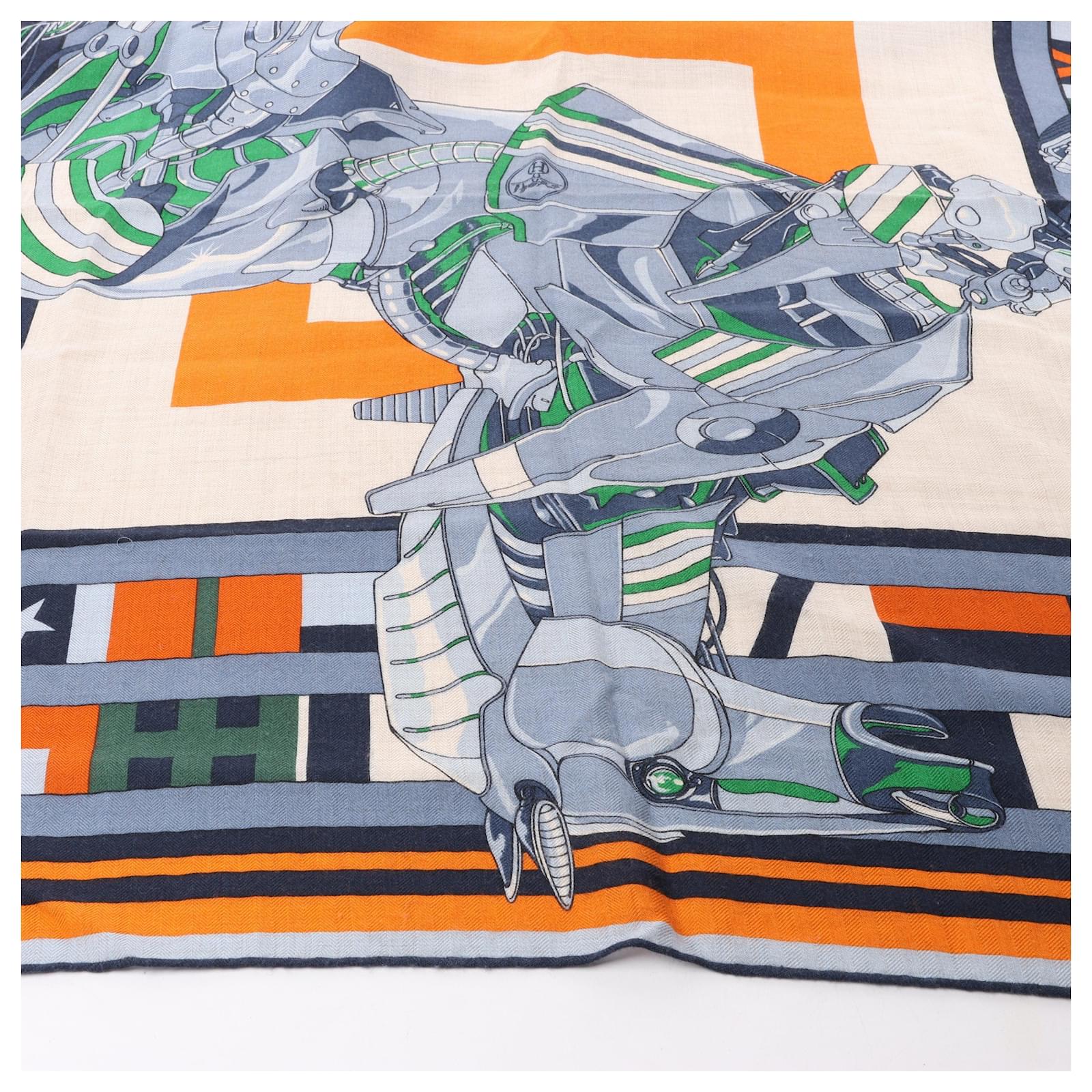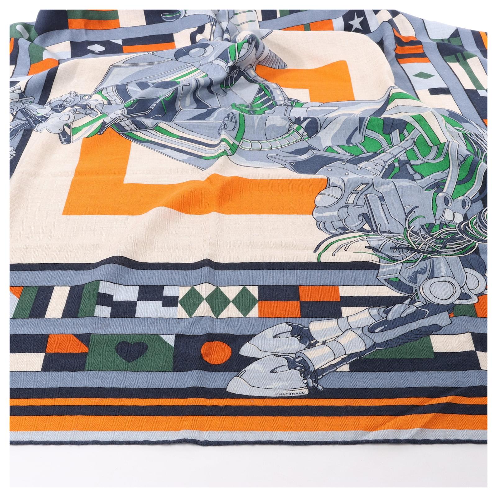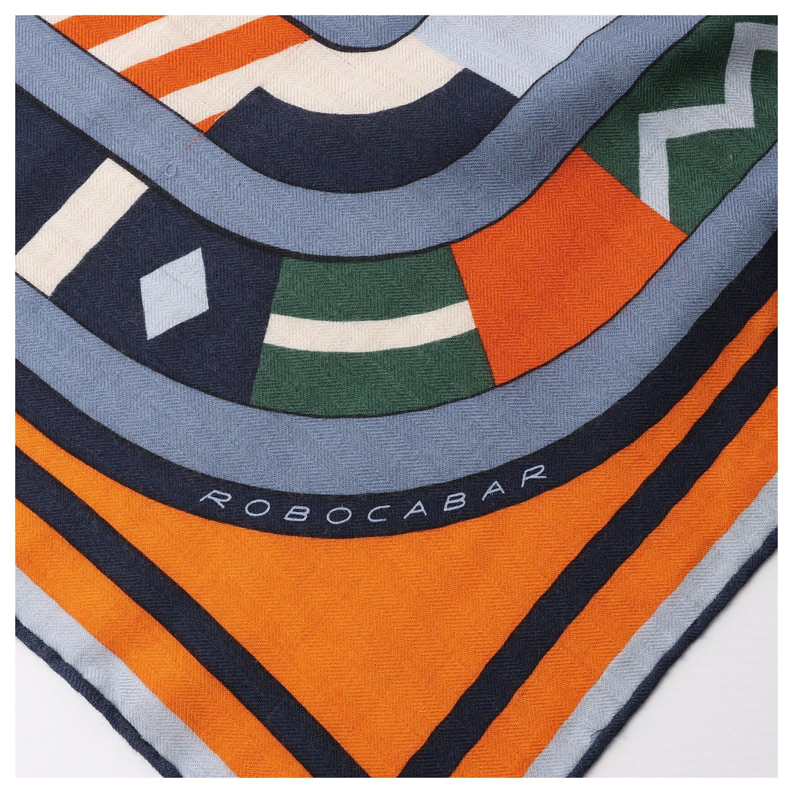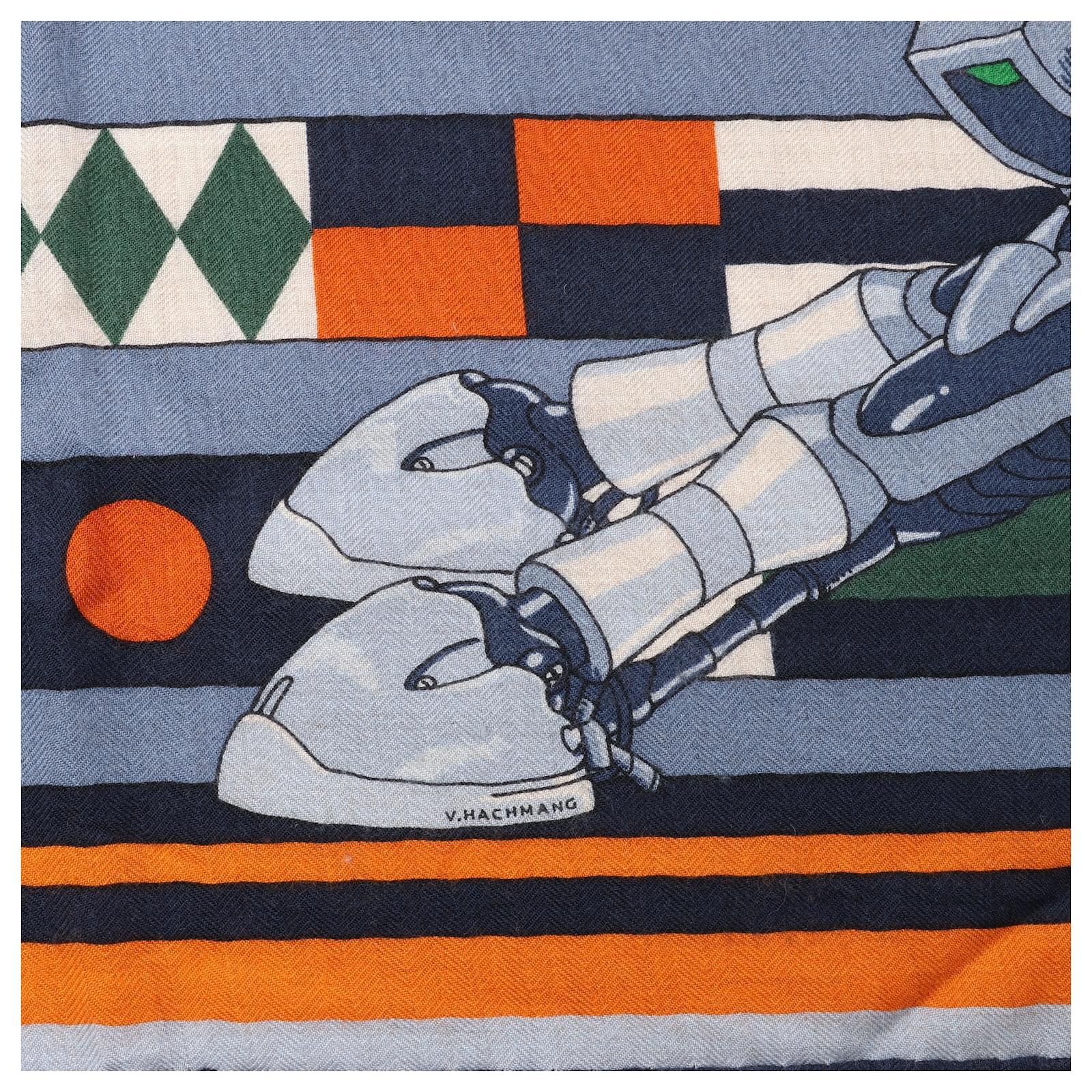 Hermès Carré 100 “ROBOCABAR” scarf in blue and orange blends futuristic charm