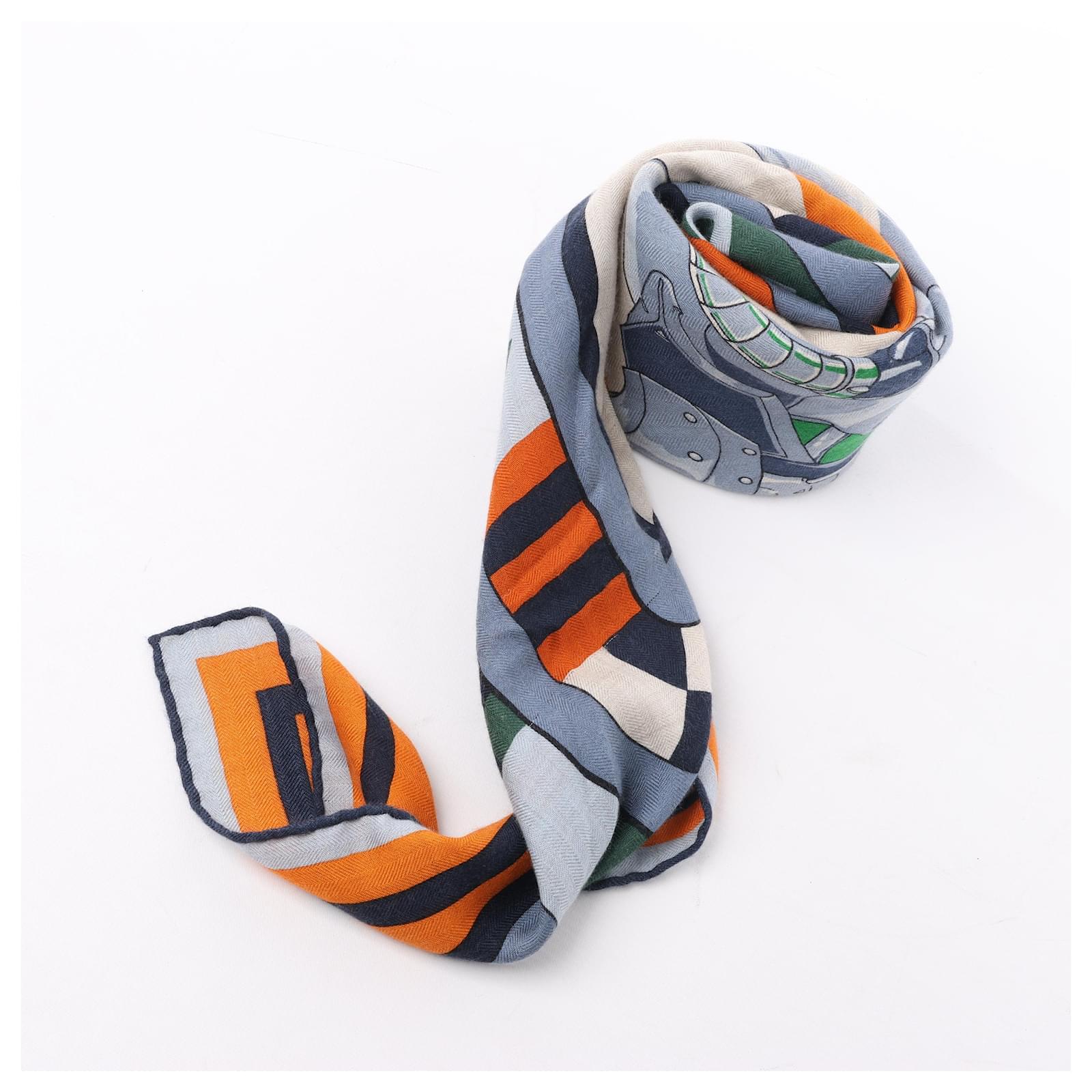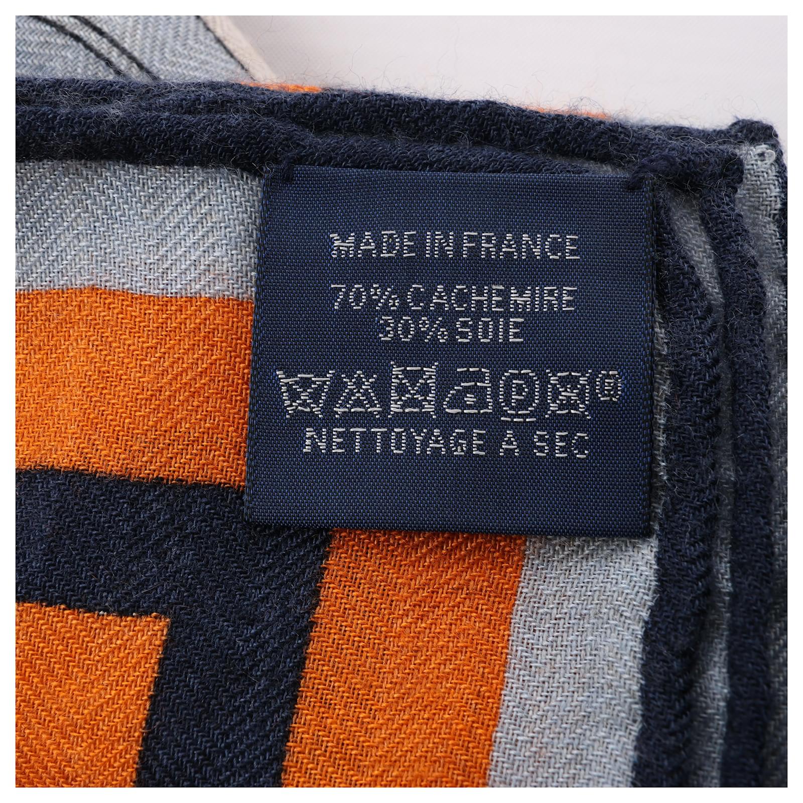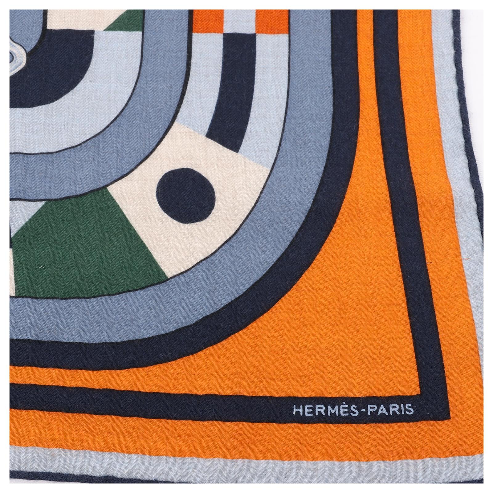 Hermès Carré 100 "ROBOCABAR" Cashmere and Silk Scarf in Blue x Orange