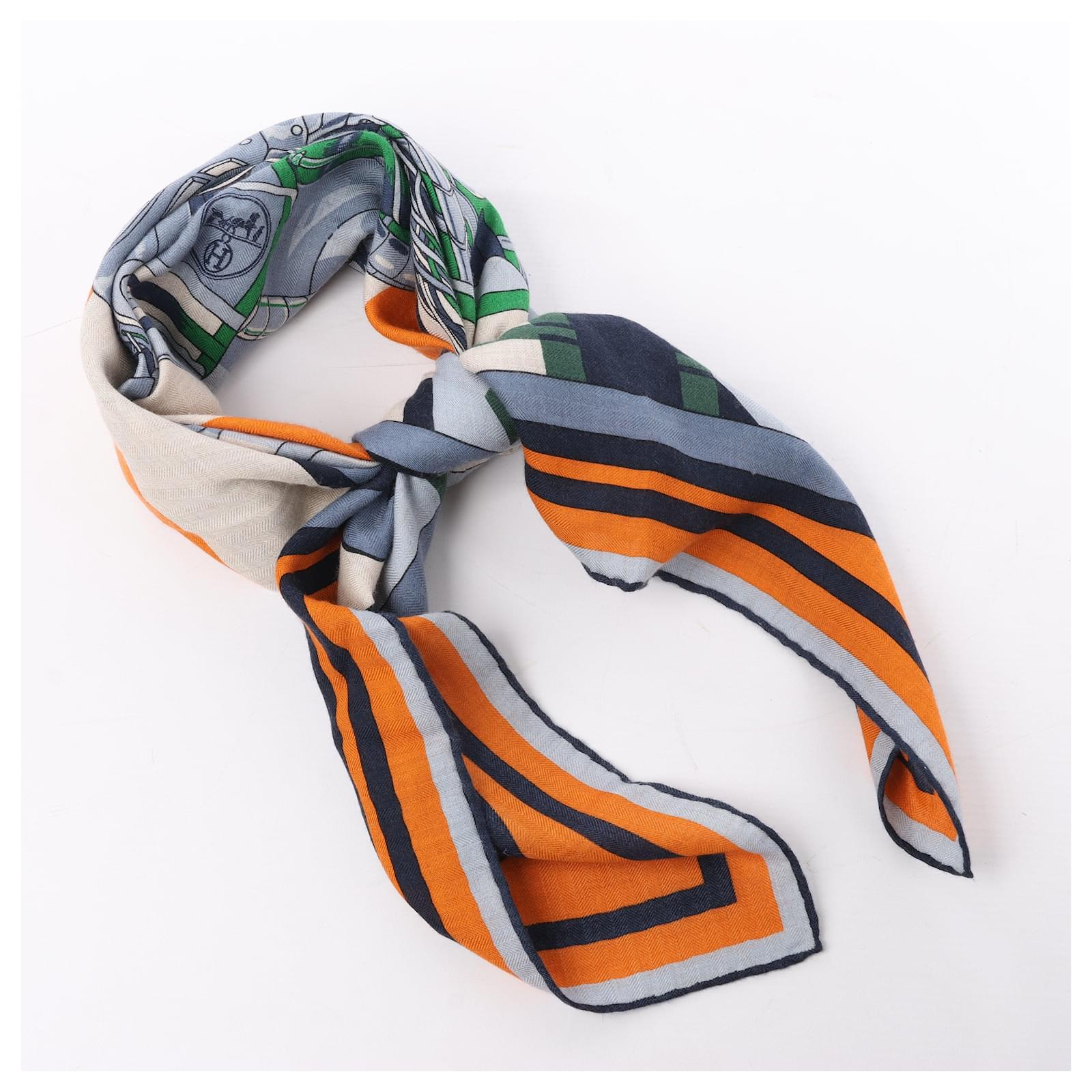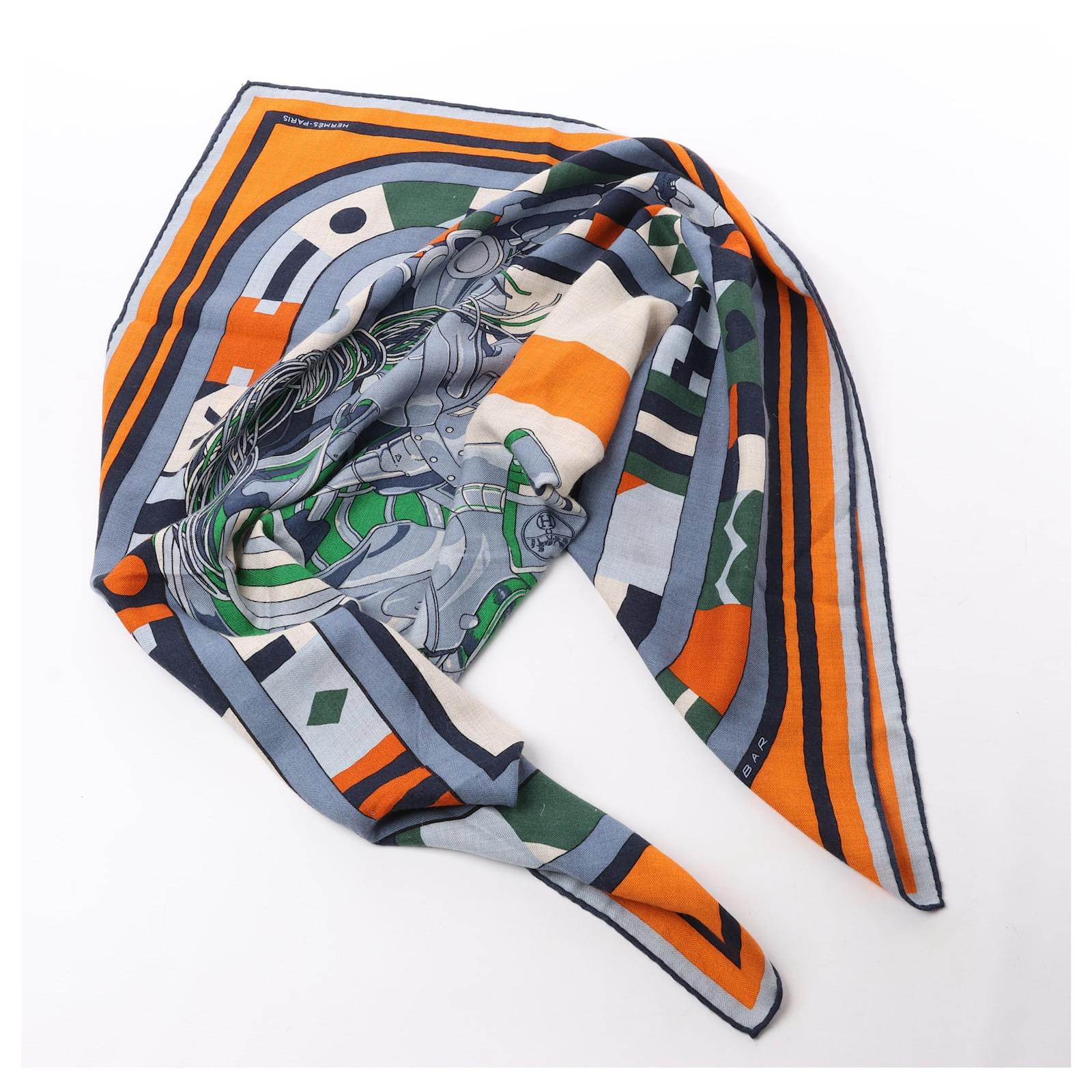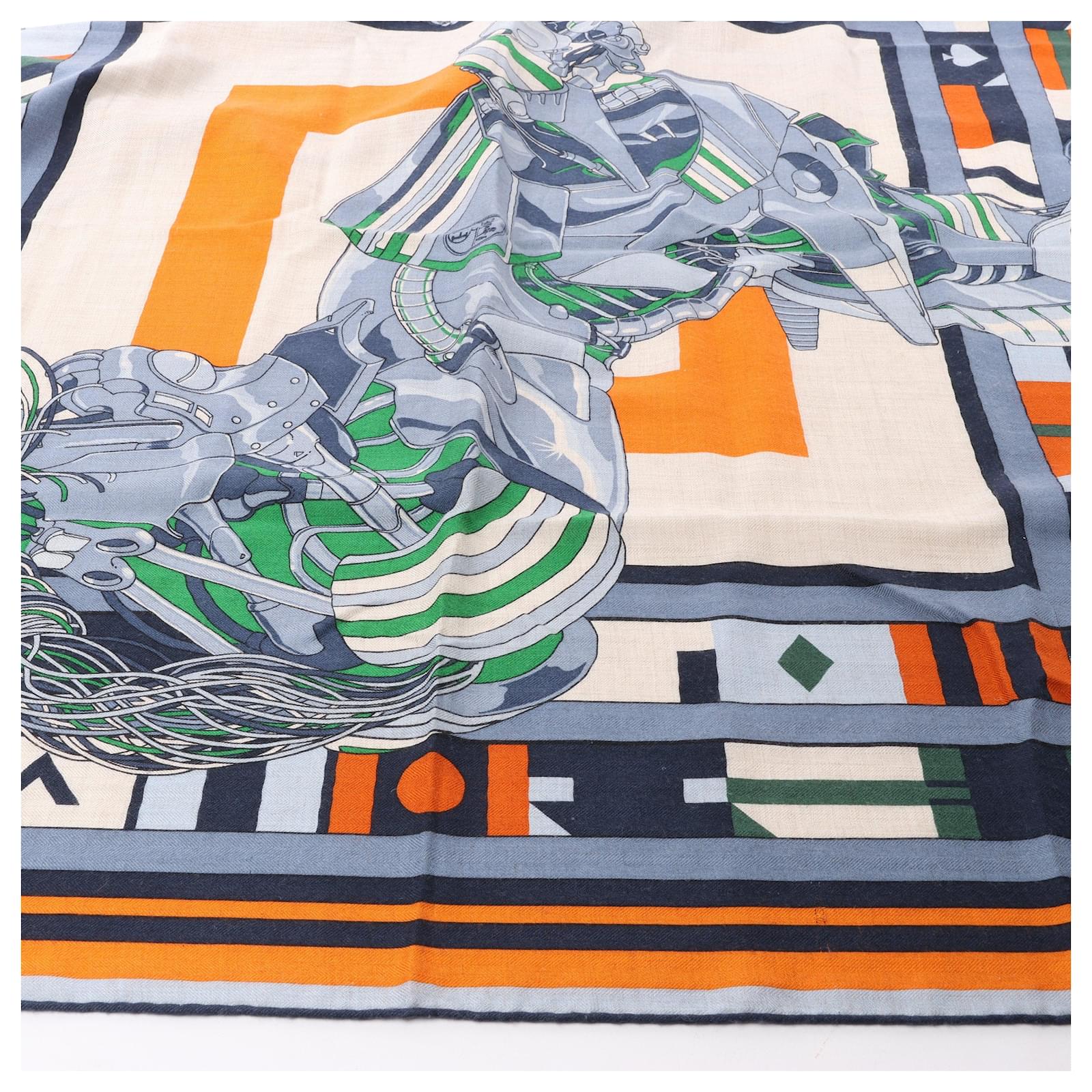 Hermès Carré 100 "ROBOCABAR" Cashmere and Silk Scarf in Blue x Orange