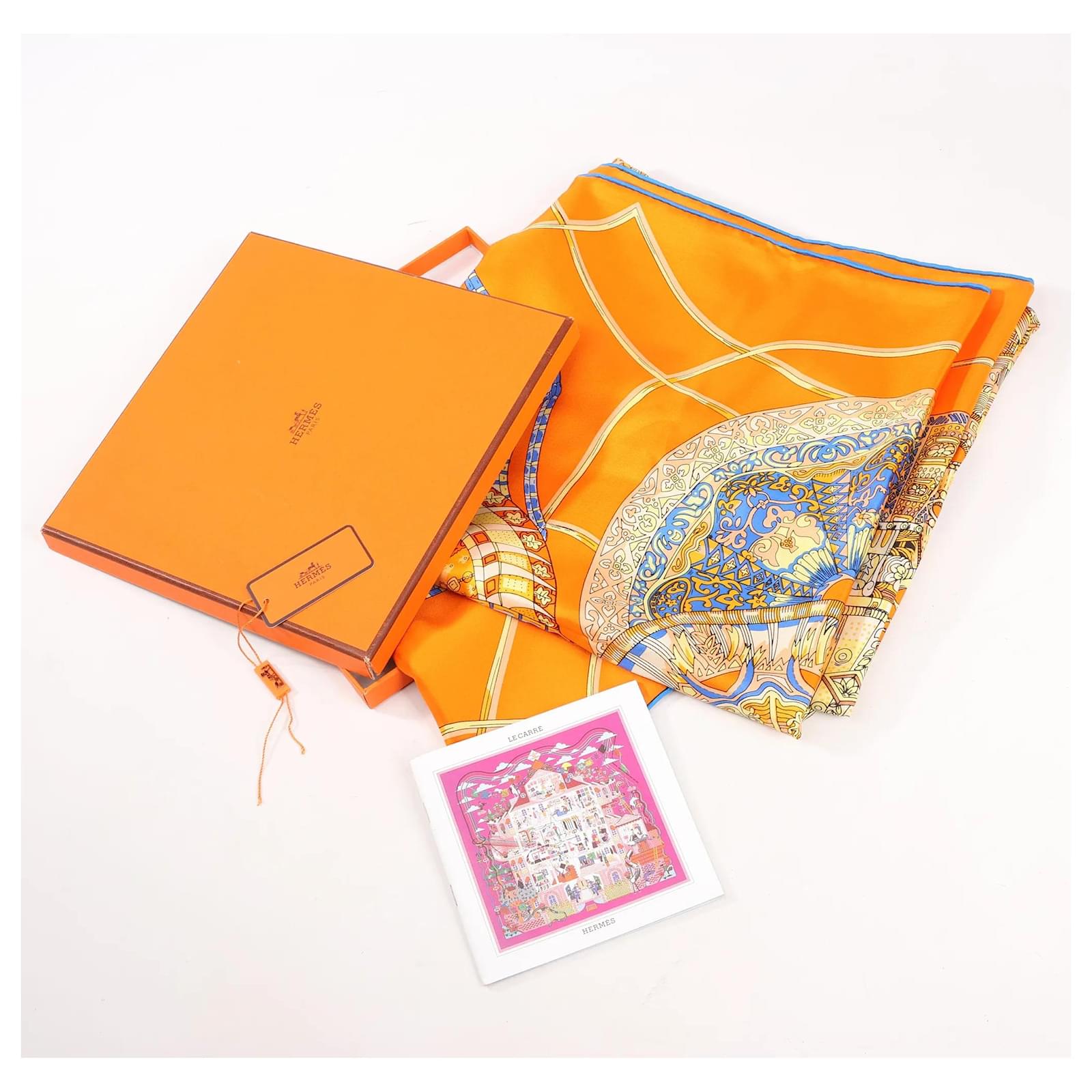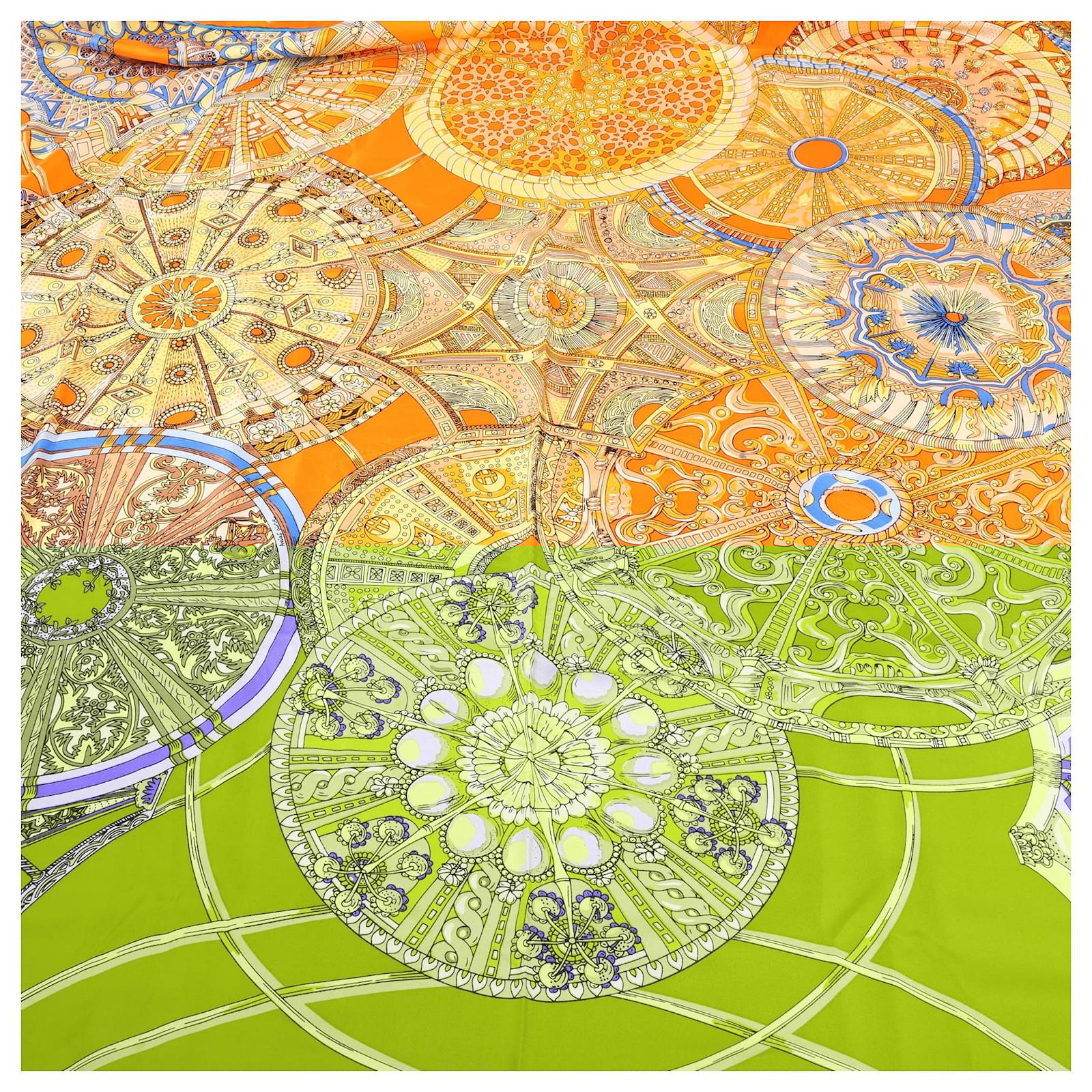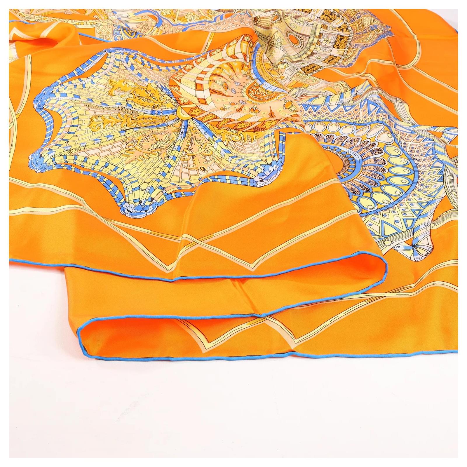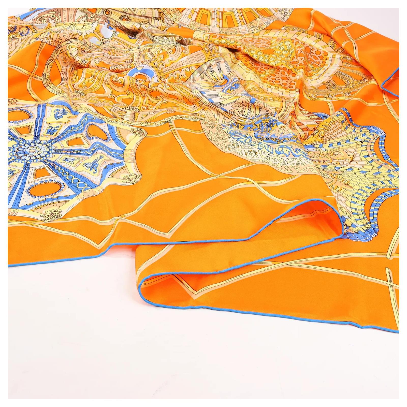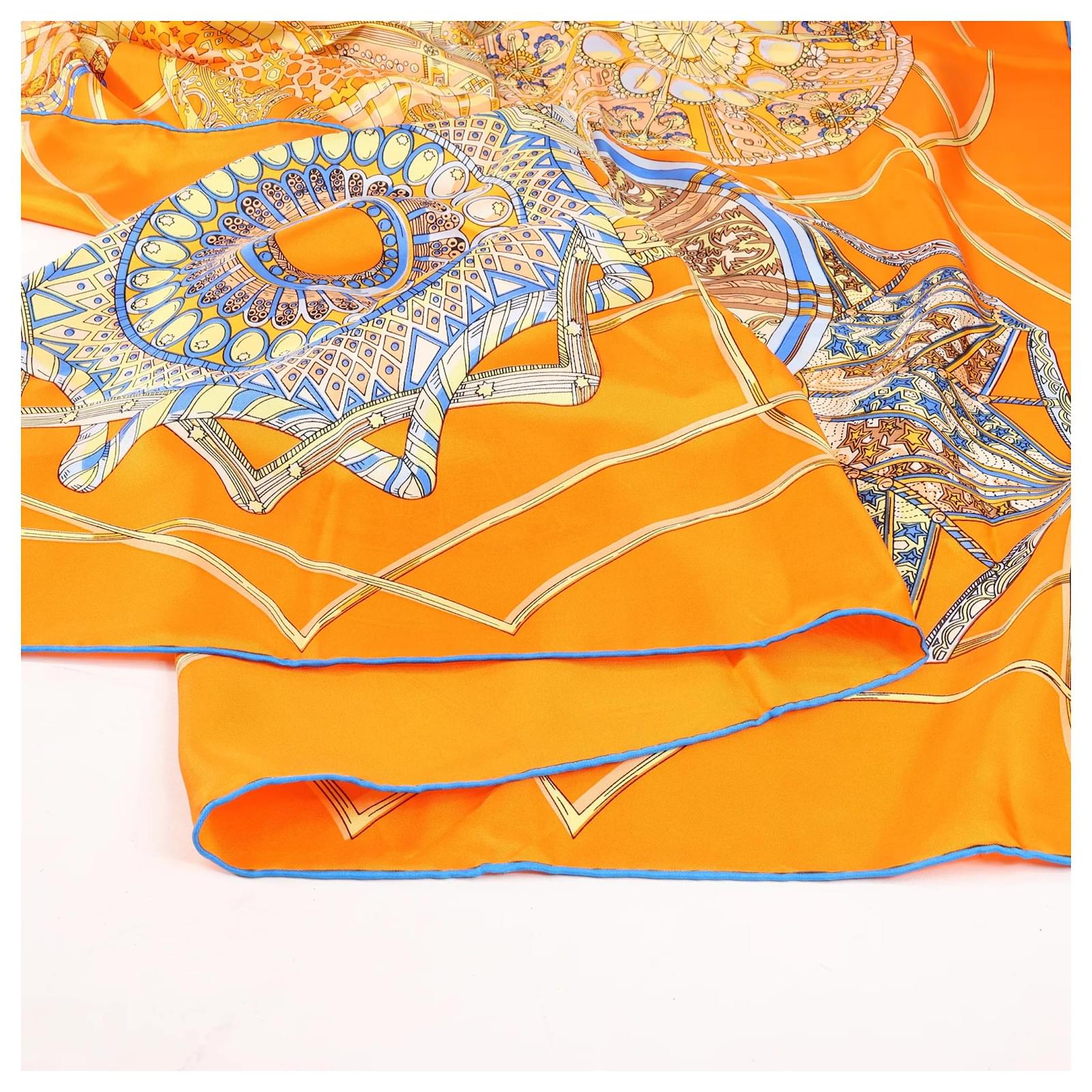 Hermès Carré 140 "LES DOMES CELESTES" Silk handkerchief in Orange