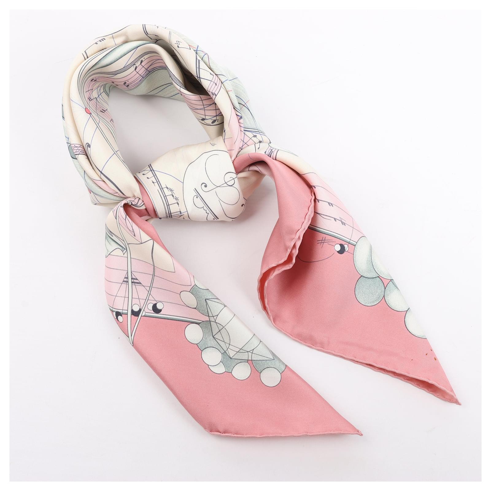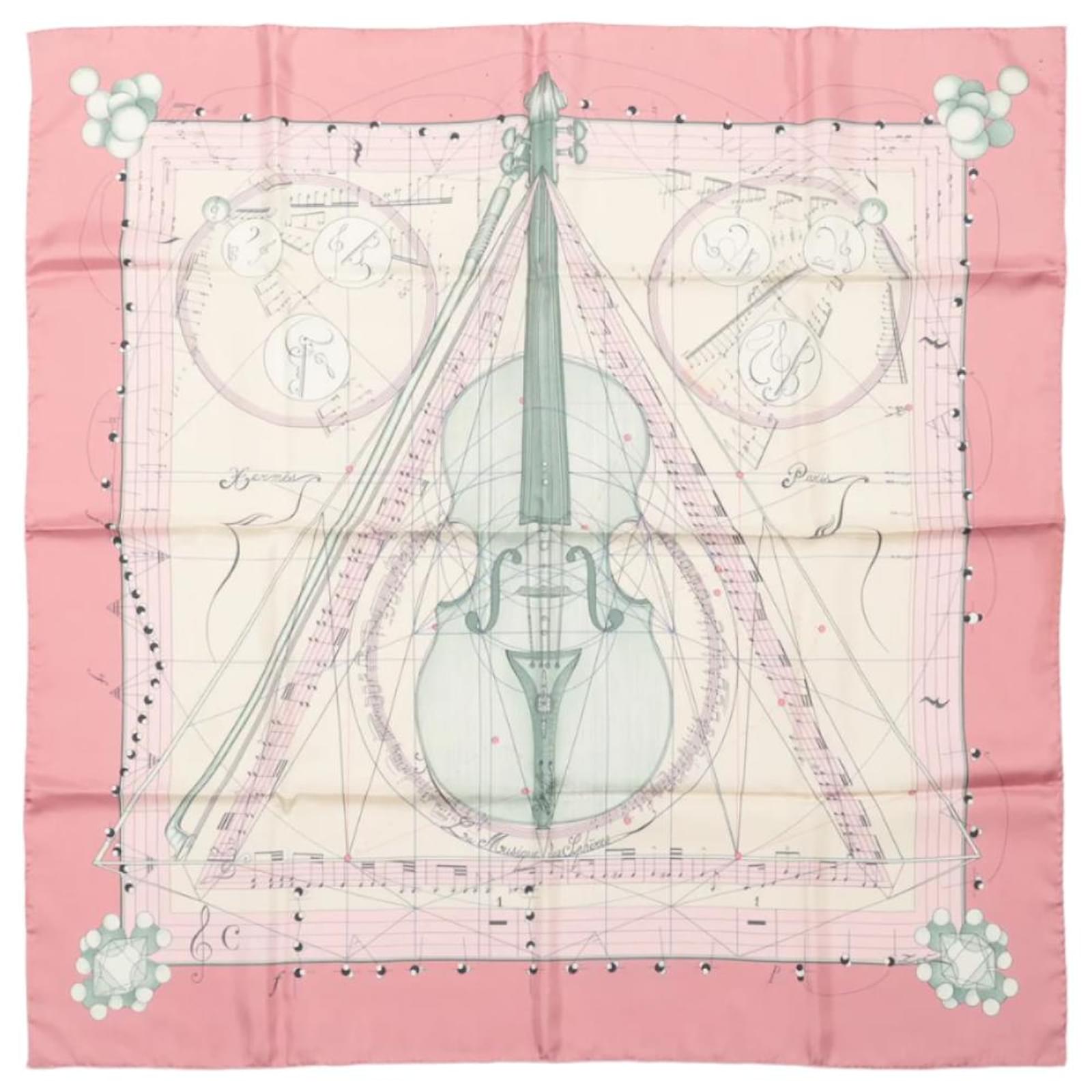Hermès Carré 90 "La Musique Des Spheres" 100% Silk Scarf in Pink