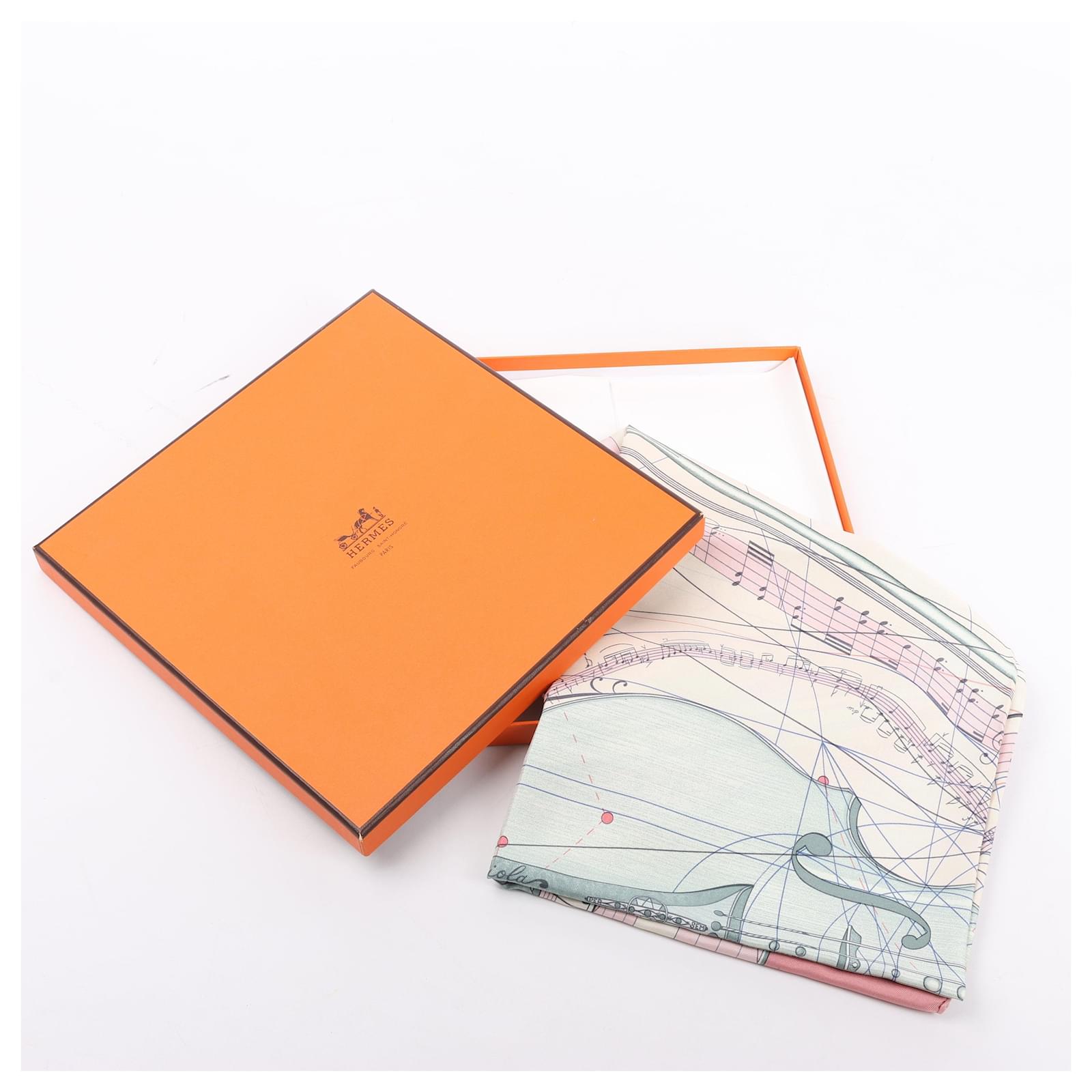 Hermès Carré 90 “La Musique des Sphères” scarf in 100% silk, featuring an