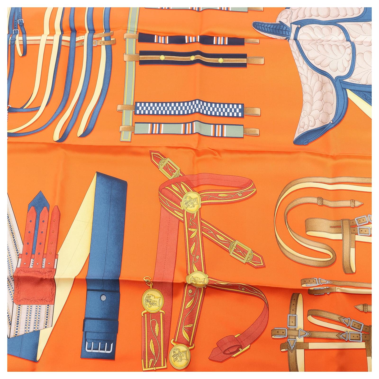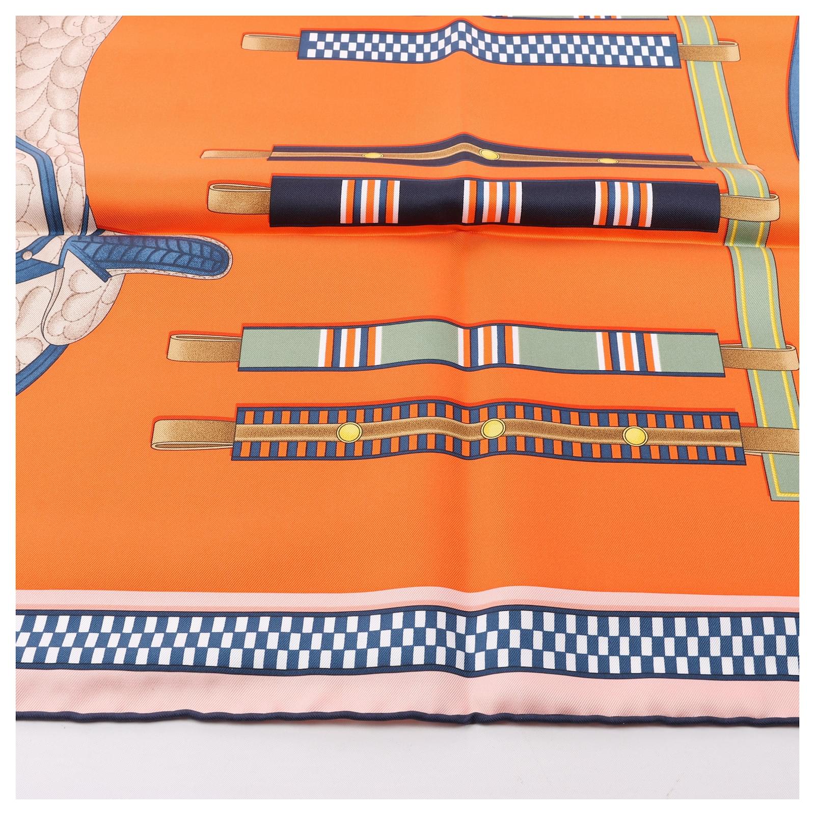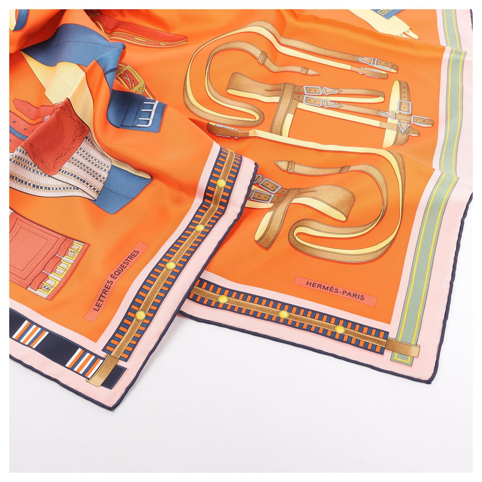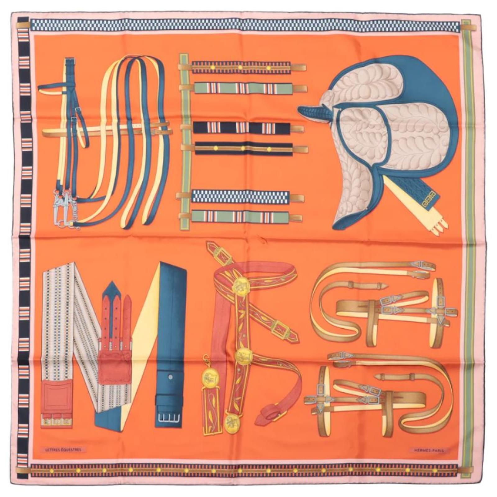 Hermès Carré 90 "LETTRES EQUESTRES" 100% Silk Scarf in Orange