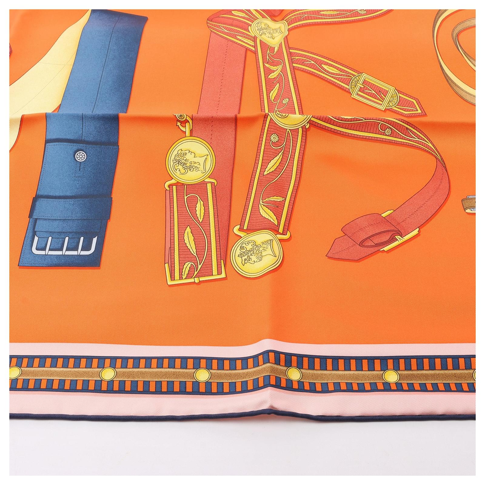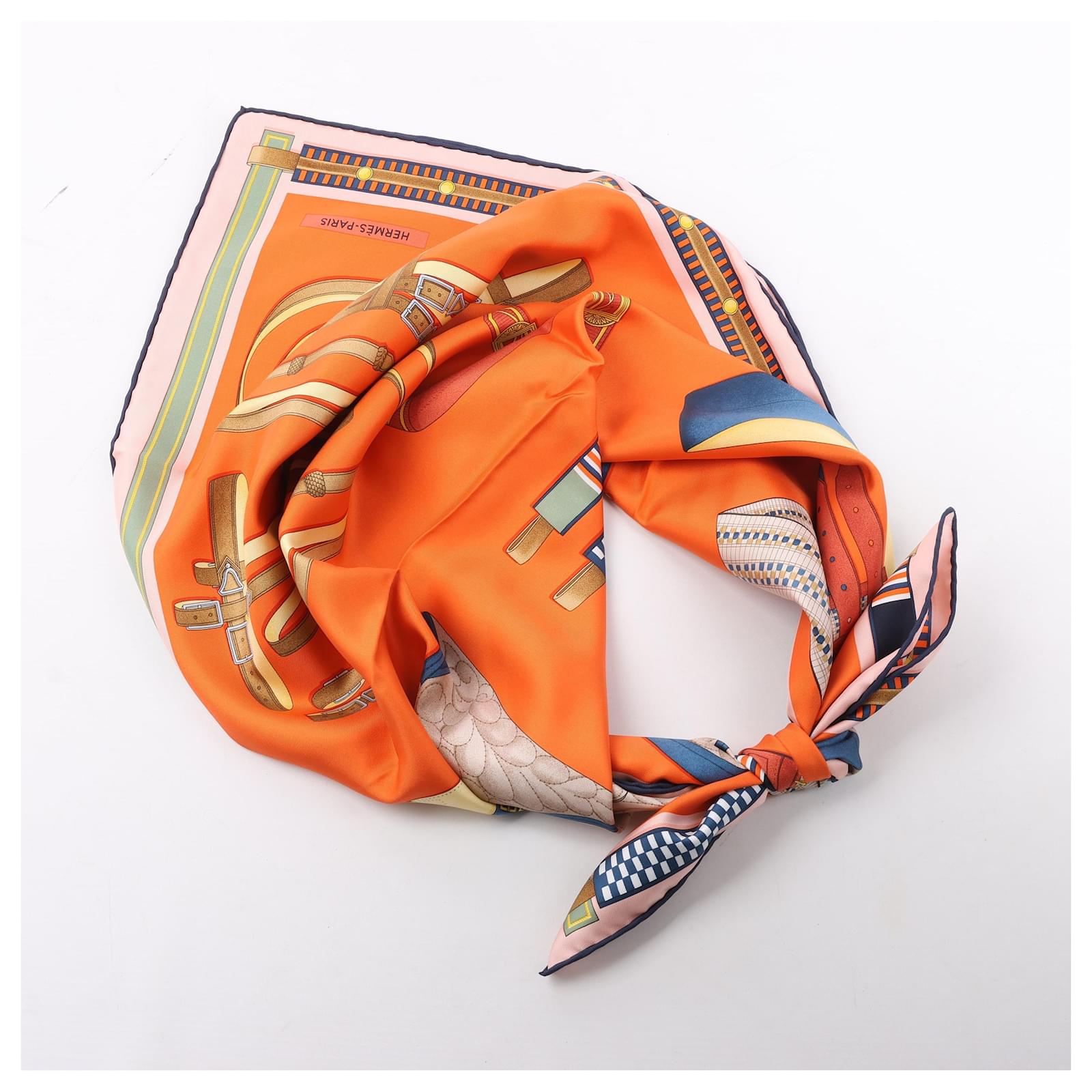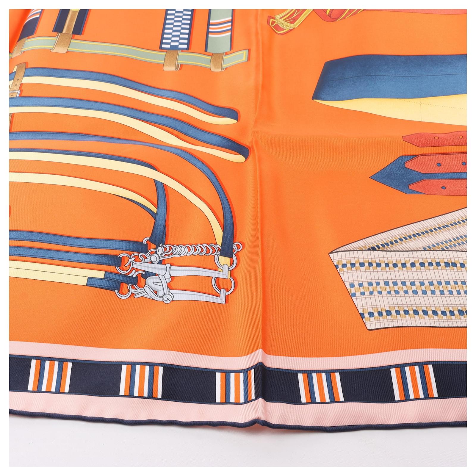 Hermès Carré 90 "LETTRES EQUESTRES" 100% Silk Scarf in Orange