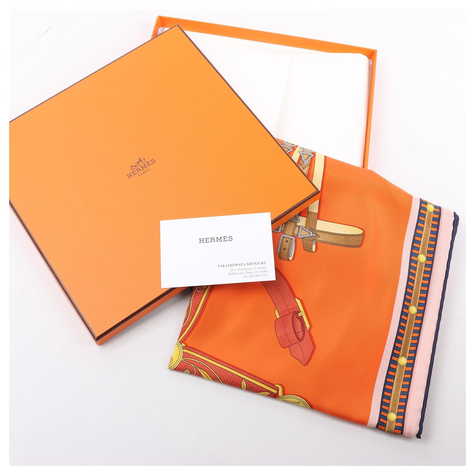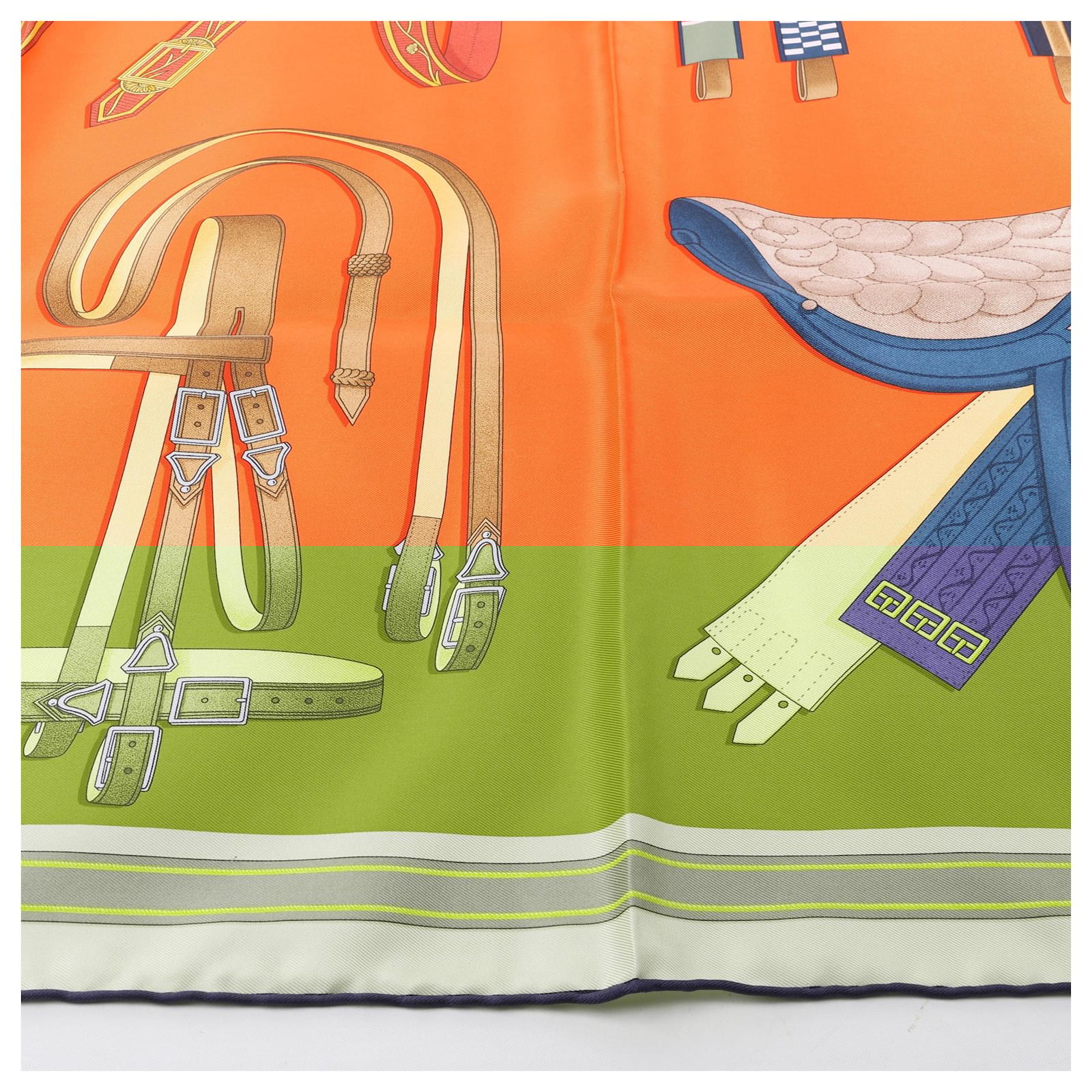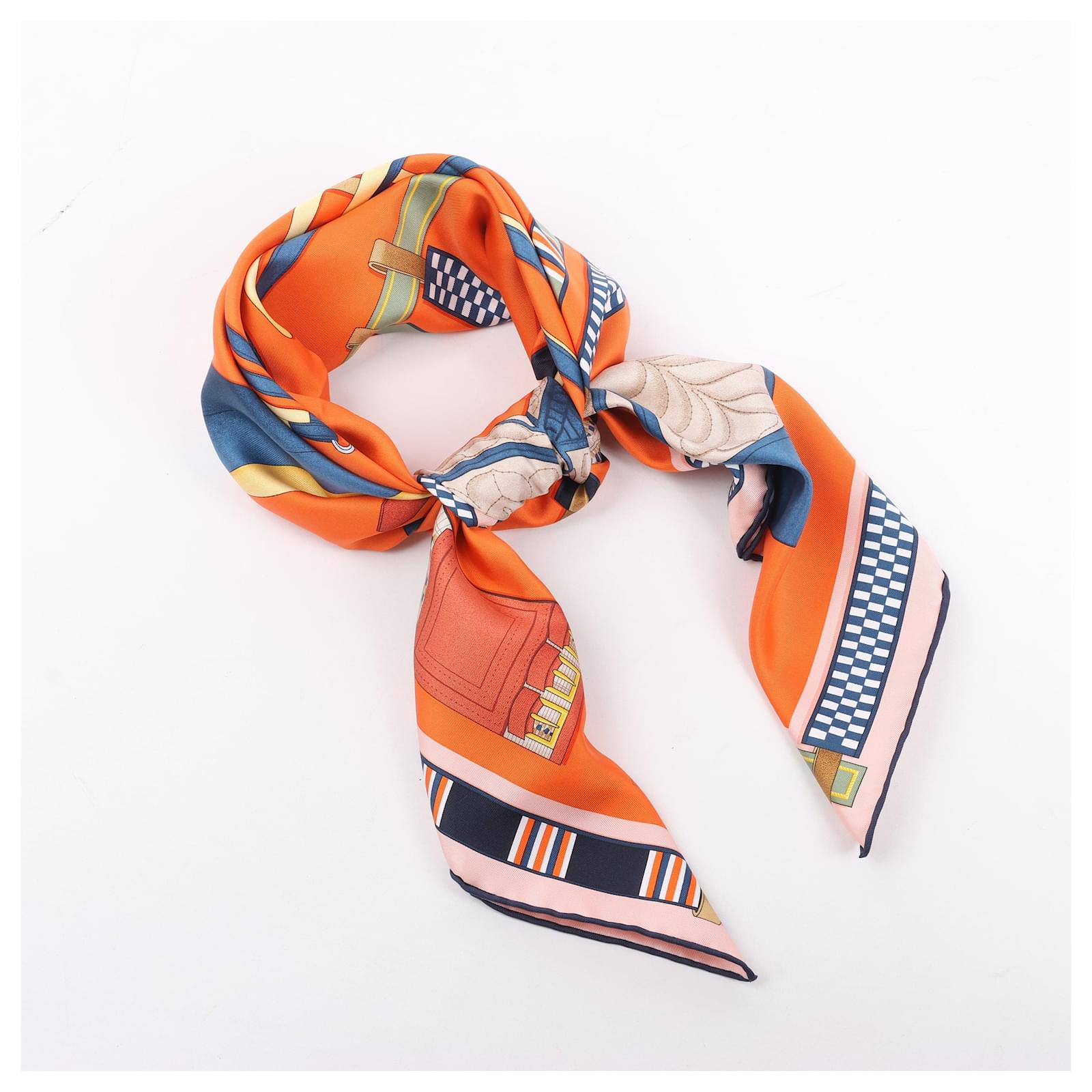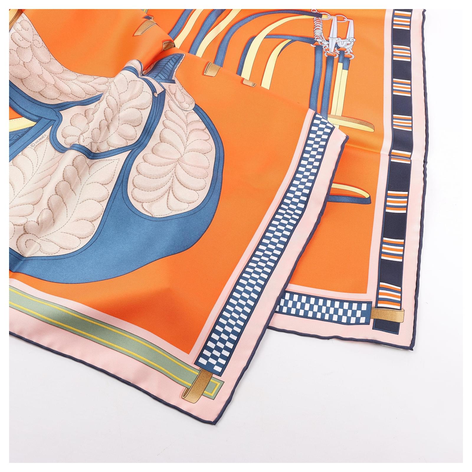 Hermès Carré 90 "LETTRES EQUESTRES" 100% Silk Scarf in Orange
