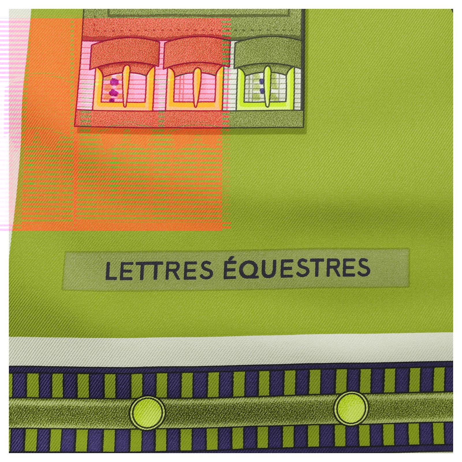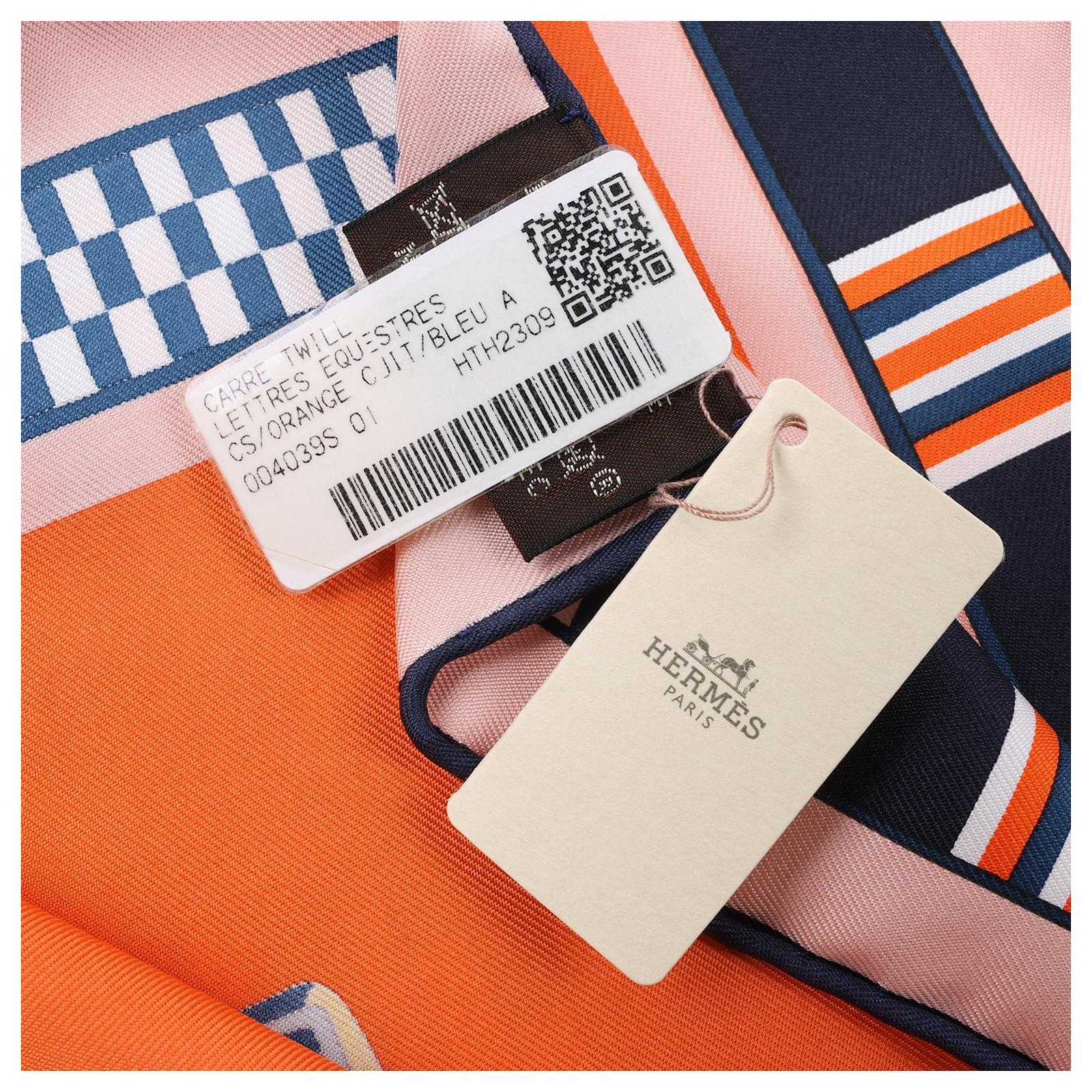 Hermès Carré 90 “Lettres Equestres” scarf in 100% silk, featuring bold