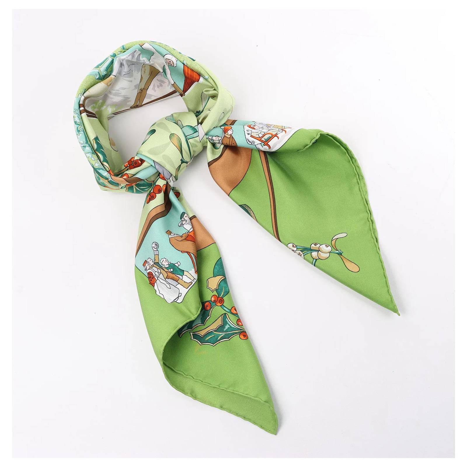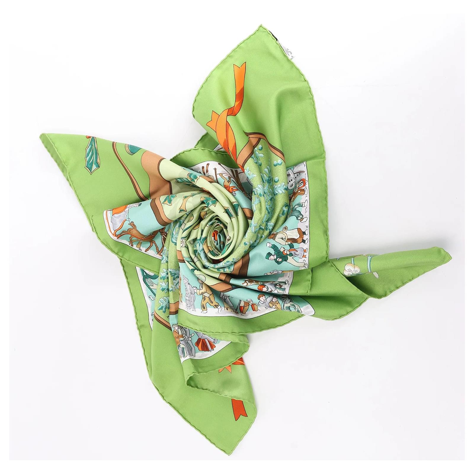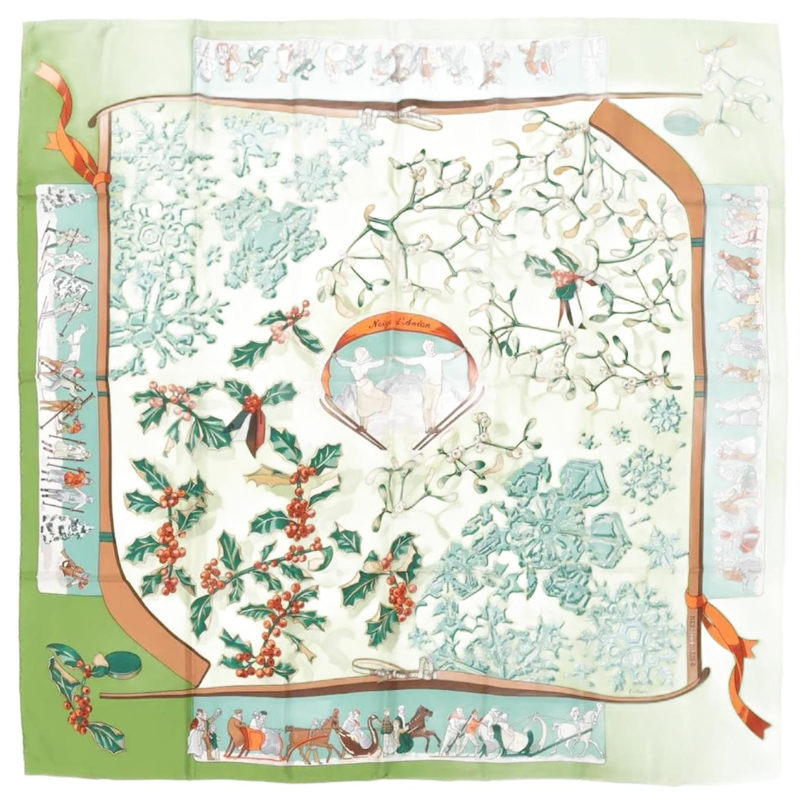 Hermès Carré 90 "Neige d' Antan" Silk handkerchief in Green