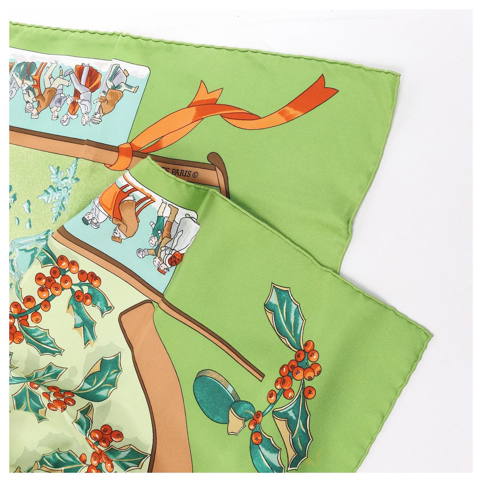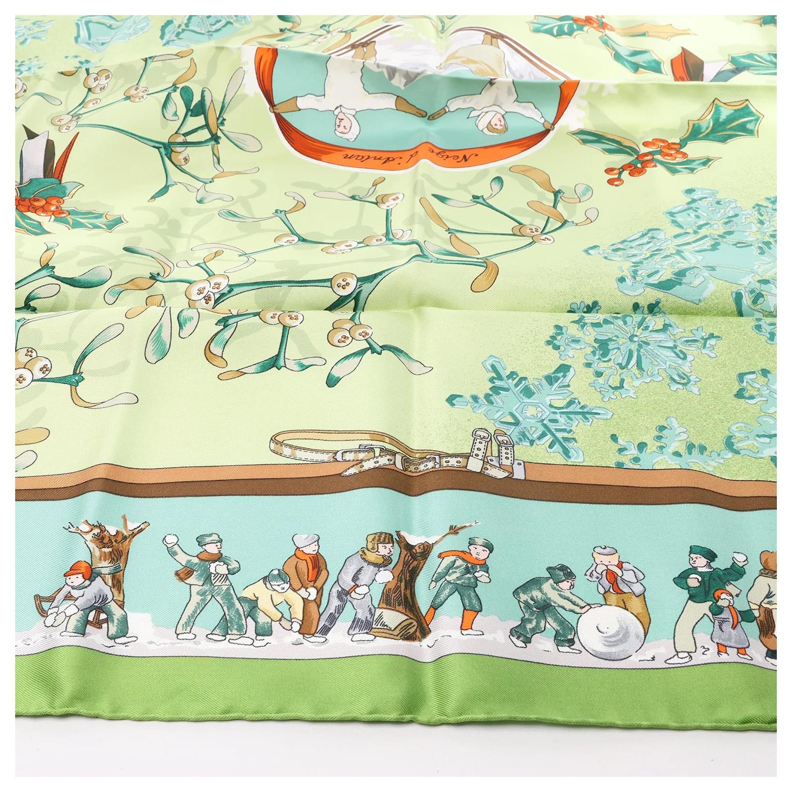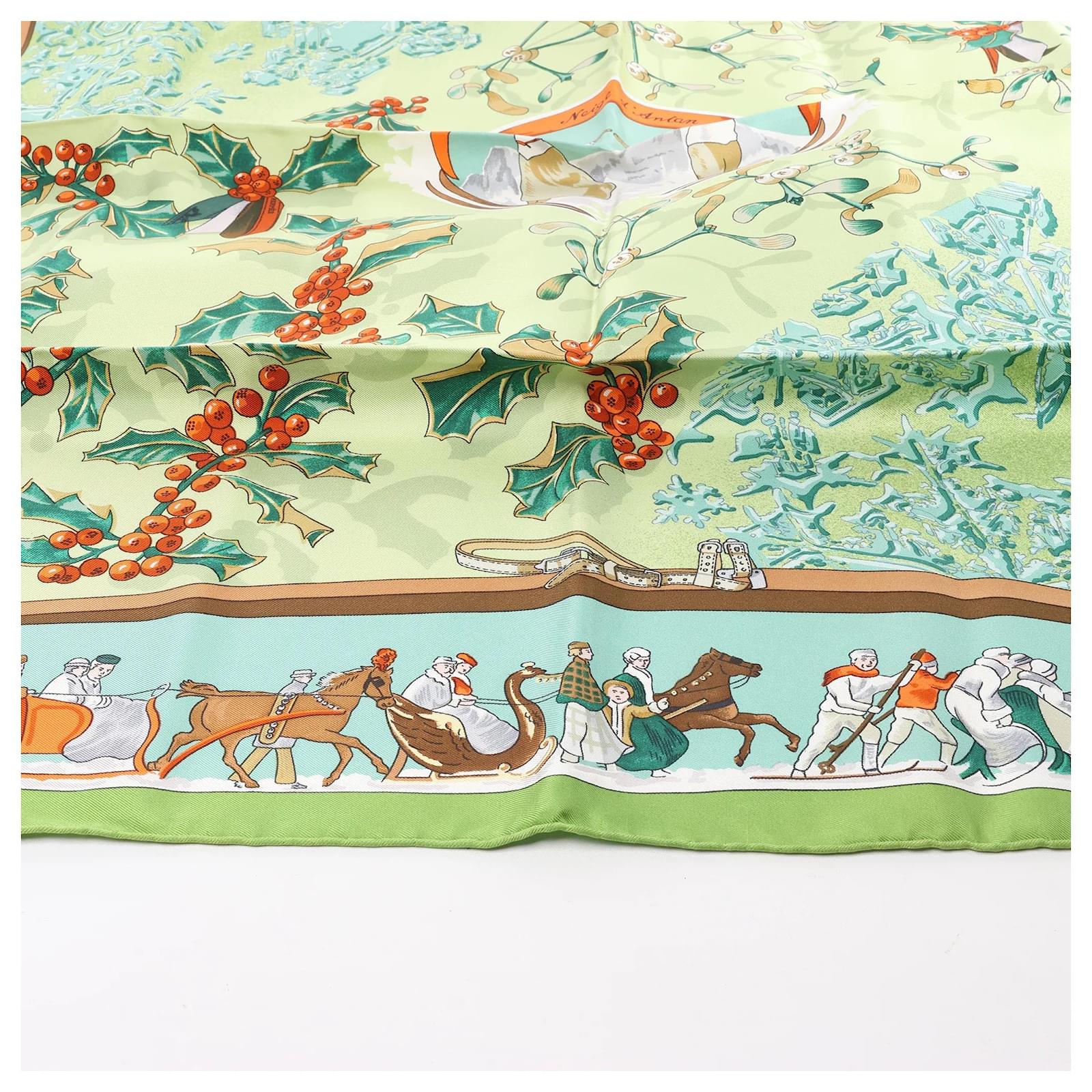 Hermès Carré 90 "Neige d' Antan" Silk handkerchief in Green