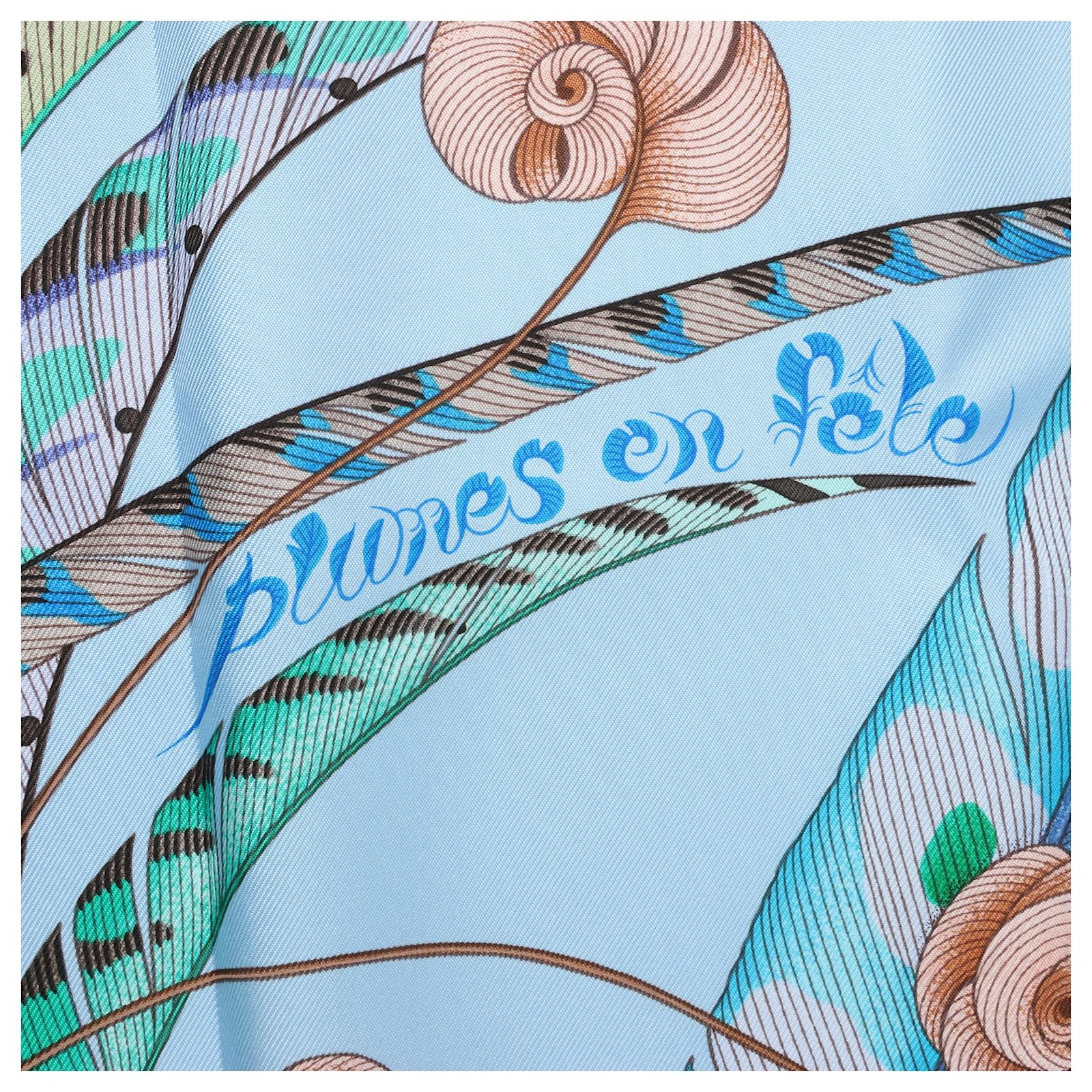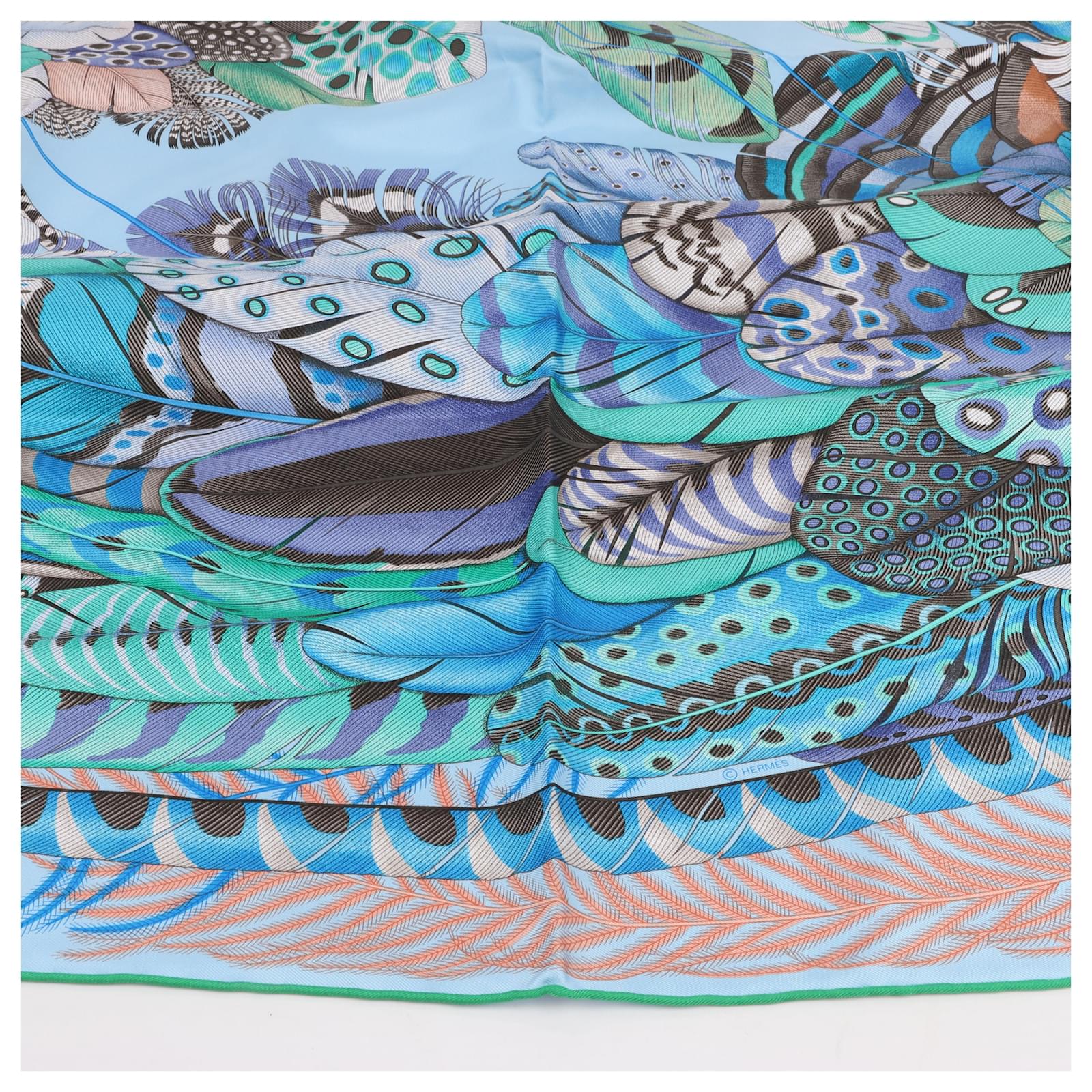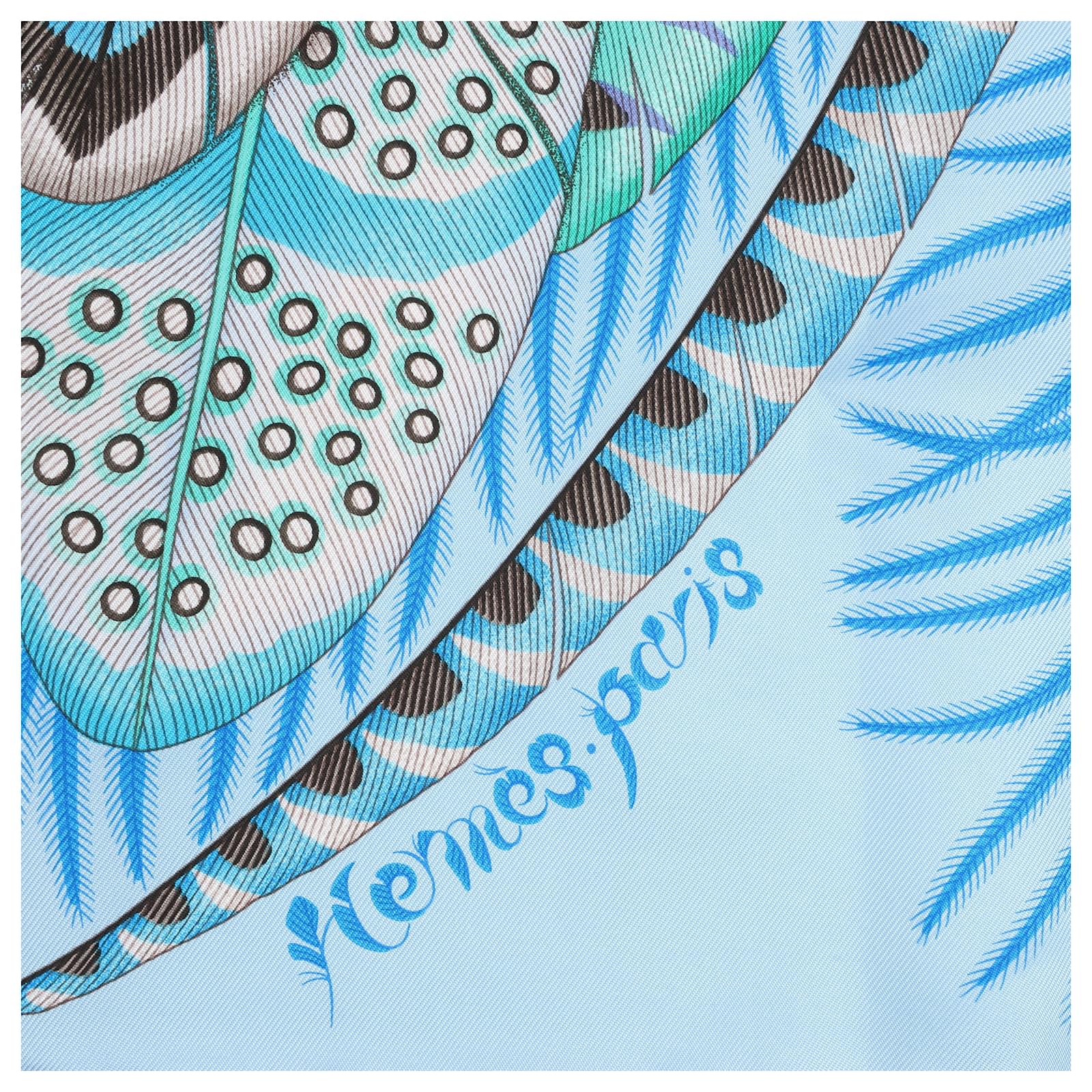 Hermès Carré 90 "PLUMES EN FETE" 100% Silk Scarf in Blue