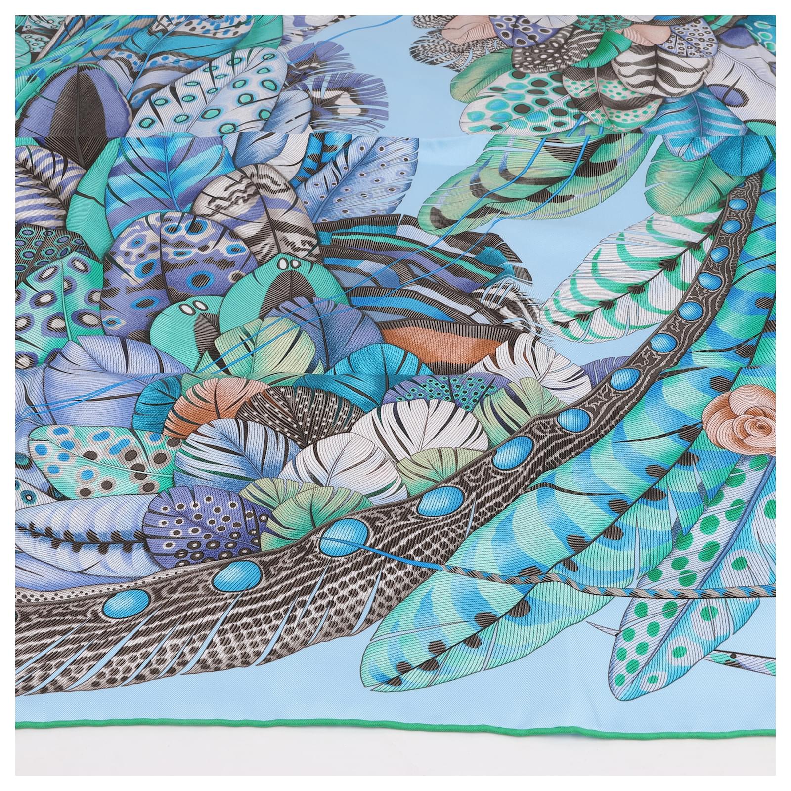 Elevate your style with this stunning Hermès Carré 90 "Plumes en Fête" silk