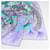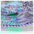 scarf. Featuring an intricate feather motif in shades of blue, green, and soft