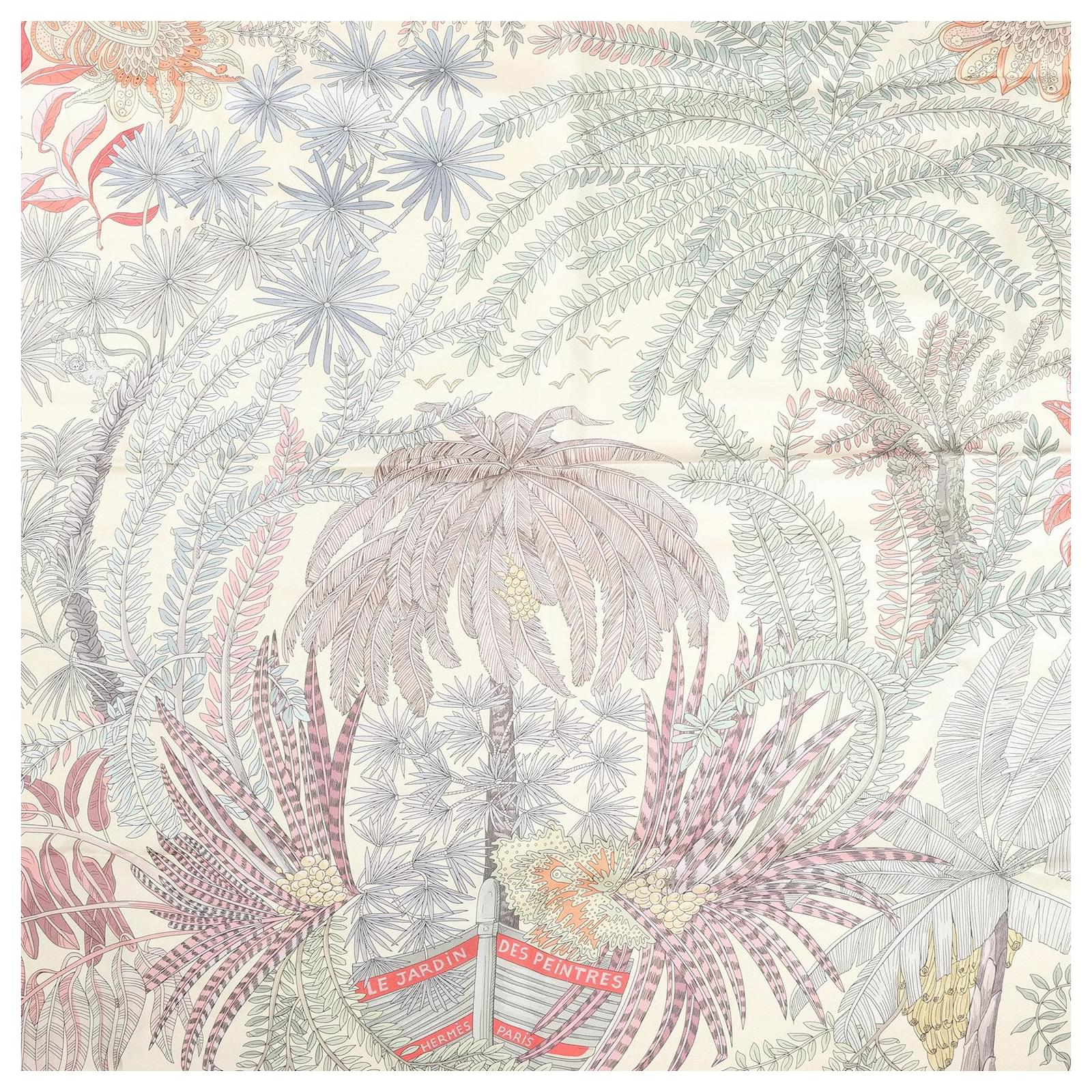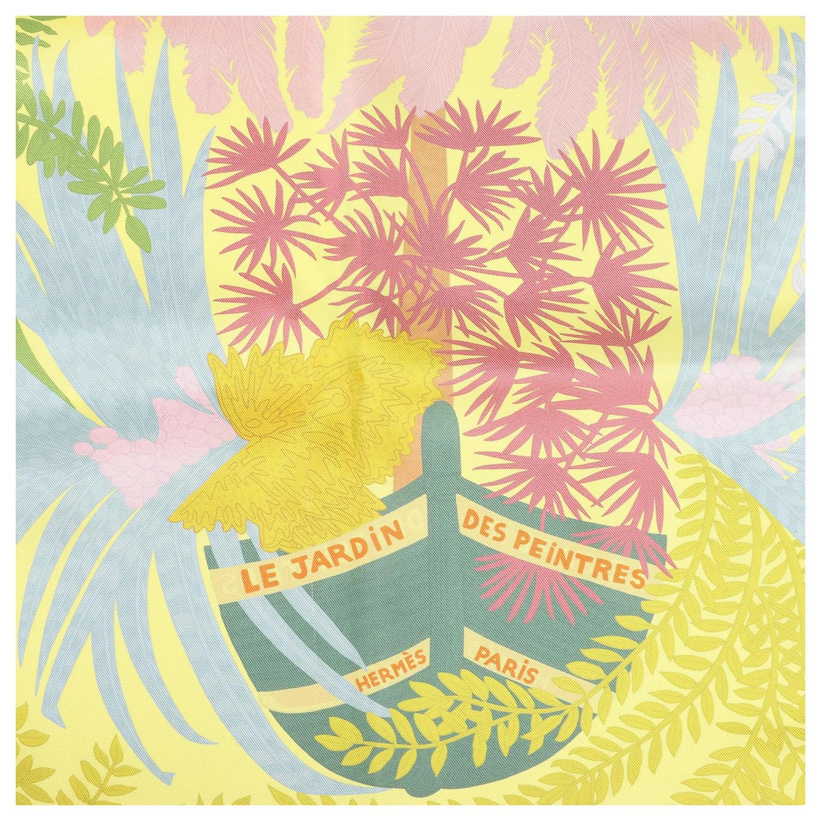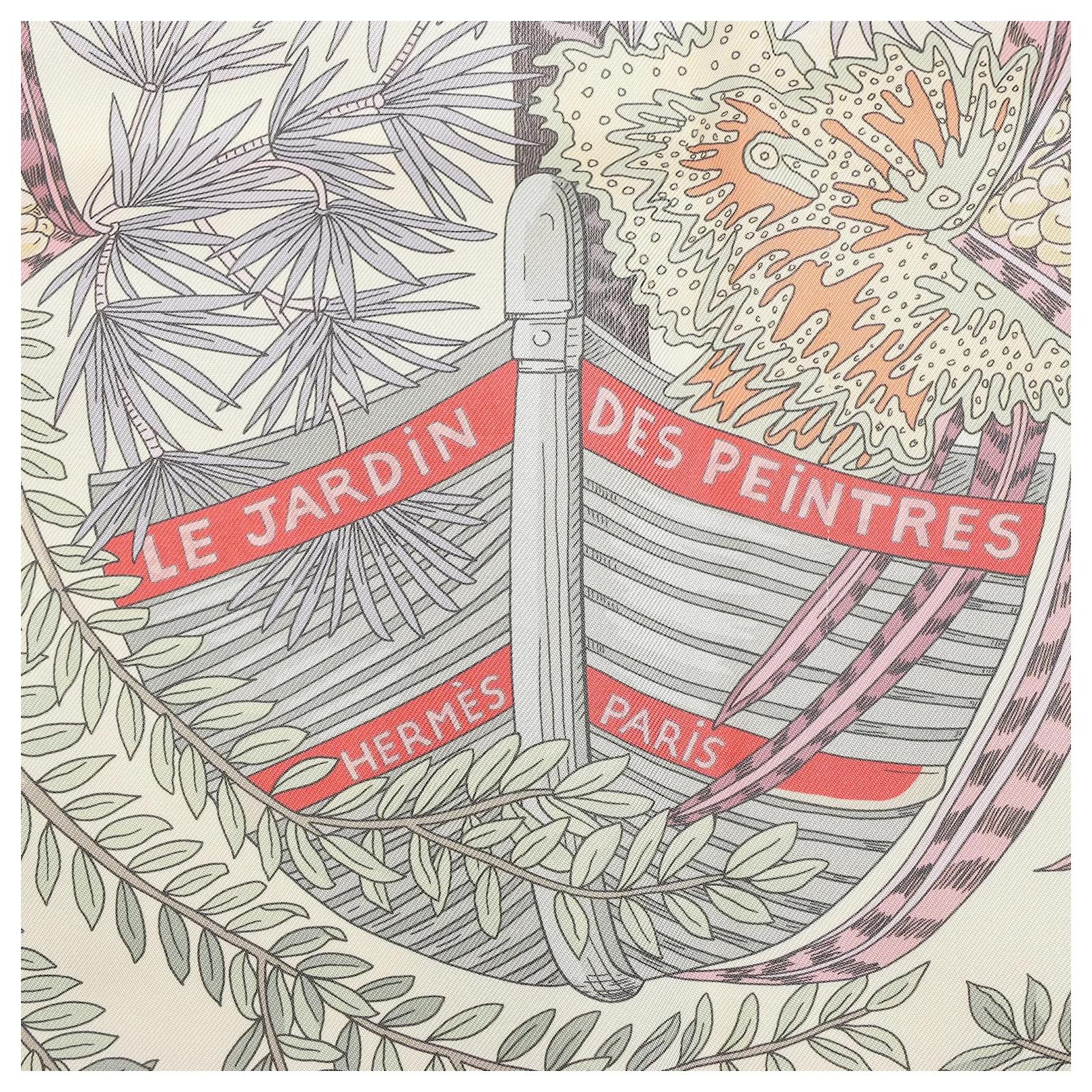 Hermès Carré Double face 90 "LES JARDIN DES PEINTRES" Silk handkerchief in Multicolor Grey