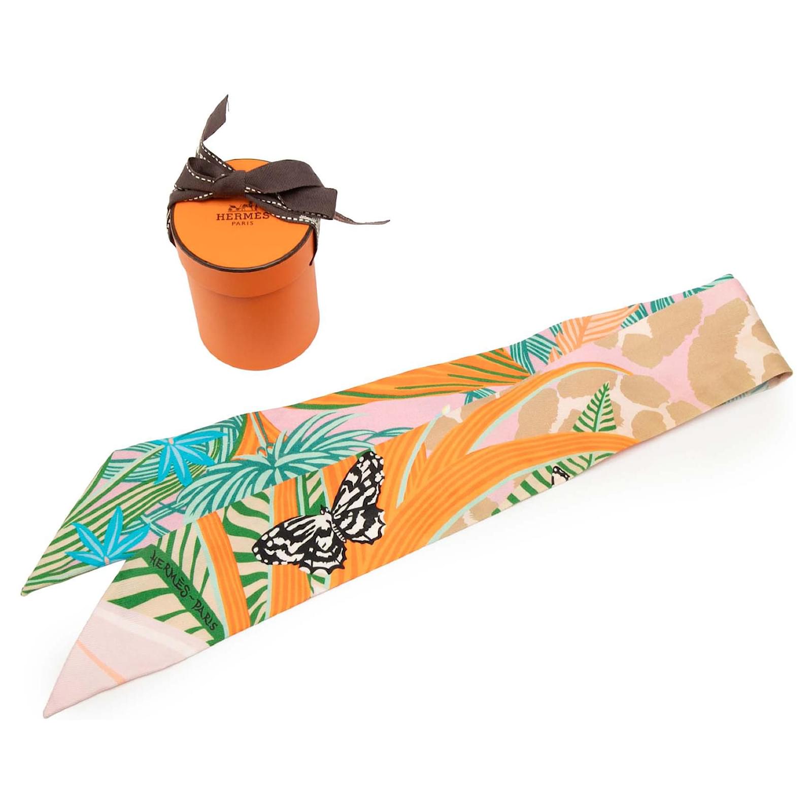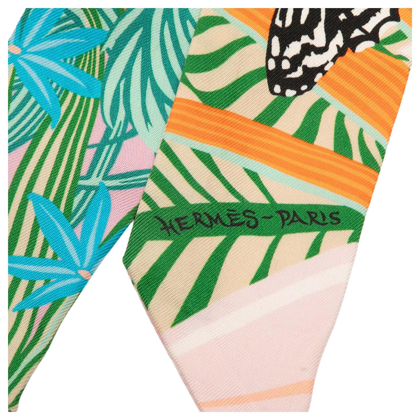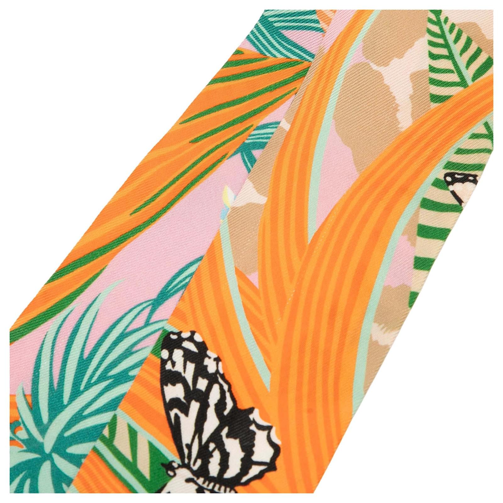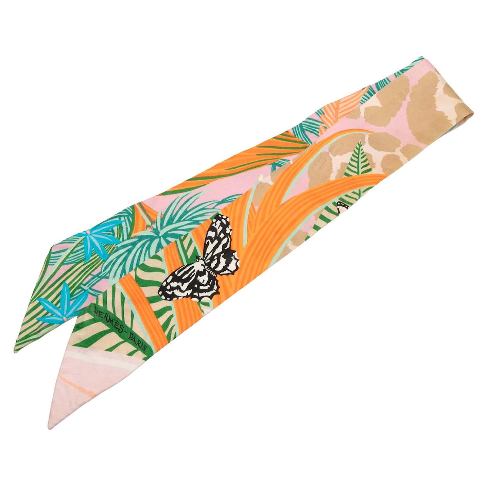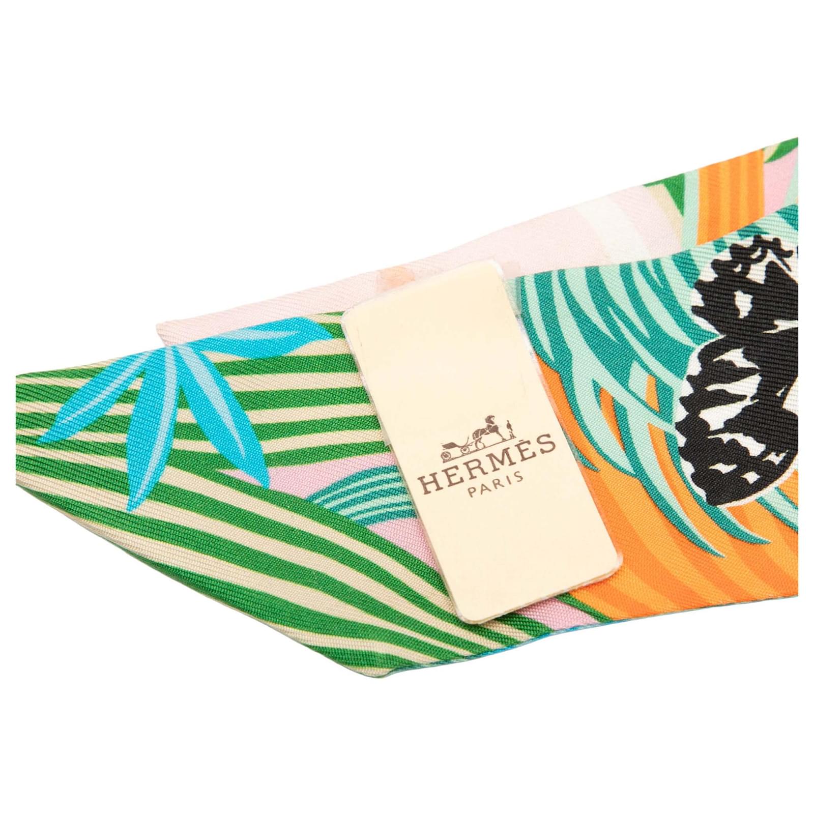 Hermès Pink Jaguar Quetzal Silk Twilly Scarf