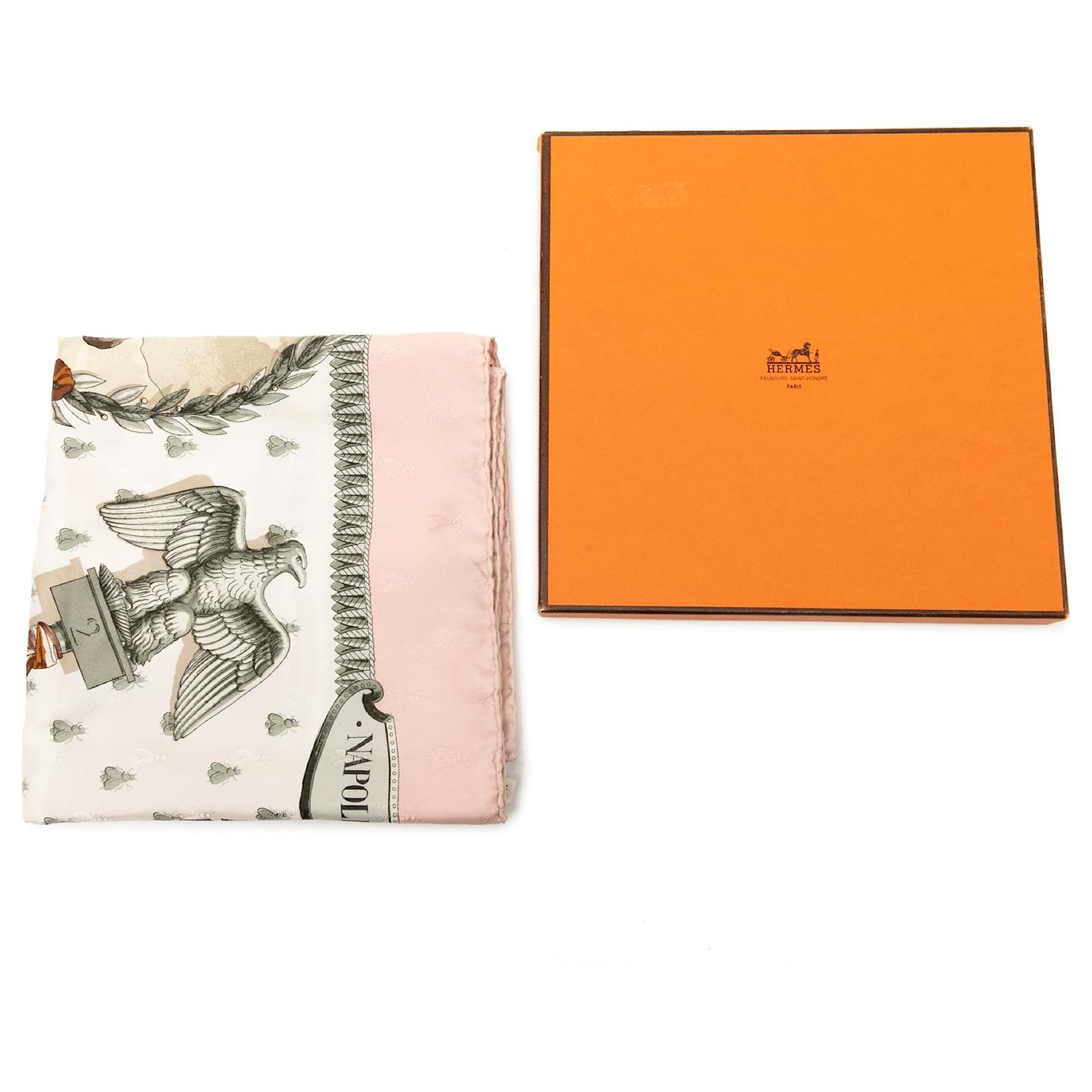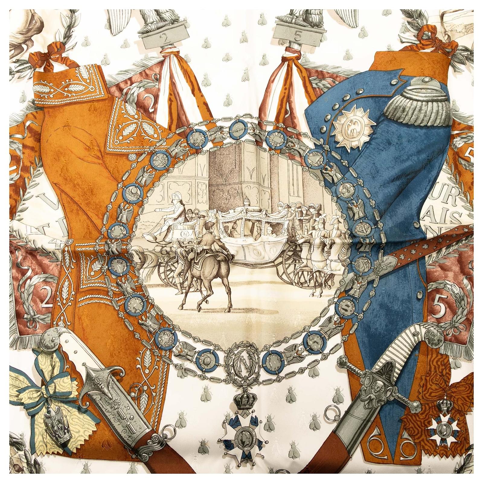 This scarf features the Napoleon print on 100% silk. It carries a B+ condition rating.