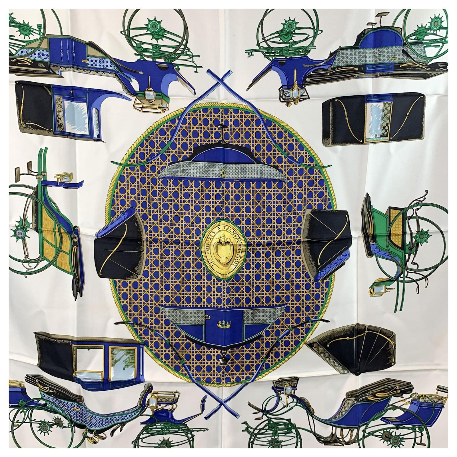 Hermès Hermes Silk Scarf Les Voitures A Transformation 1965 De La Perriere Blue