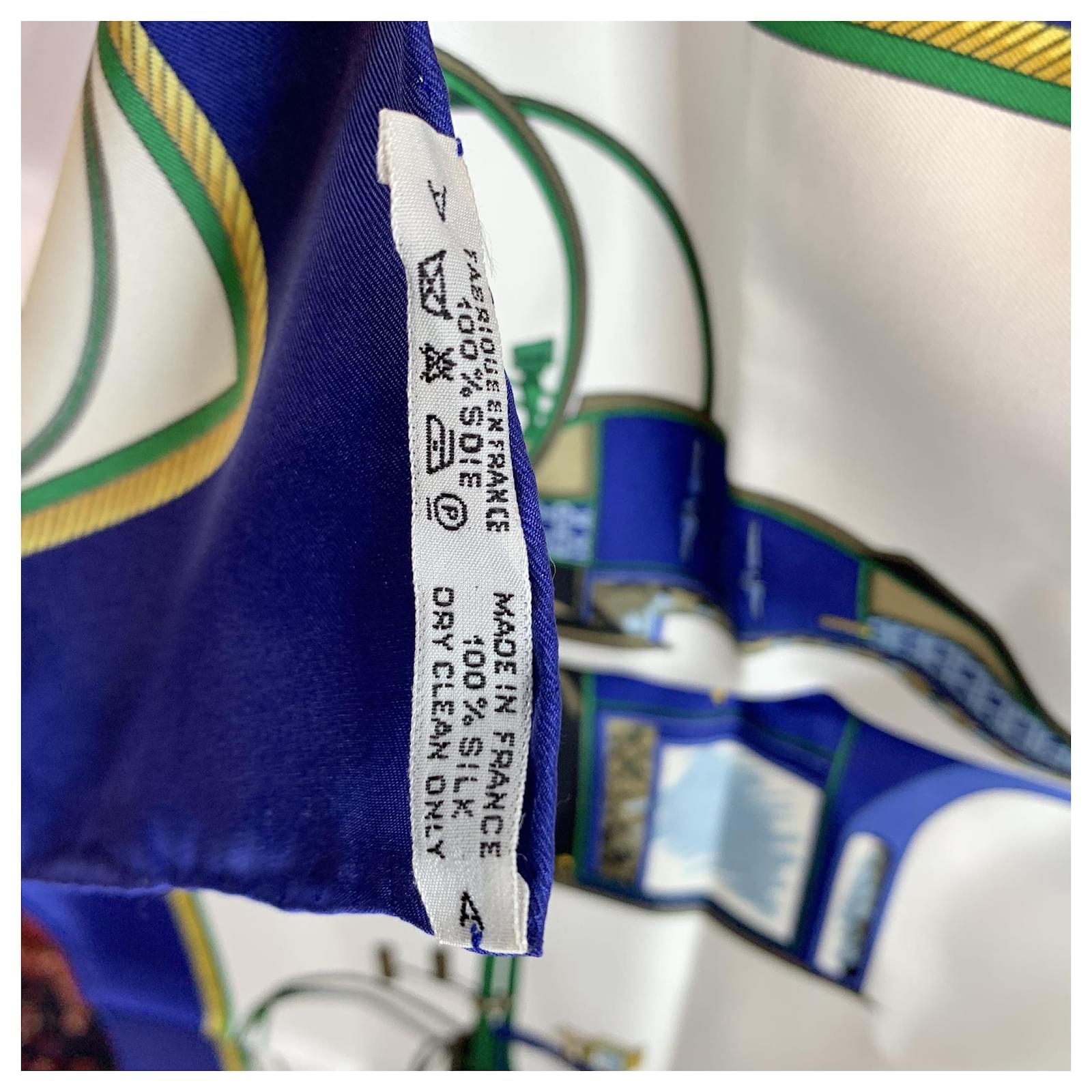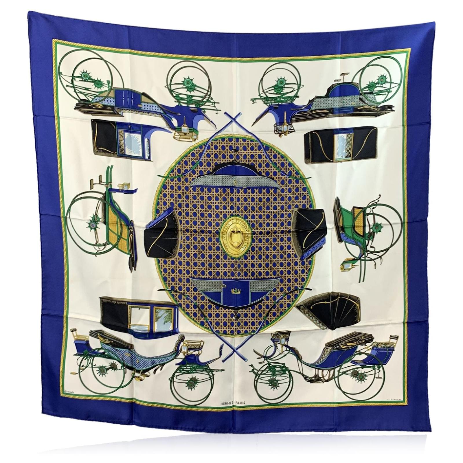 Step into the world of vintage luxury with the HERMÈS 'Les Voitures à Transformation' silk scarf, a true classic designed by Françoise de La Perrière and first issued in 1965. This iconic design has been re-issued multiple times in a variety of colors, formats, and variations, solidifying its status as one of the timeless masterpieces of the Hermès maison. The scarf features an elegant blue border, with intricate depictions of transformable carriages - a playful nod to the evolution of transportation, blending historical references with sophisticated artistry. The design encapsulates a sense of movement and transformation, offering a unique narrative woven into the luxurious fabric. With approximate measurements of 35 x 35 inches (88.8 x 88.8 cm), this scarf is perfectly sized for wearing in a variety of styles, whether as a neck scarf, headscarf, or even framed as a stunning art piece. The 'HERMÈS Paris' logo is discreetly printed in the lower center. Whether you're a collector of fine Hermès scarves or simply someone who appreciates classic design, the 'Les Voitures à Transformation' is an essential piece that brings timeless style and elegance to any wardrobe. Condition B - VERY GOOD Some darkness along the folds. A couple of brown spots on silk. Hermes composition tag still attached. Please check the photos carefully and ask if you need to know more details or if you have any doubts. Details MATERIAL: Silk COLOR: Blue MODEL: Carre 90 GENDER: Women COUNTRY OF MANUFACTURE: France FEATURES: Multifunctional PATTERN: Solid YEAR MANUFACTURED: 1960-1969 BOX? No Measurements SCARF HEIGHT: 35 inches - 90 cm SCARF WIDTH: 35 inches - 90 cm