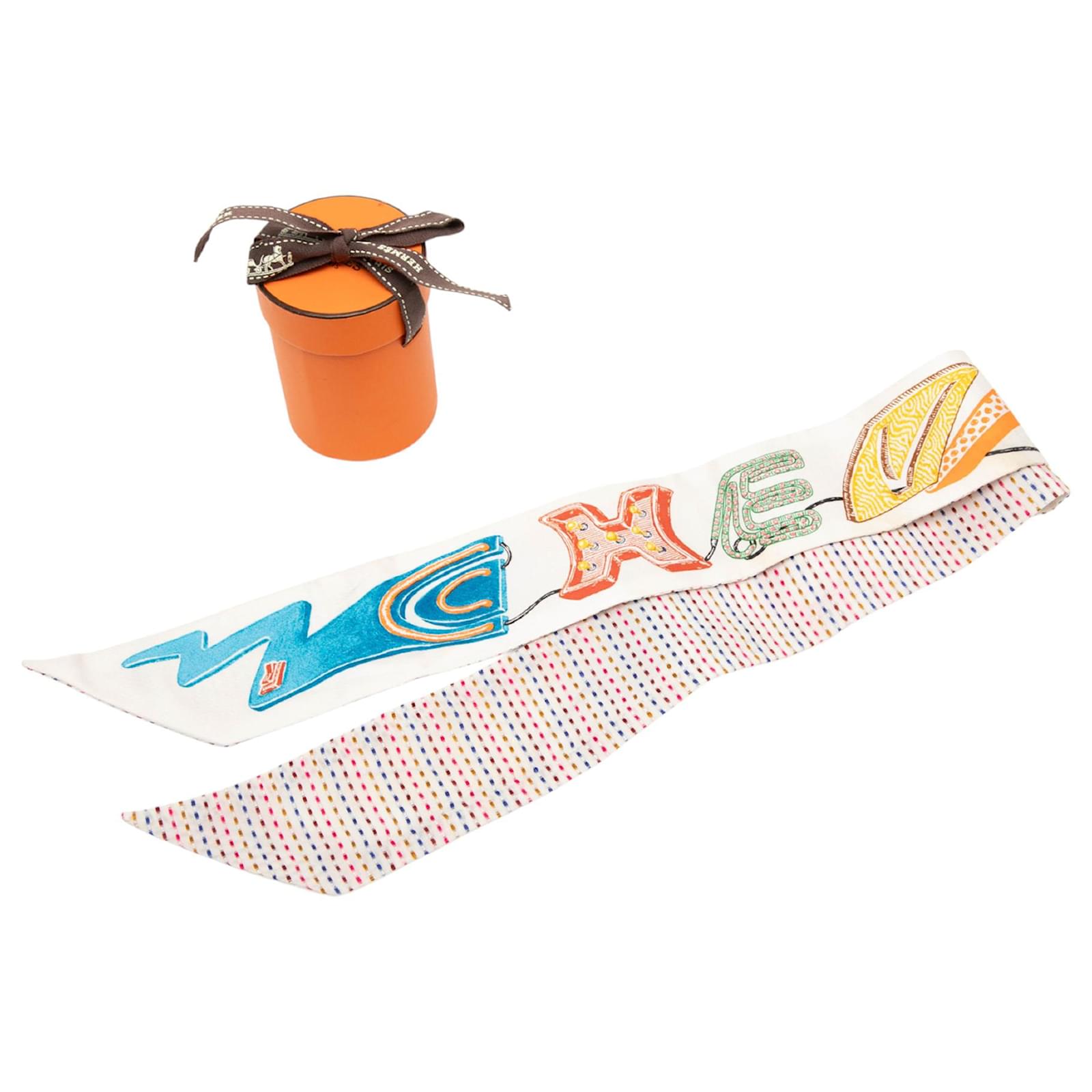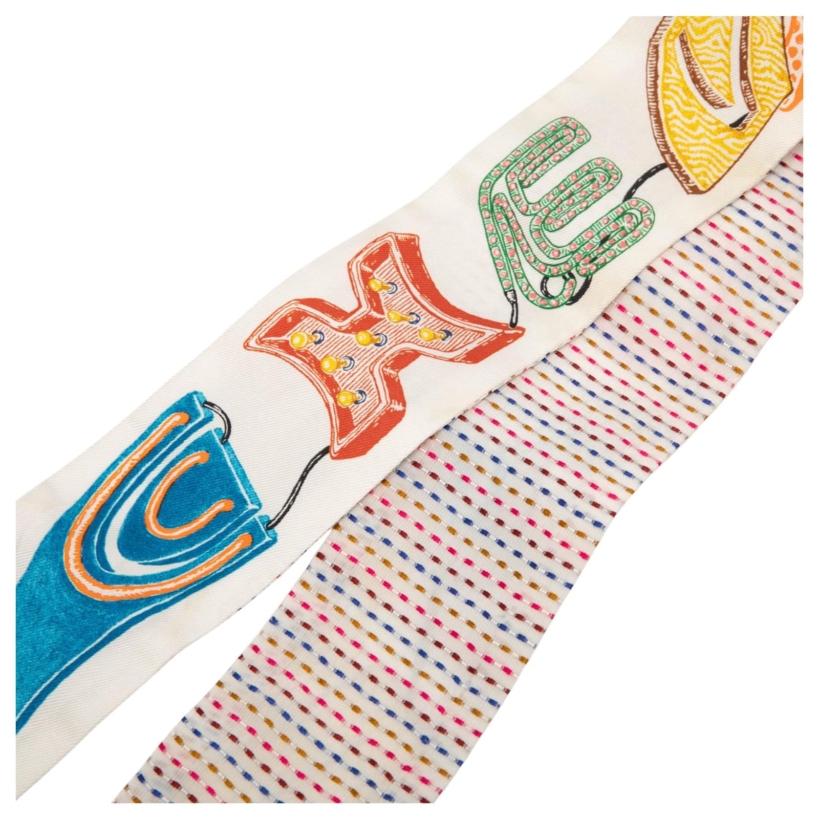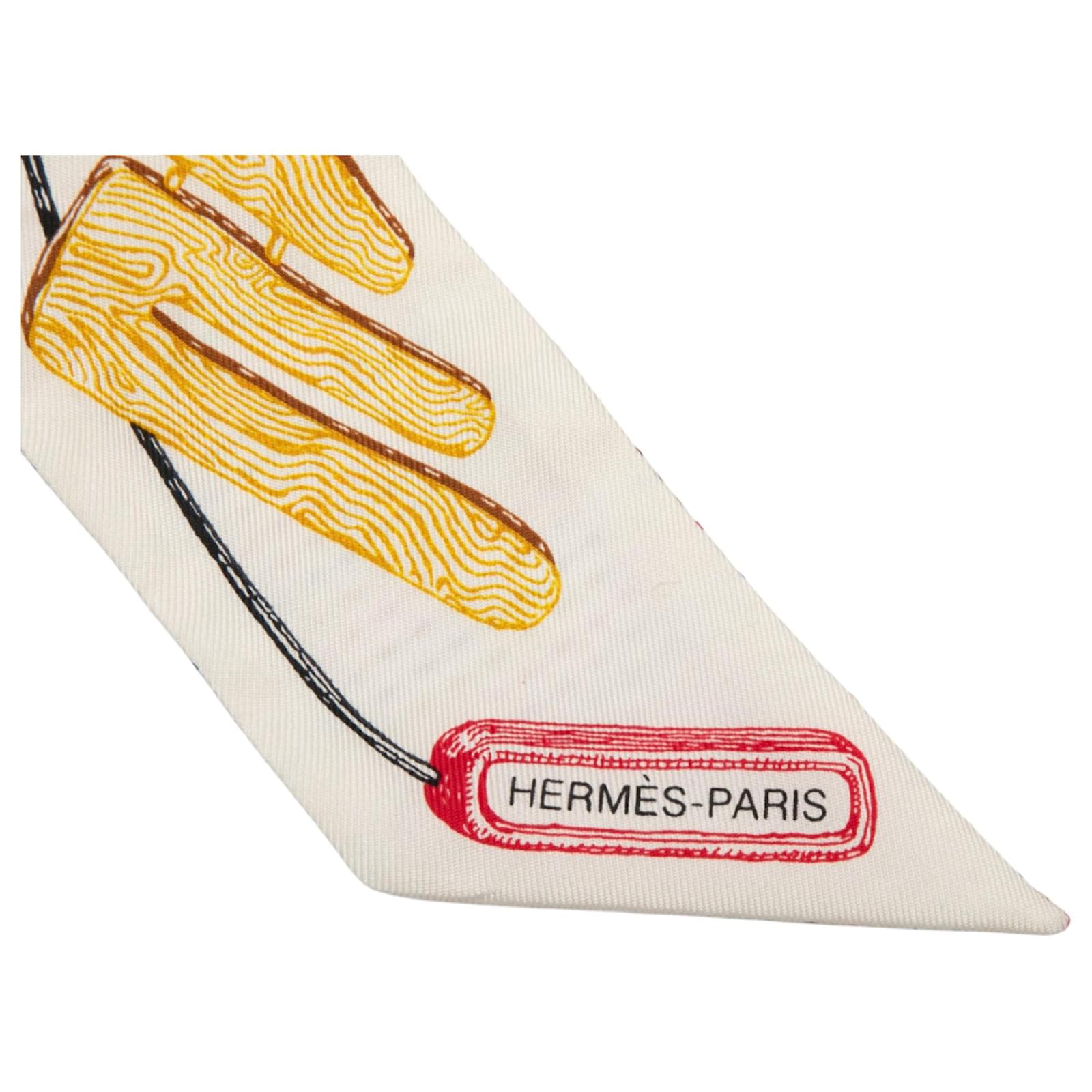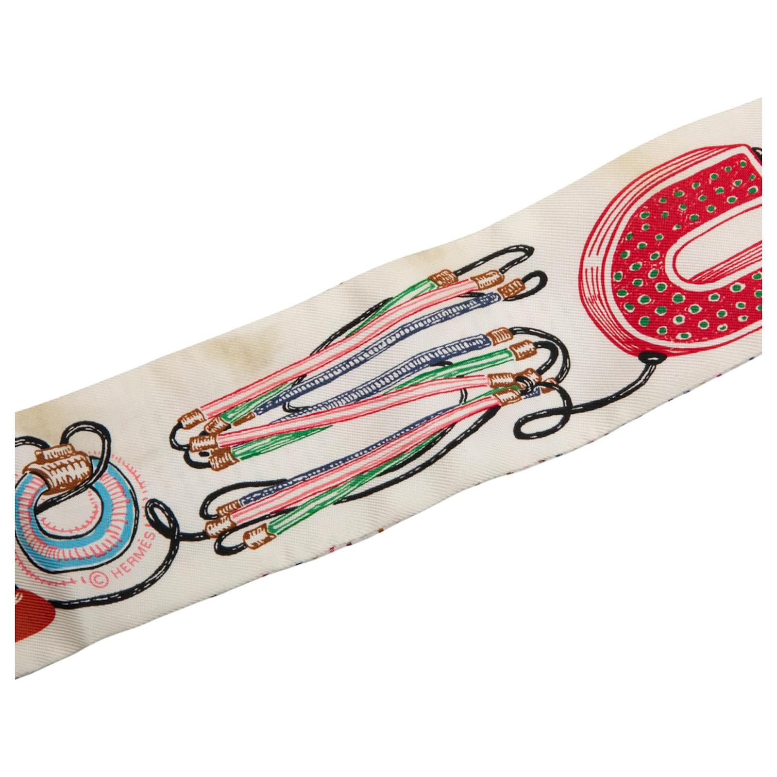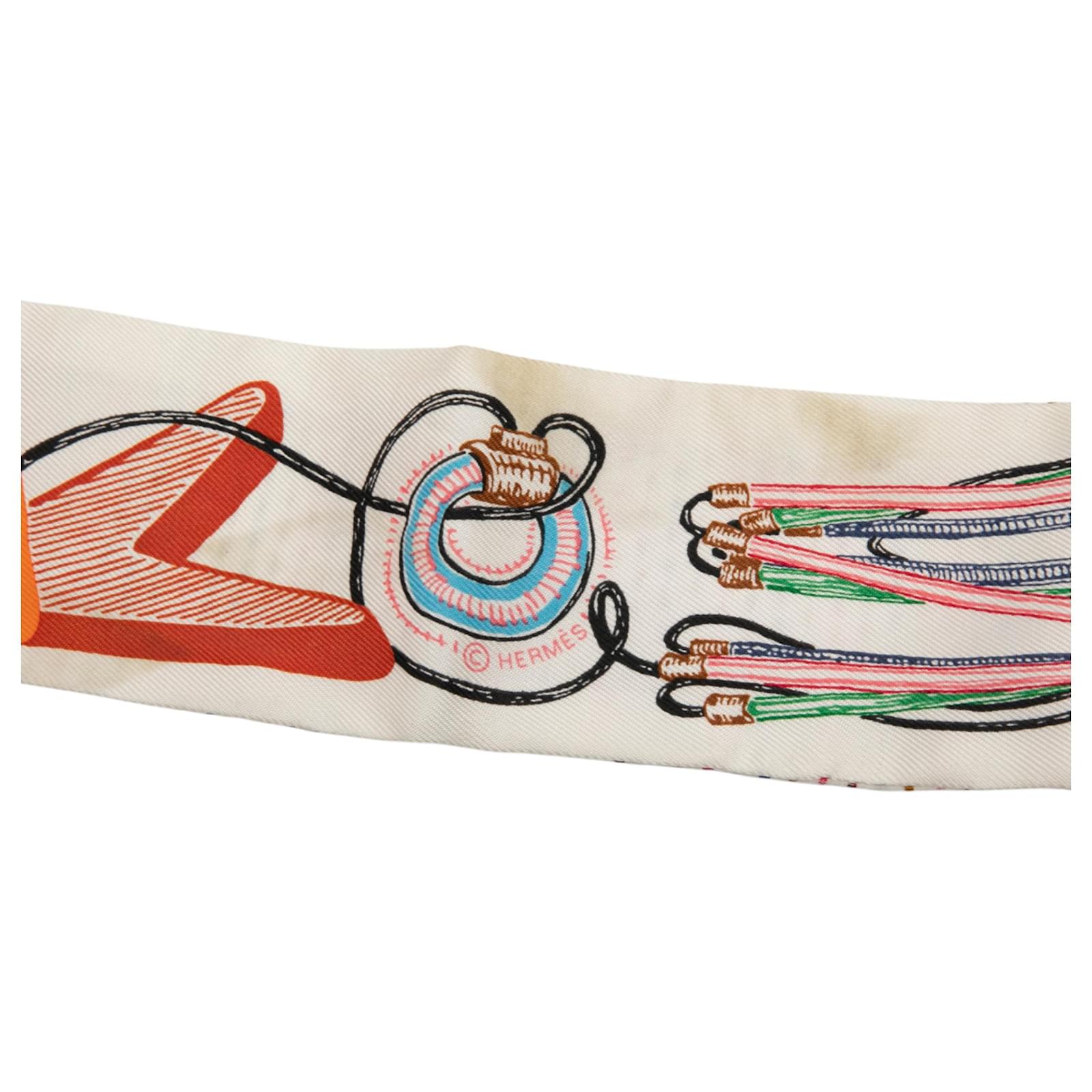 Hermès White Chevaloscope Pointille Silk Twilly Scarf