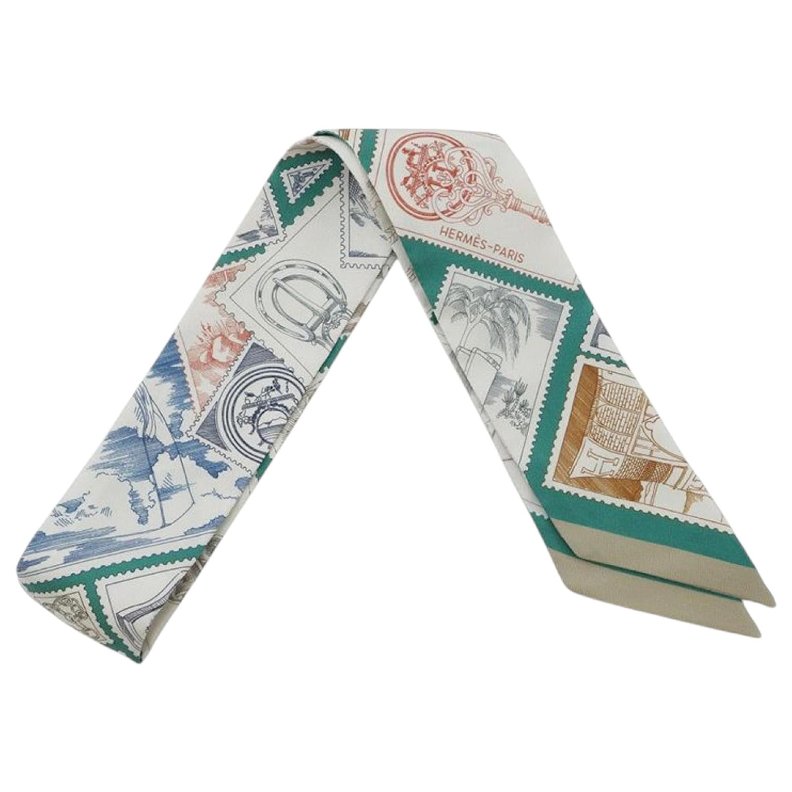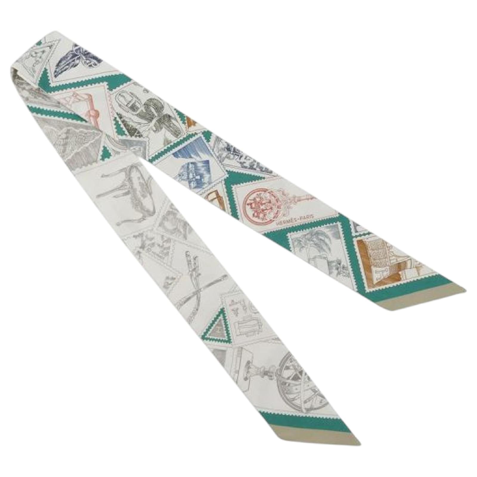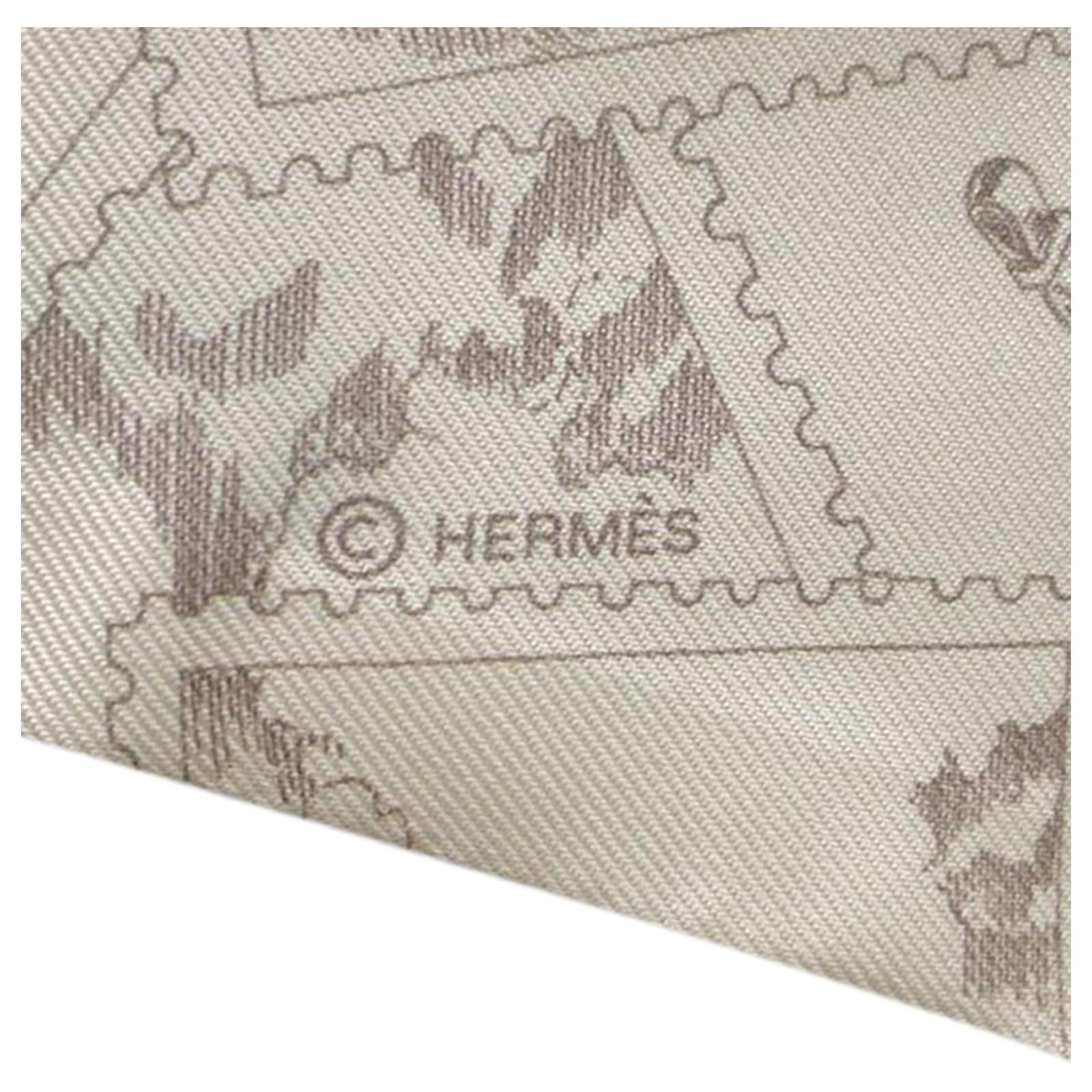 Hermès White Le Philateliste du Faubourg Silk Twilly Scarf