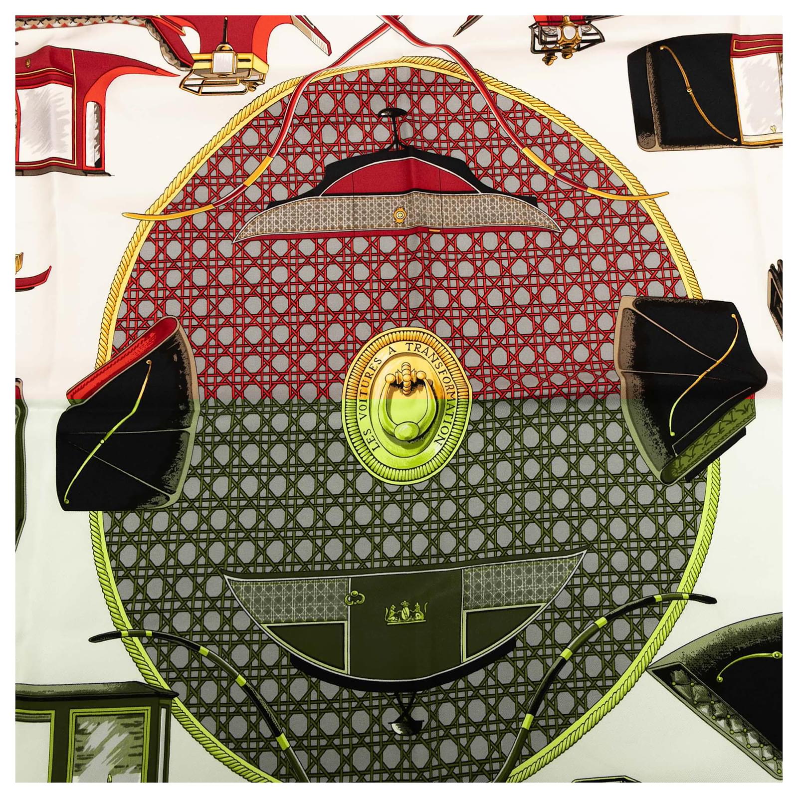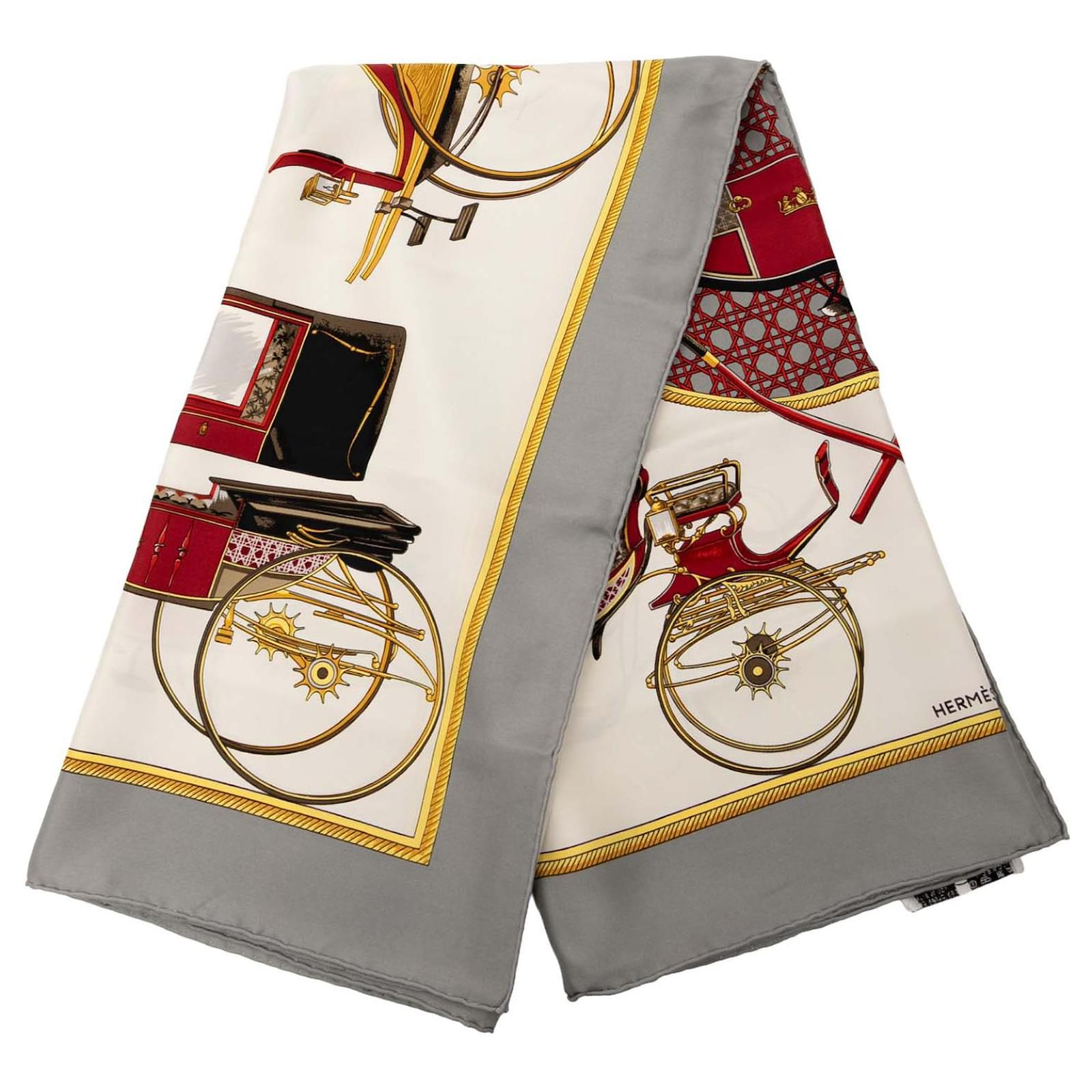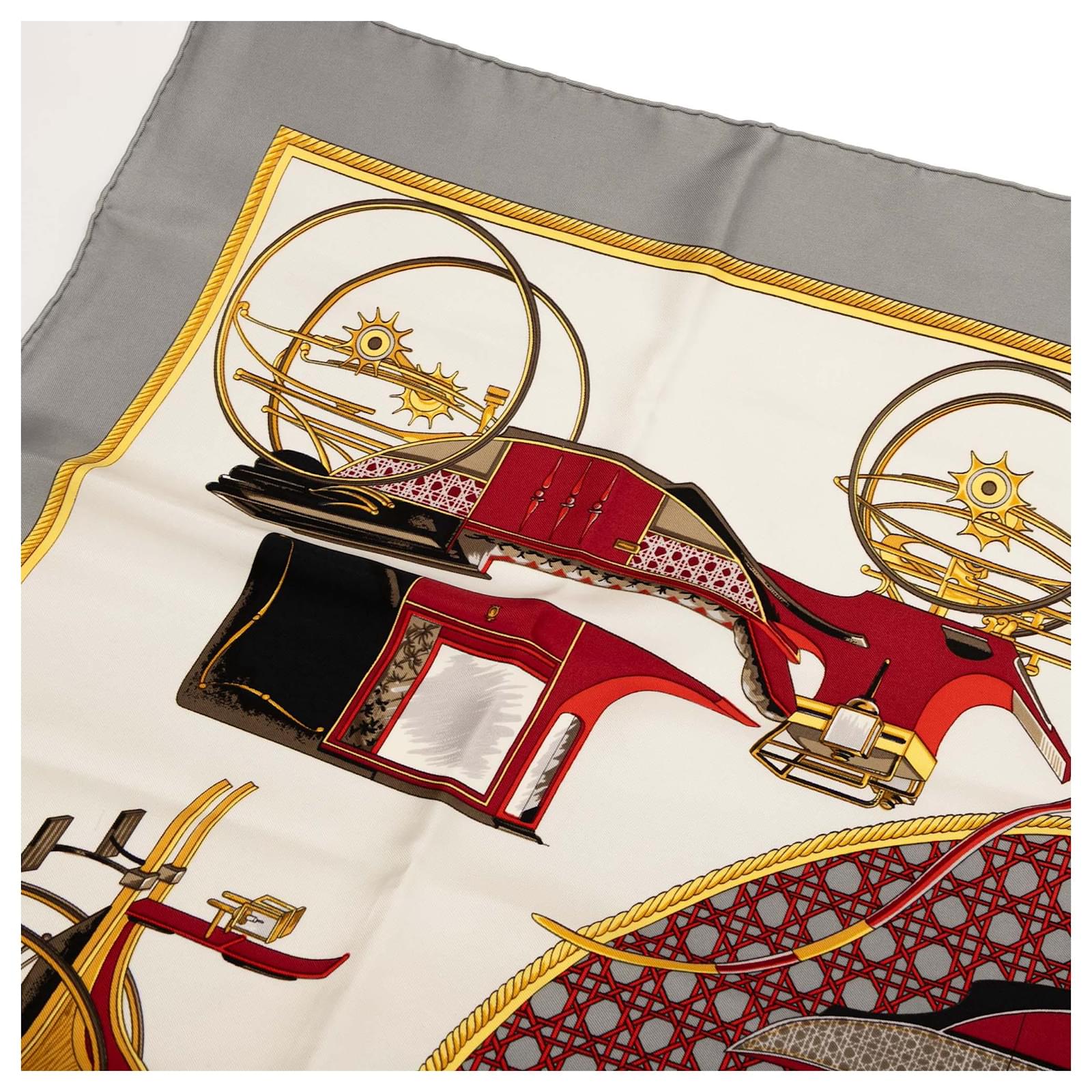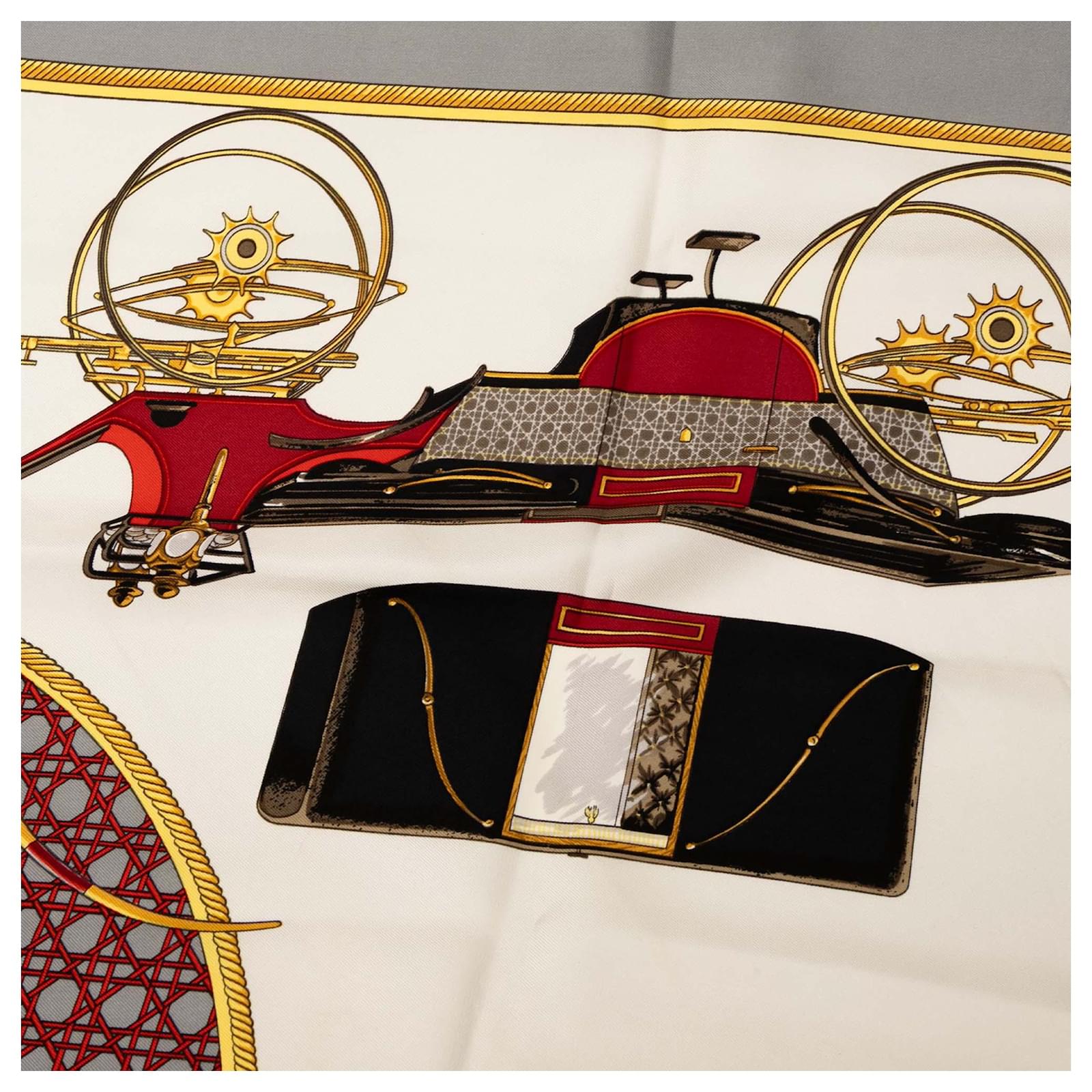 Hermès White Les Voitures a Transformation Silk Scarf