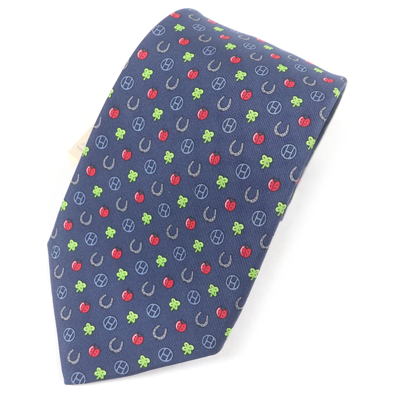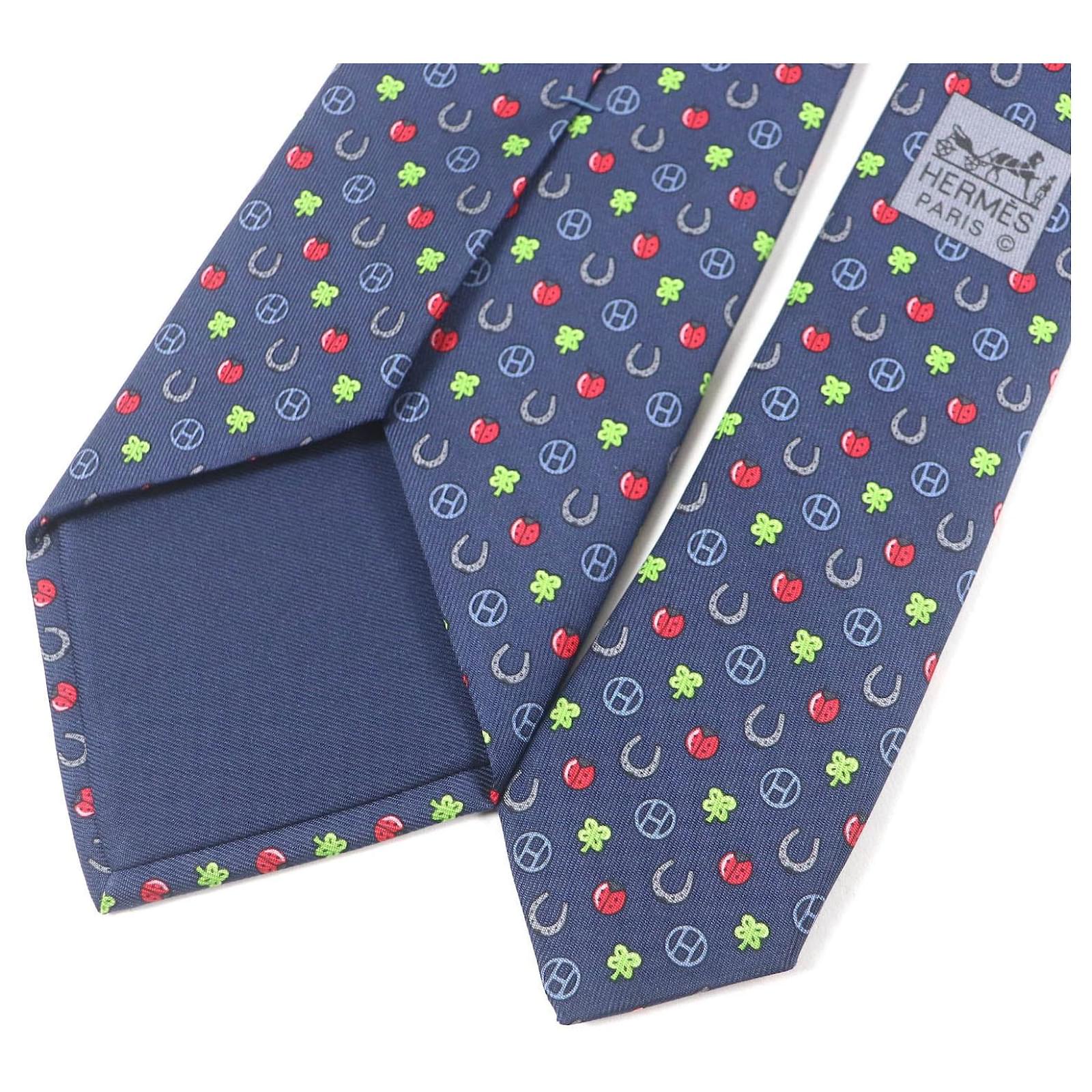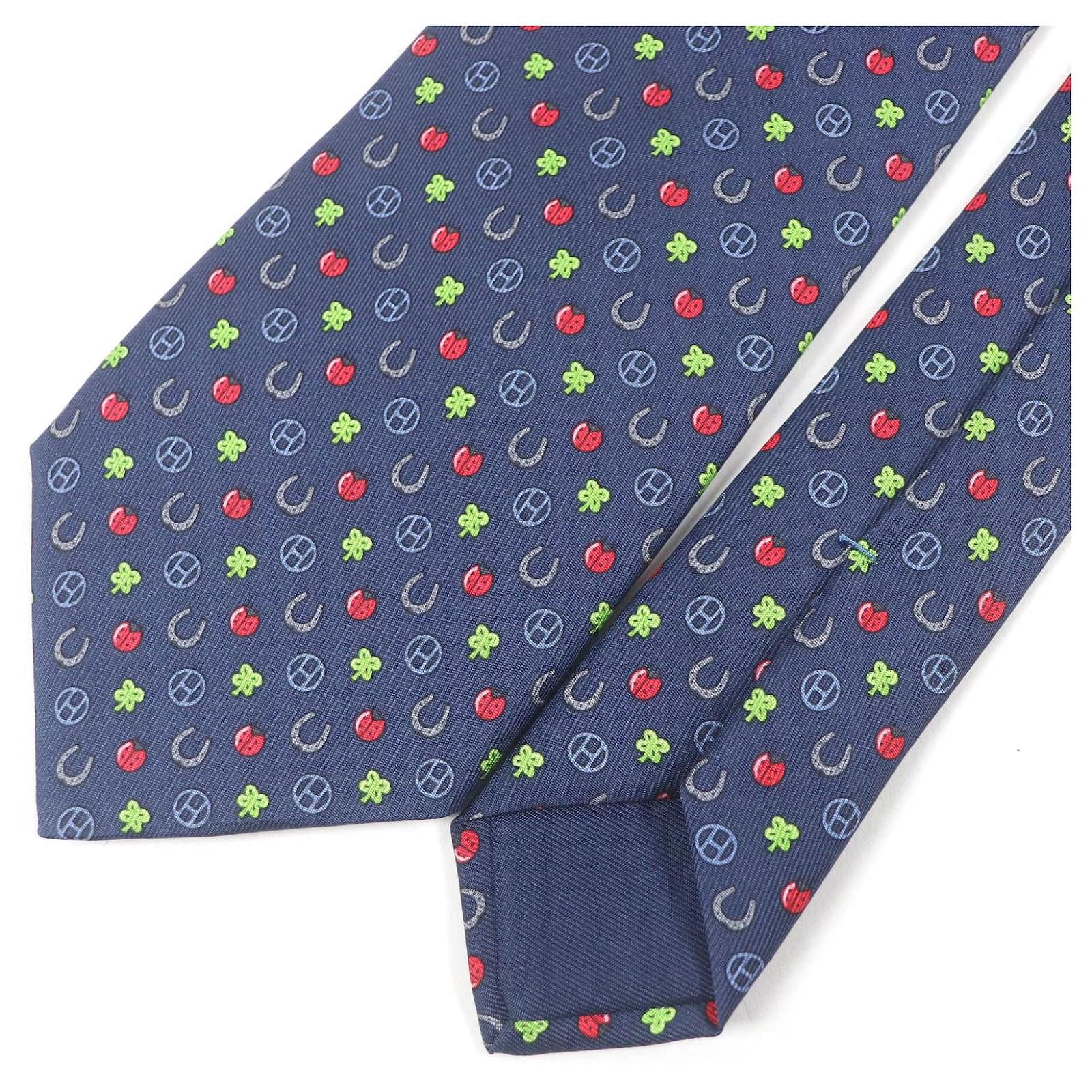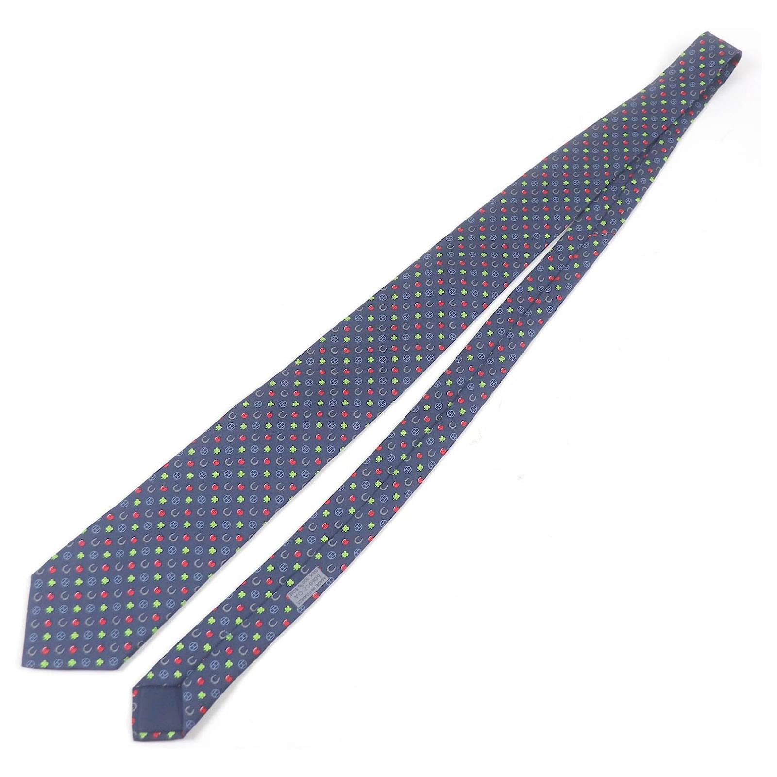 Hermès Hermes Silk H606012T Tie Made in France Red Blue