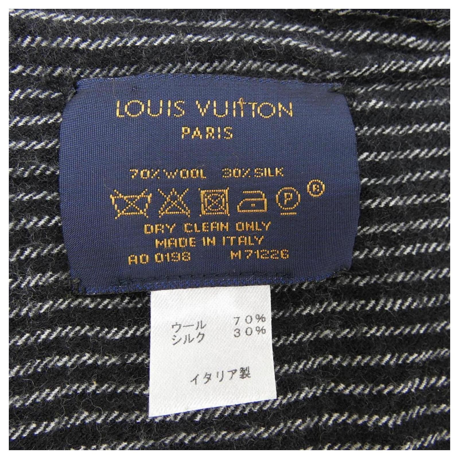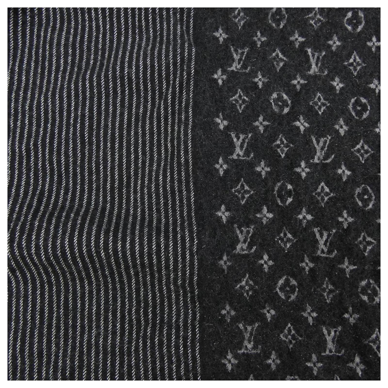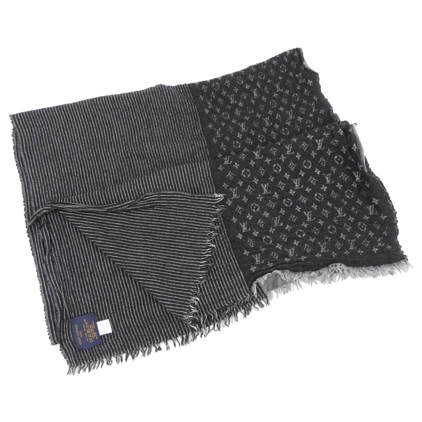 This Louis Vuitton stole features a classic design in black and gray, crafted from silk. Measuring 1.78 meters by 55 centimeters, it offers a versatile accessory option. The item is categorized as used and is in acceptable condition, showing moderate traces of use, including scratches and dirt. Potential buyers are encouraged to review the provided images for a clear understanding of the item's condition.