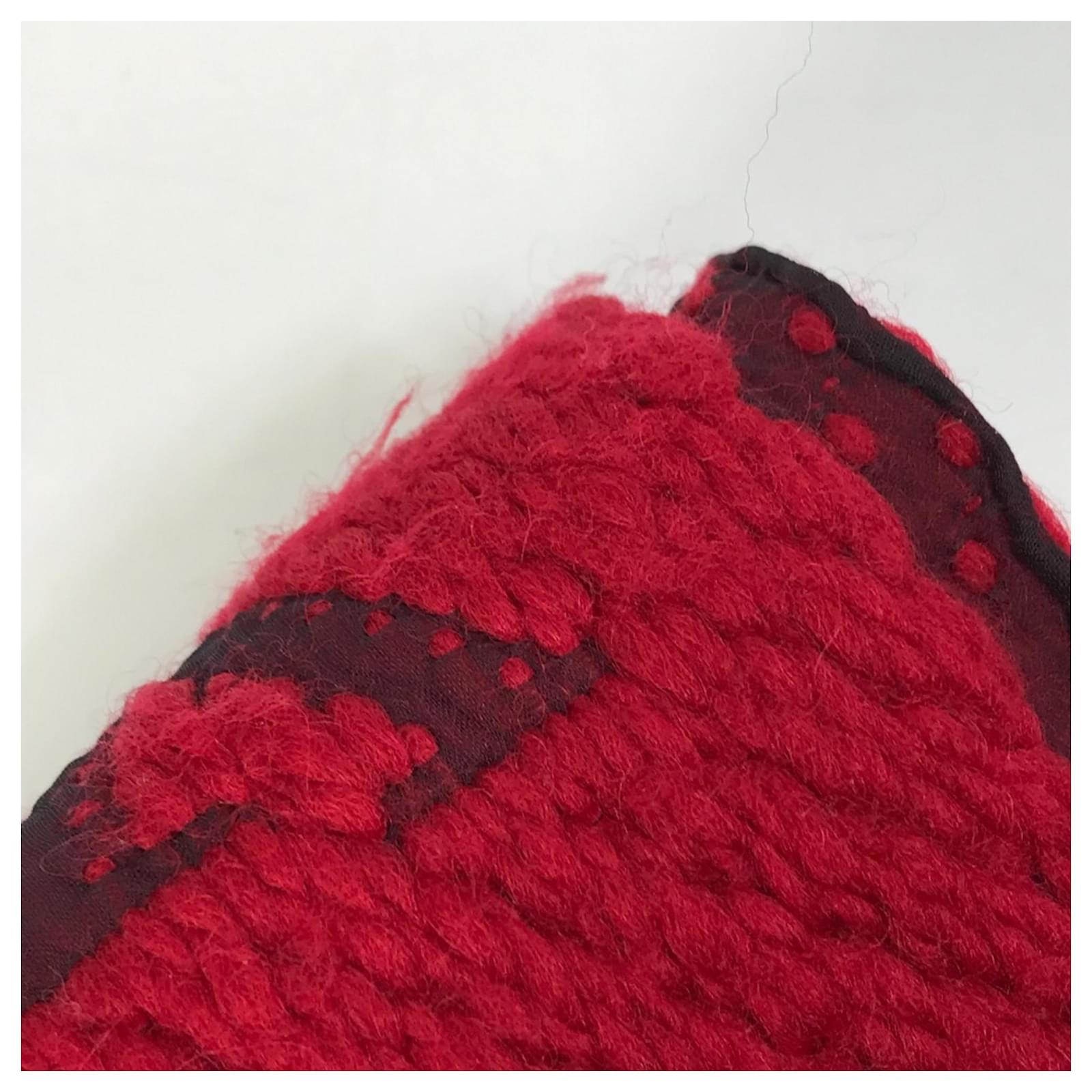 The Louis Vuitton Echarpe Logo Mania Fringe Scarf is a stylish accessory crafted from a blend of wool and silk, featuring a vibrant red color. This rectangular stole measures 1.6 meters in length and 31 centimeters in width, making it a versatile addition to any wardrobe.