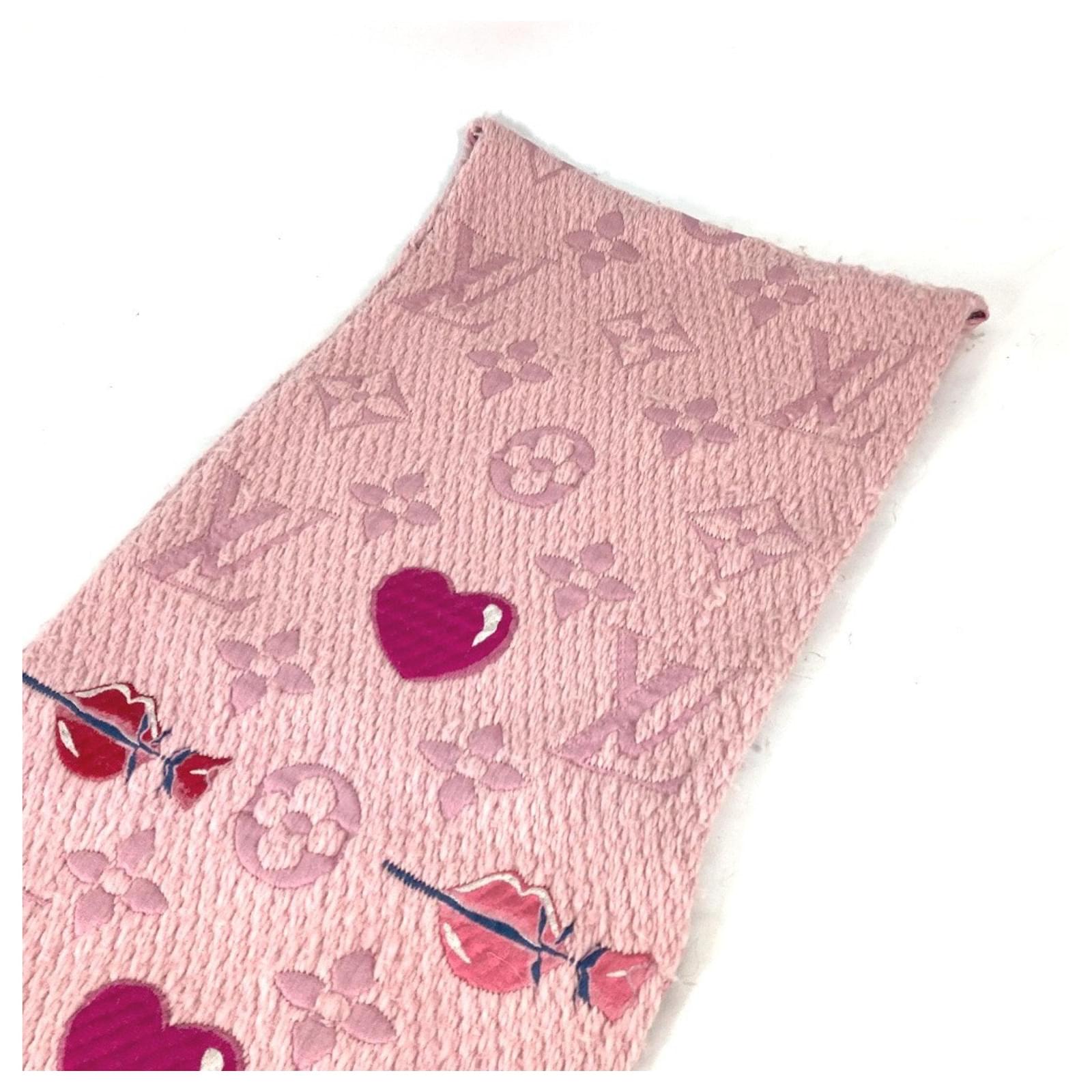 Louis Vuitton M71587 Echarpe Logomania a La Folie Heart Lip Fringe Scarf Pink Red