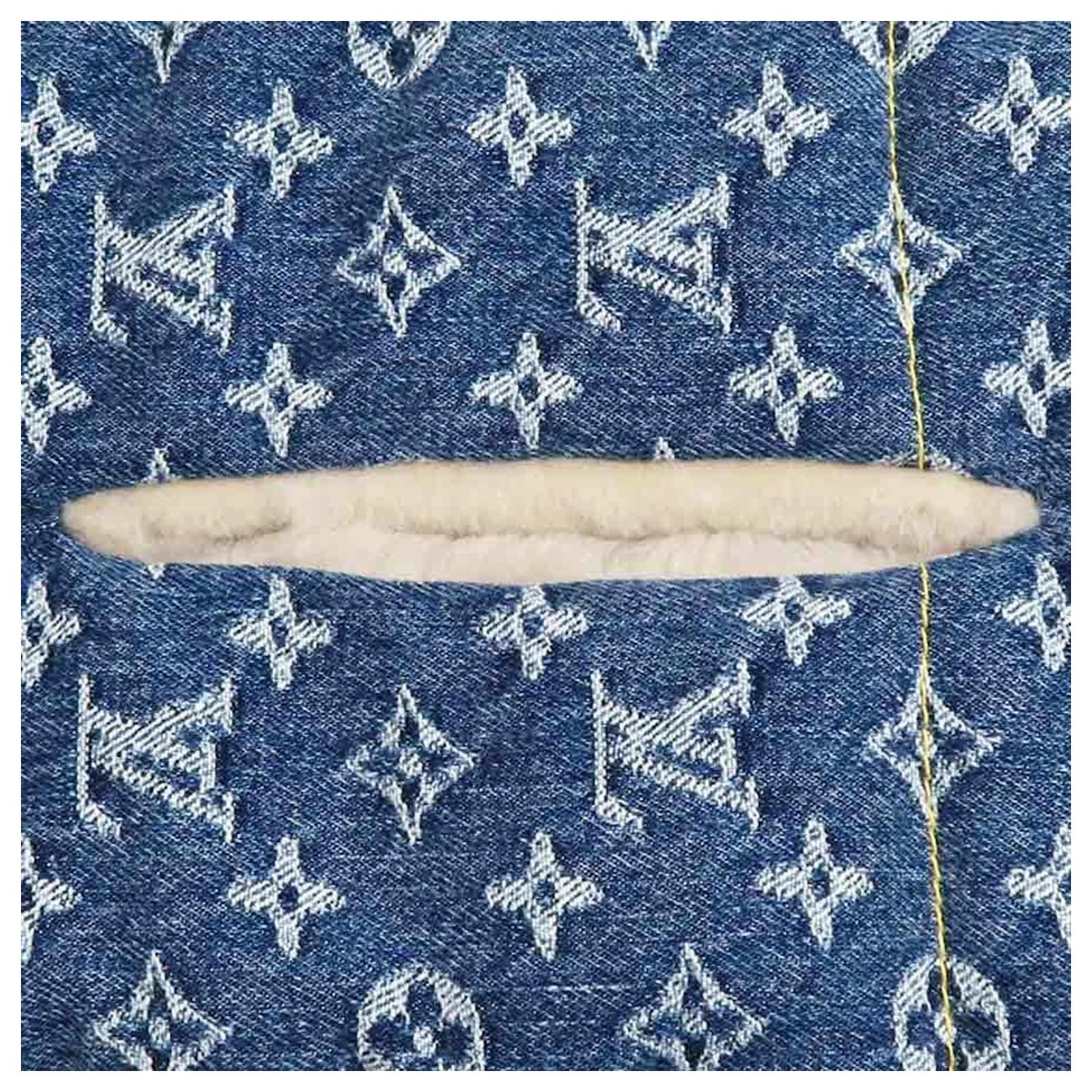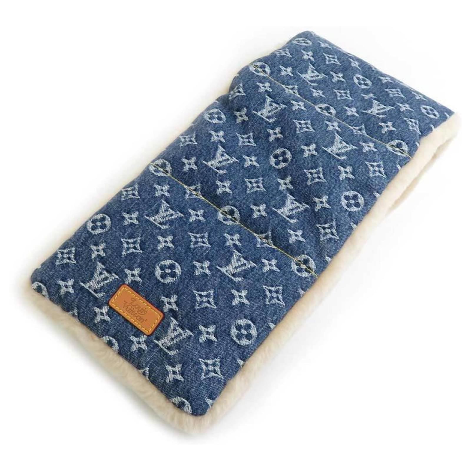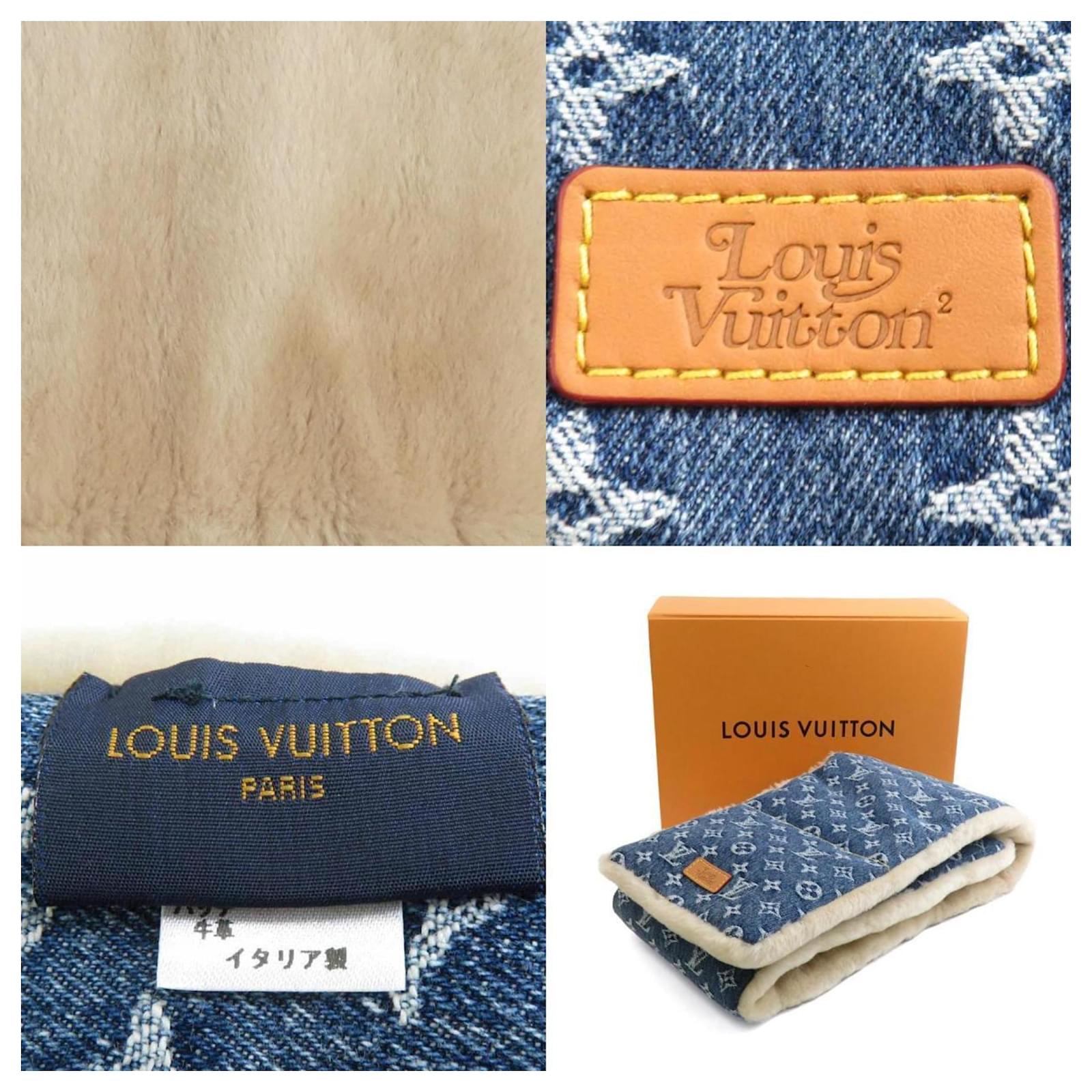 This Louis Vuitton stole features a unique collaboration with NIGO, showcasing a blend of beige and blue colors in its monogram denim and shearling fur material. Measuring 1.25 meters by 20 centimeters, it is suitable for both men and women. The item is in very good used condition, classified as Rank A, with only insignificant traces of use, scratches, or dirt. It comes with a box, and potential buyers are encouraged to review the images for a detailed view of the item's condition and included accessories.