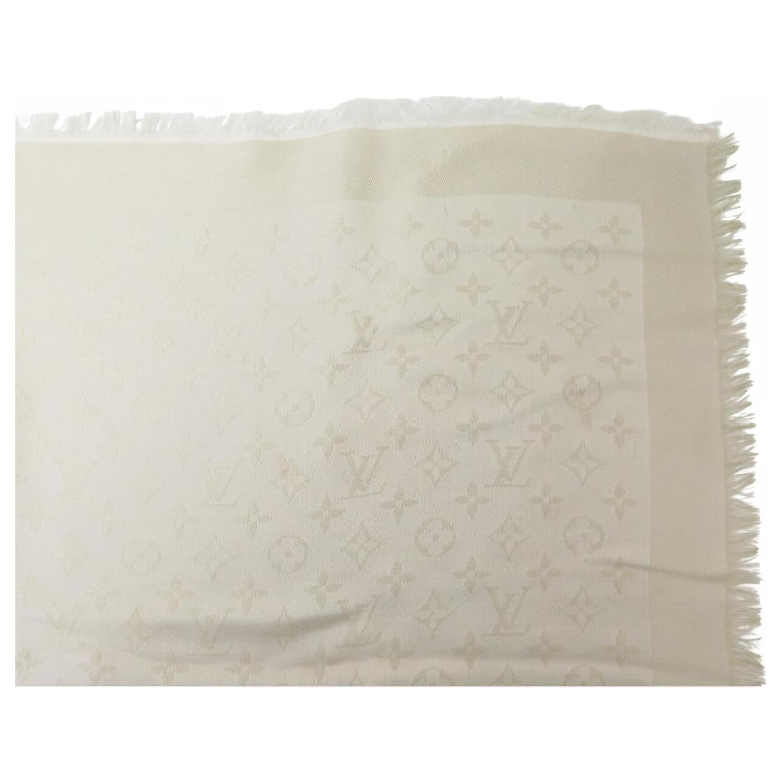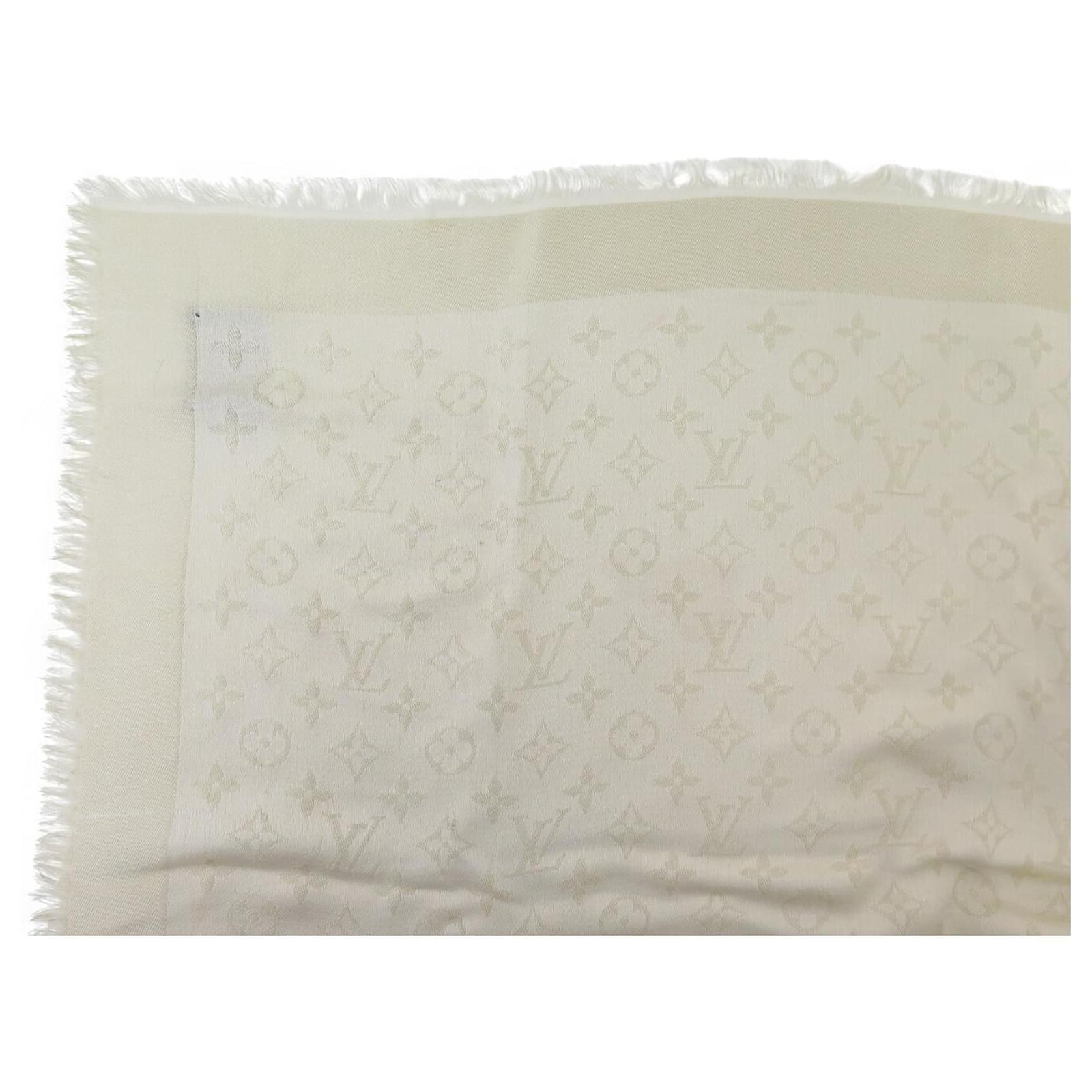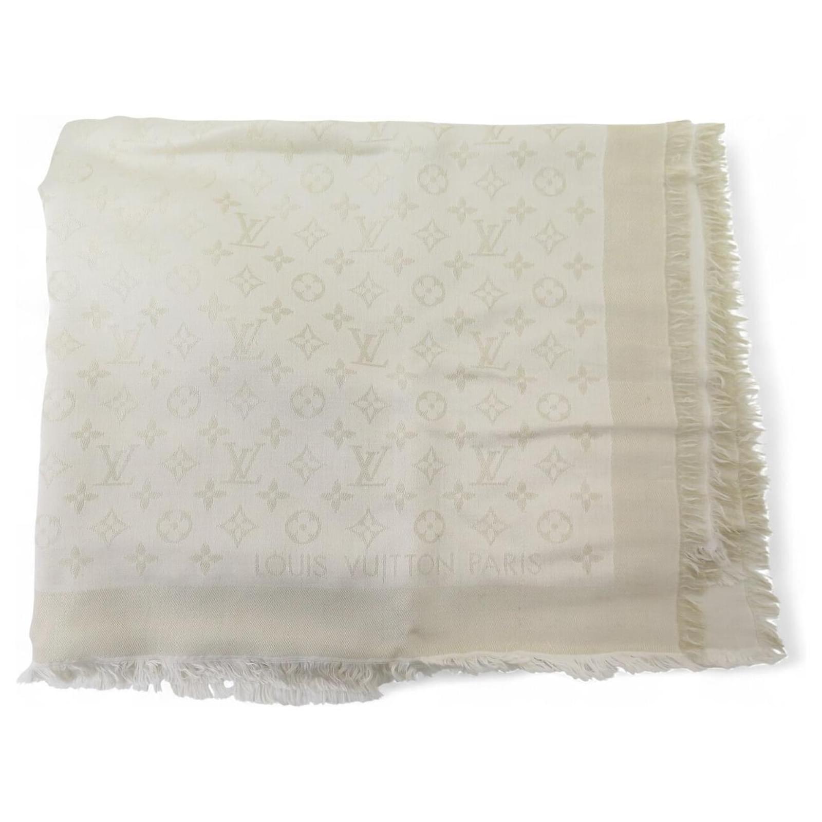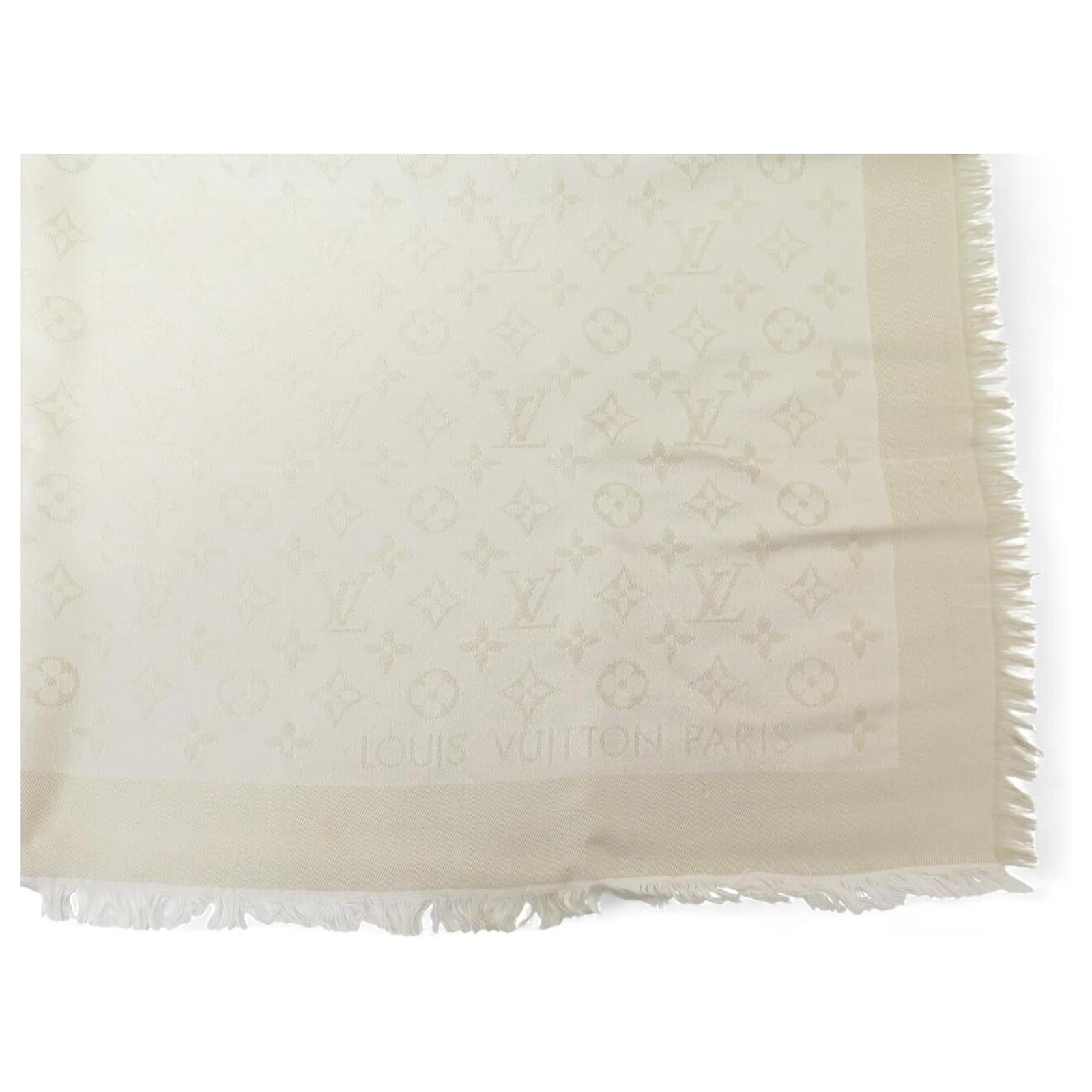 LOUIS VUITTON MONOGRAM SHINE CHALE SCARF M74026 SILK VISCOSE WOOL SHAWL Cream