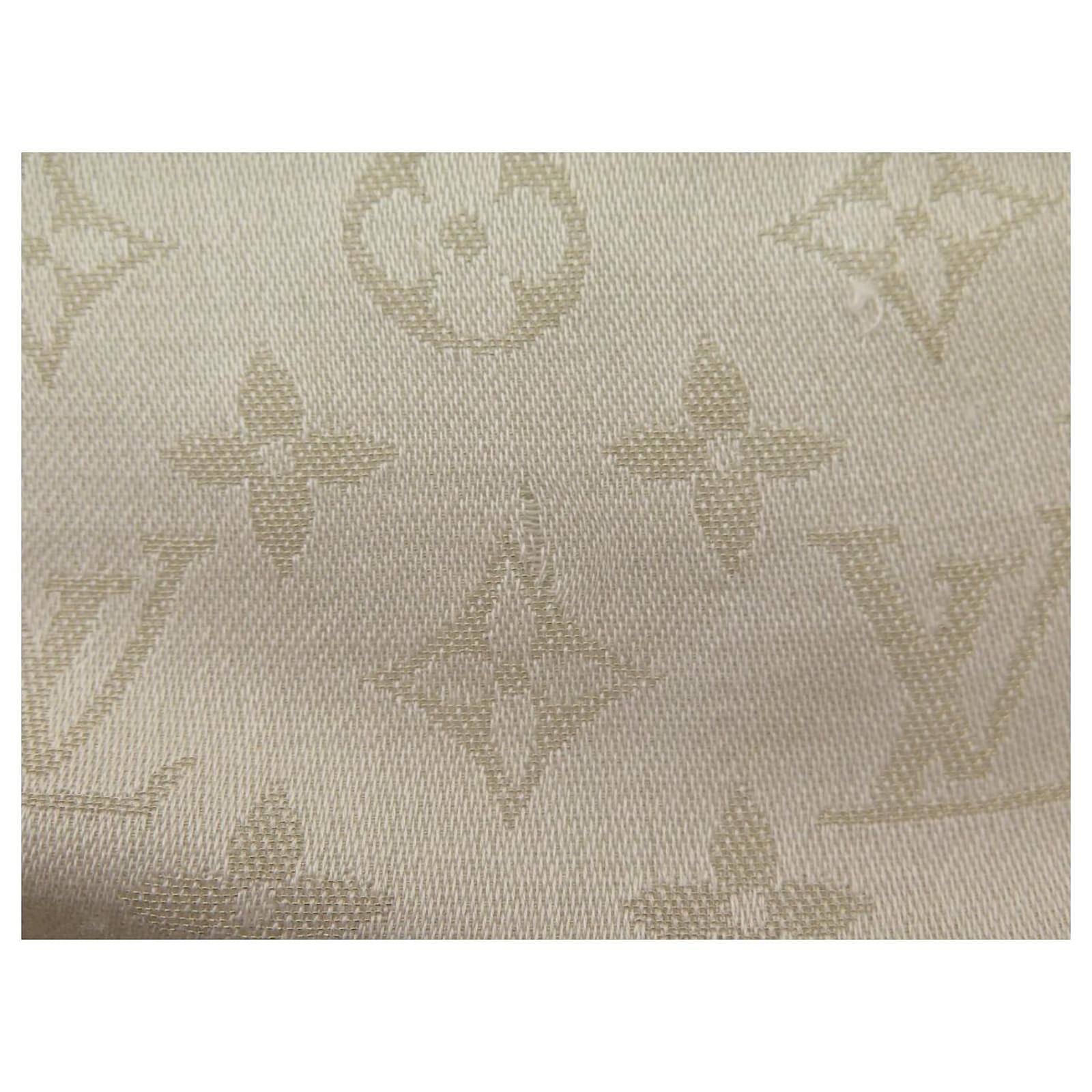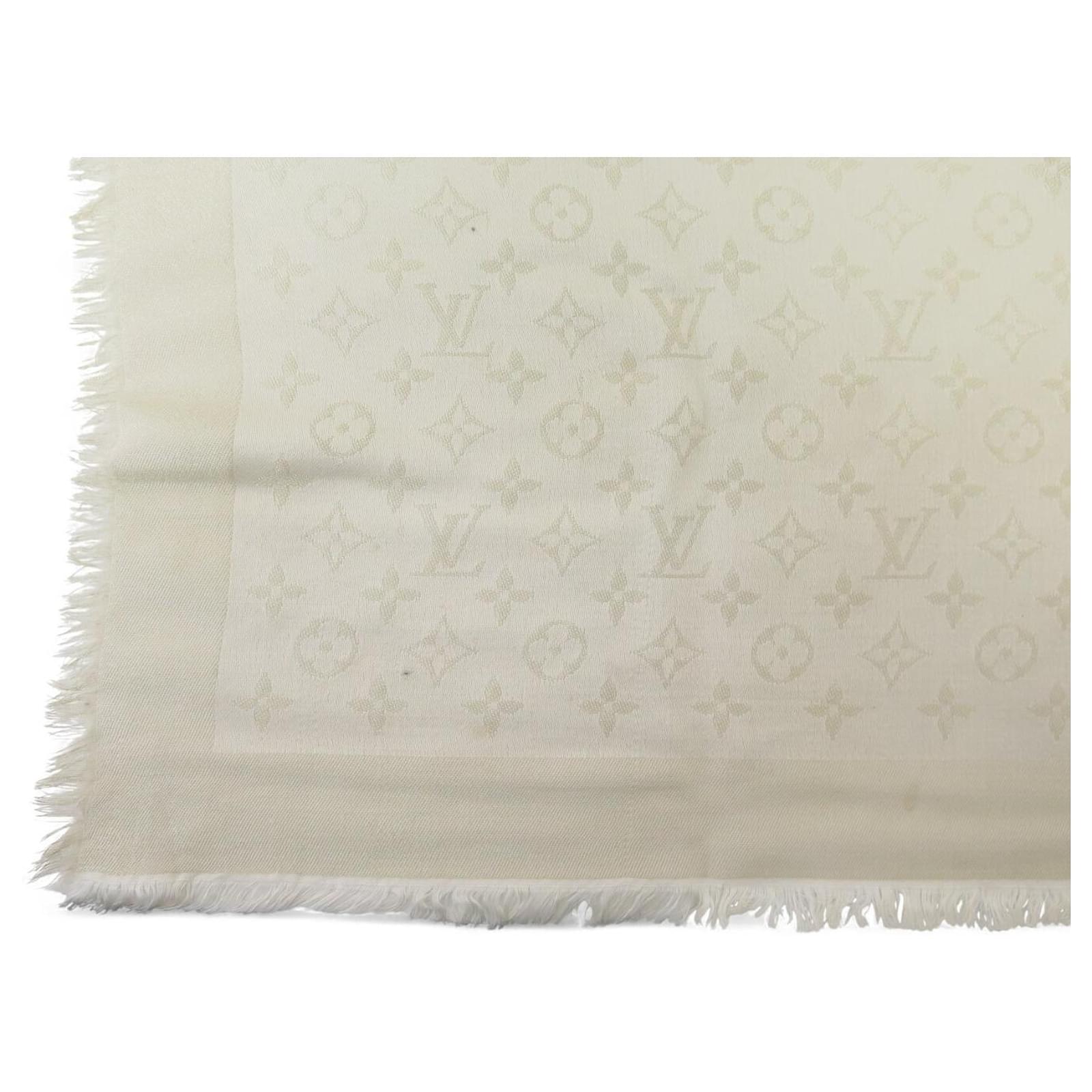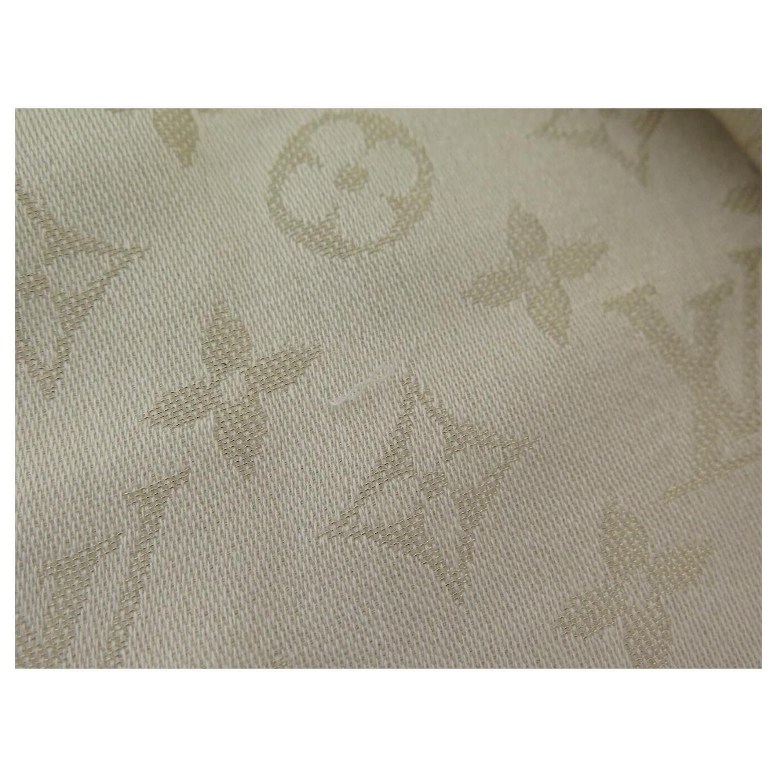 LOUIS VUITTON MONOGRAM SHINE CHALE SCARF M74026 SILK VISCOSE WOOL SHAWL Cream