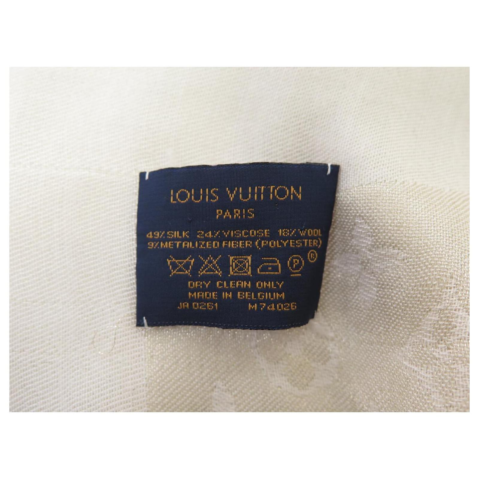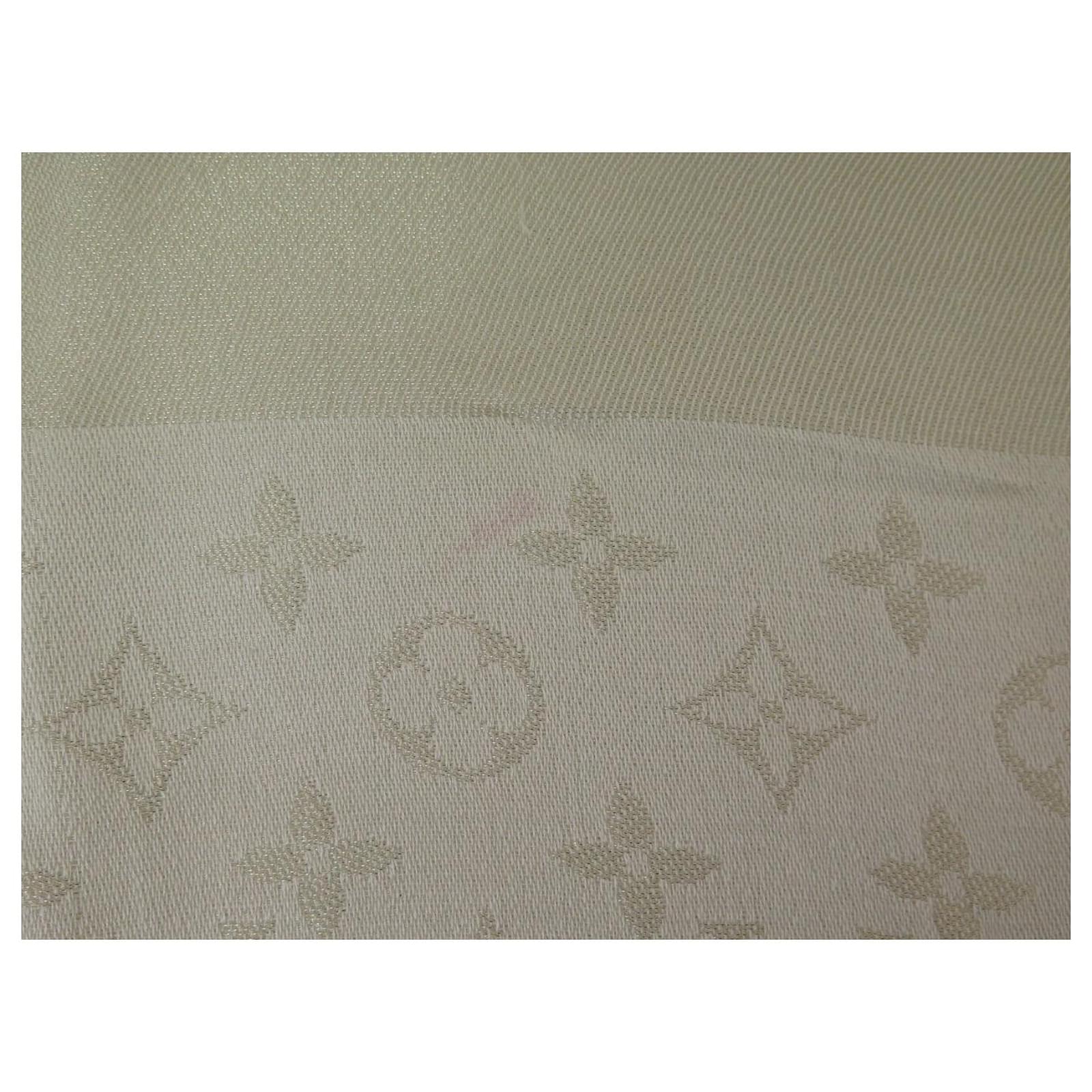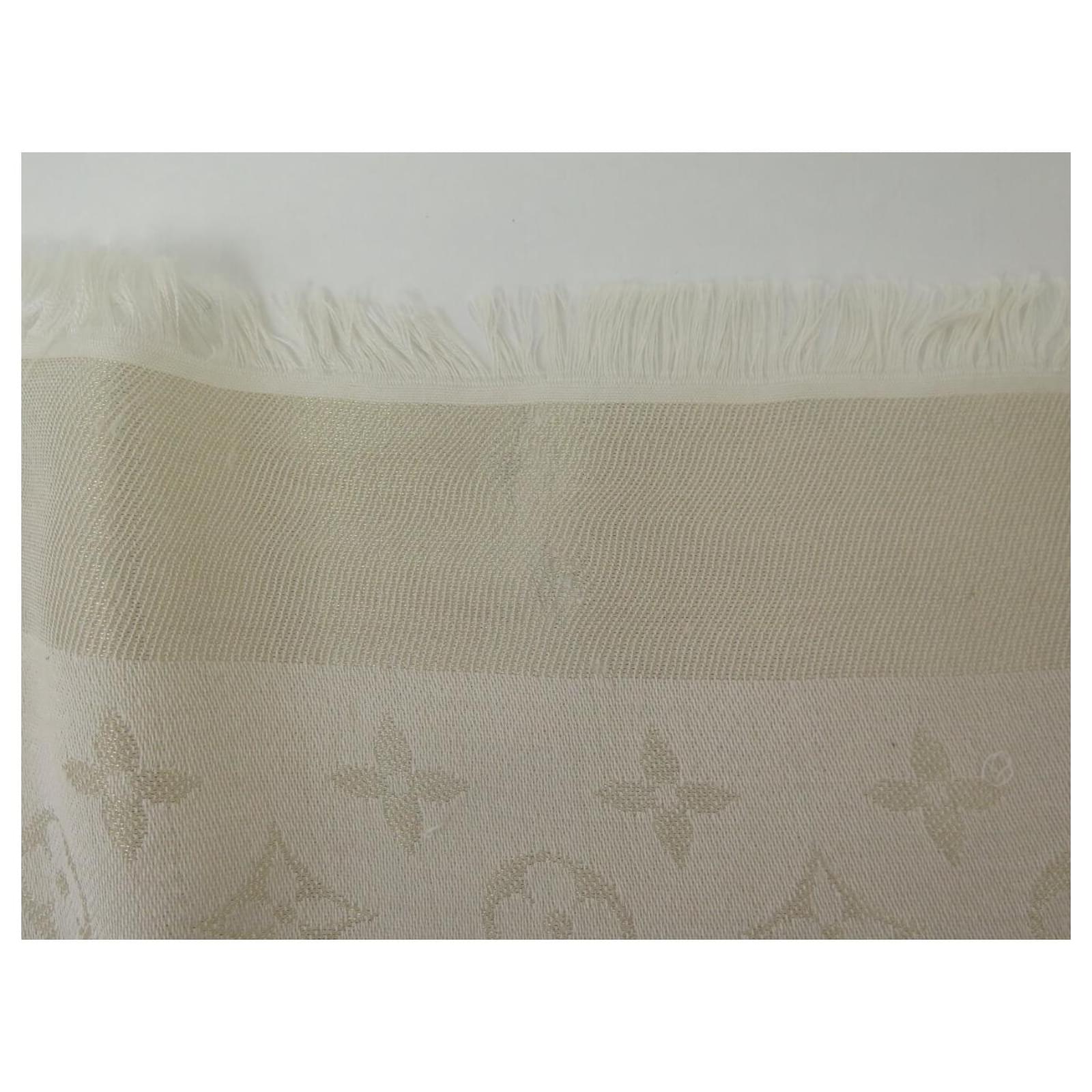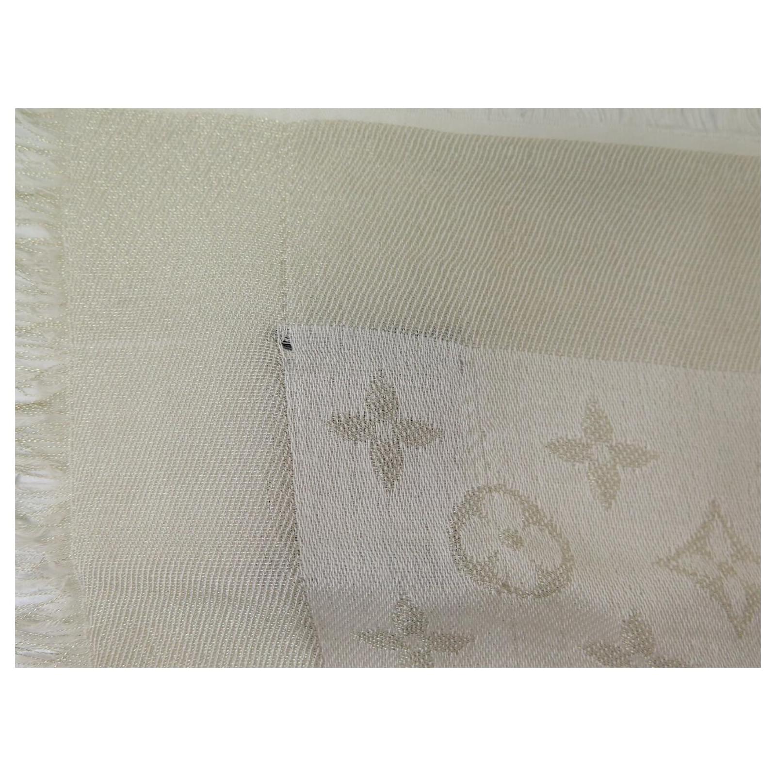 LOUIS VUITTON MONOGRAM SHINE CHALE SCARF M74026 SILK VISCOSE WOOL SHAWL Cream