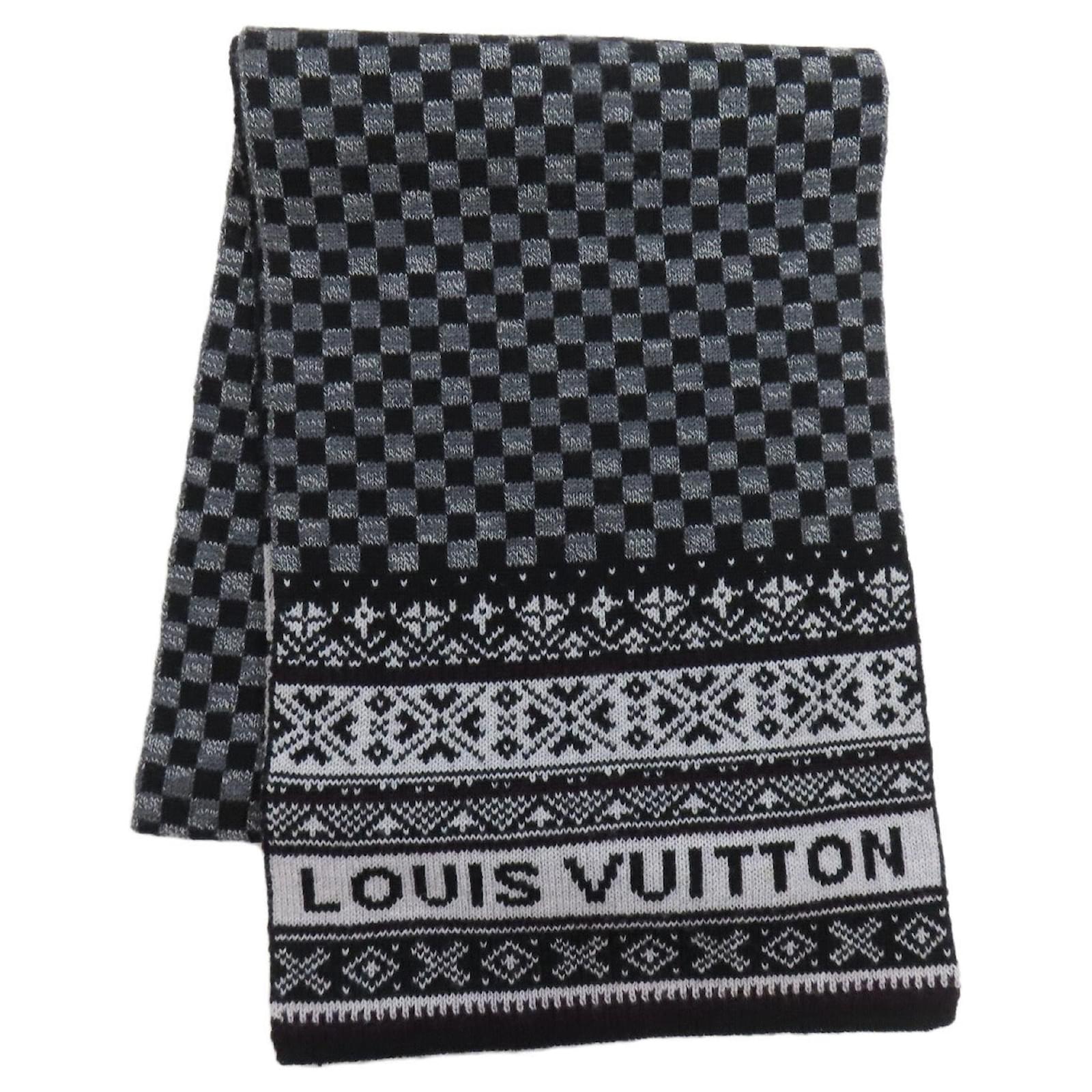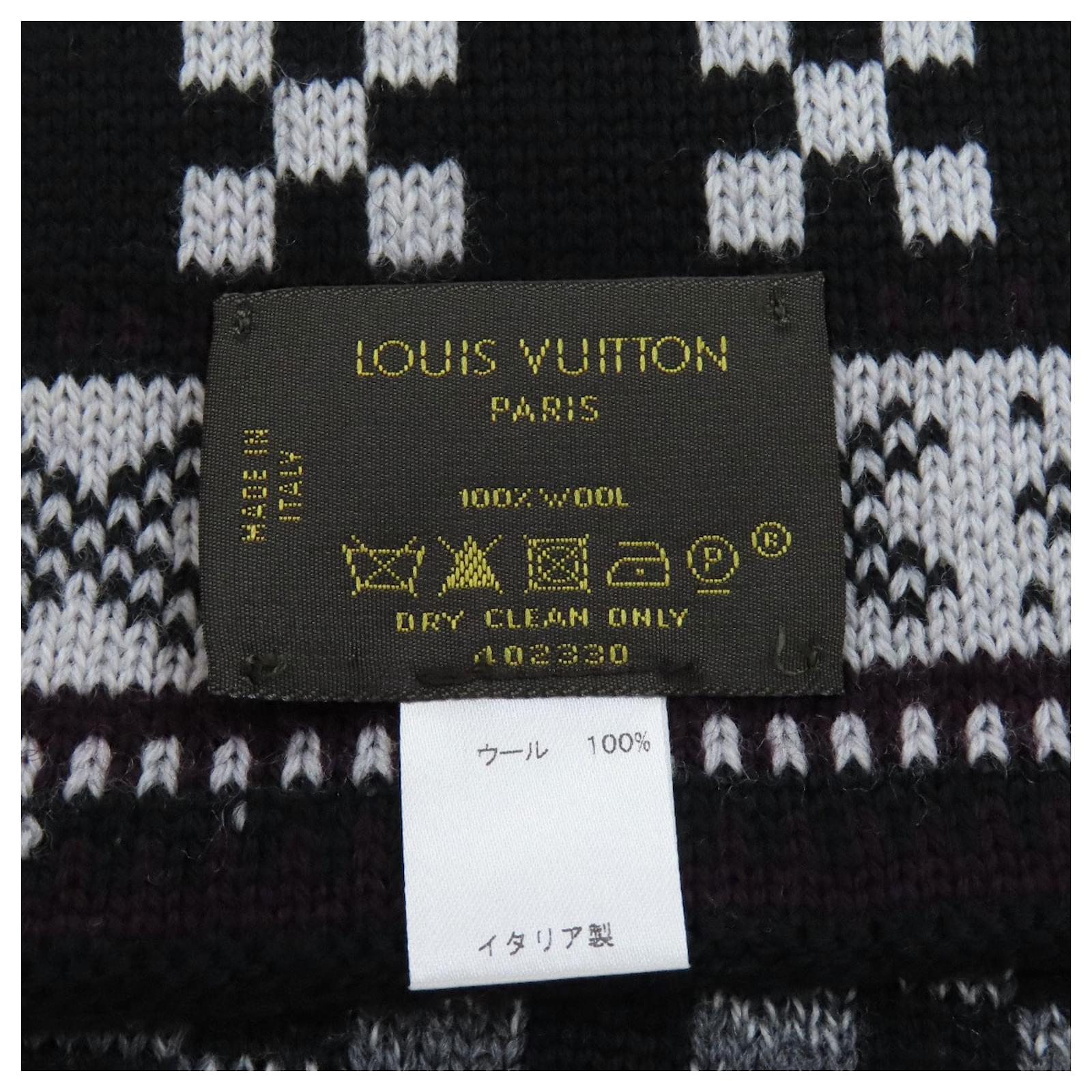 This Louis Vuitton stole, model M72929 Echarpe Flocon, is crafted from wool and features a classic black color. Measuring 1.62 meters in length and 26.5 centimeters in width, it is designed for women's fashion. The scarf is in used condition, classified as Rank AB, indicating it shows slight traces of usage, including minor scratches and dirt. There are also slight surface lint balls present. Potential buyers are encouraged to review the provided images for a detailed view of the item's condition. No additional accessories are included with this product.