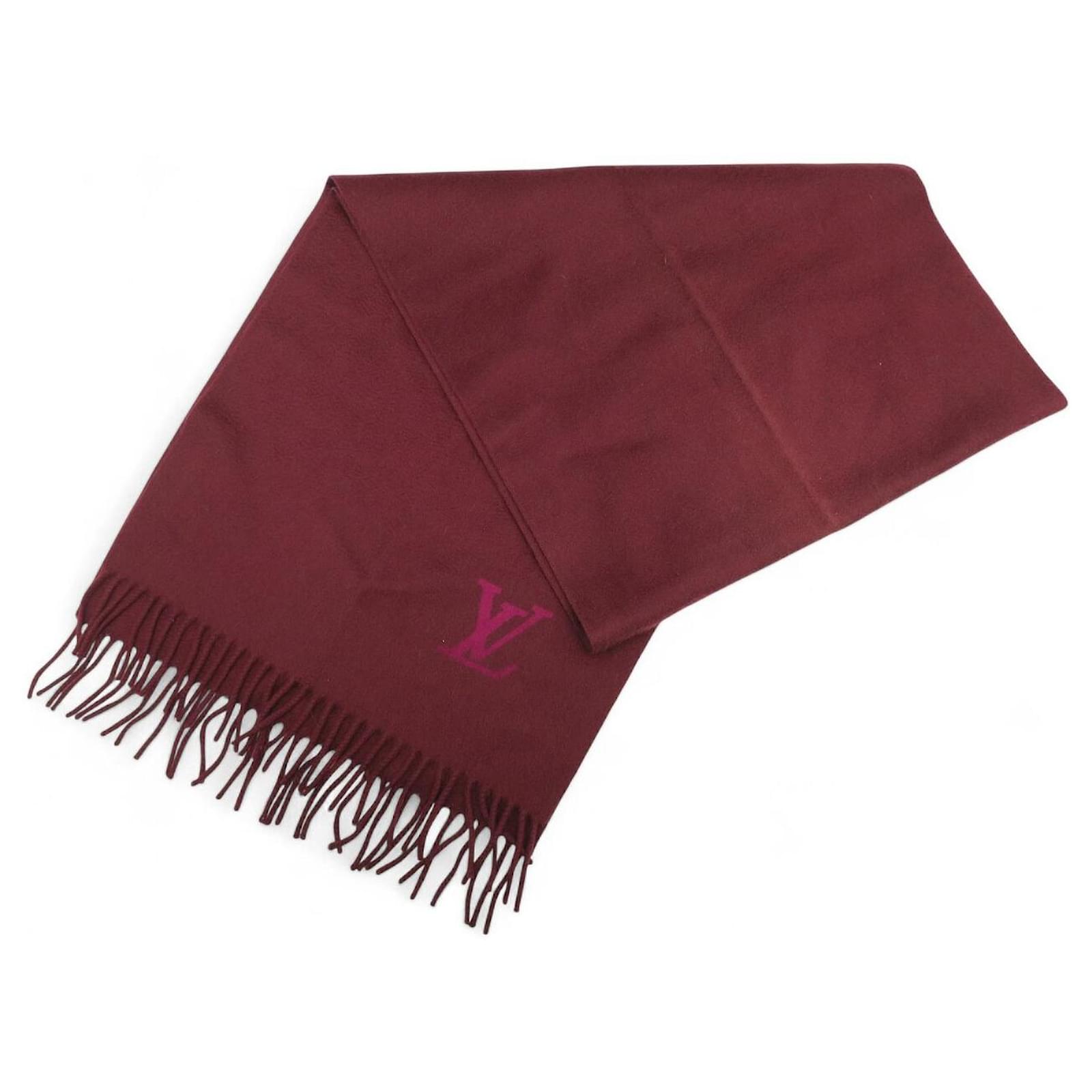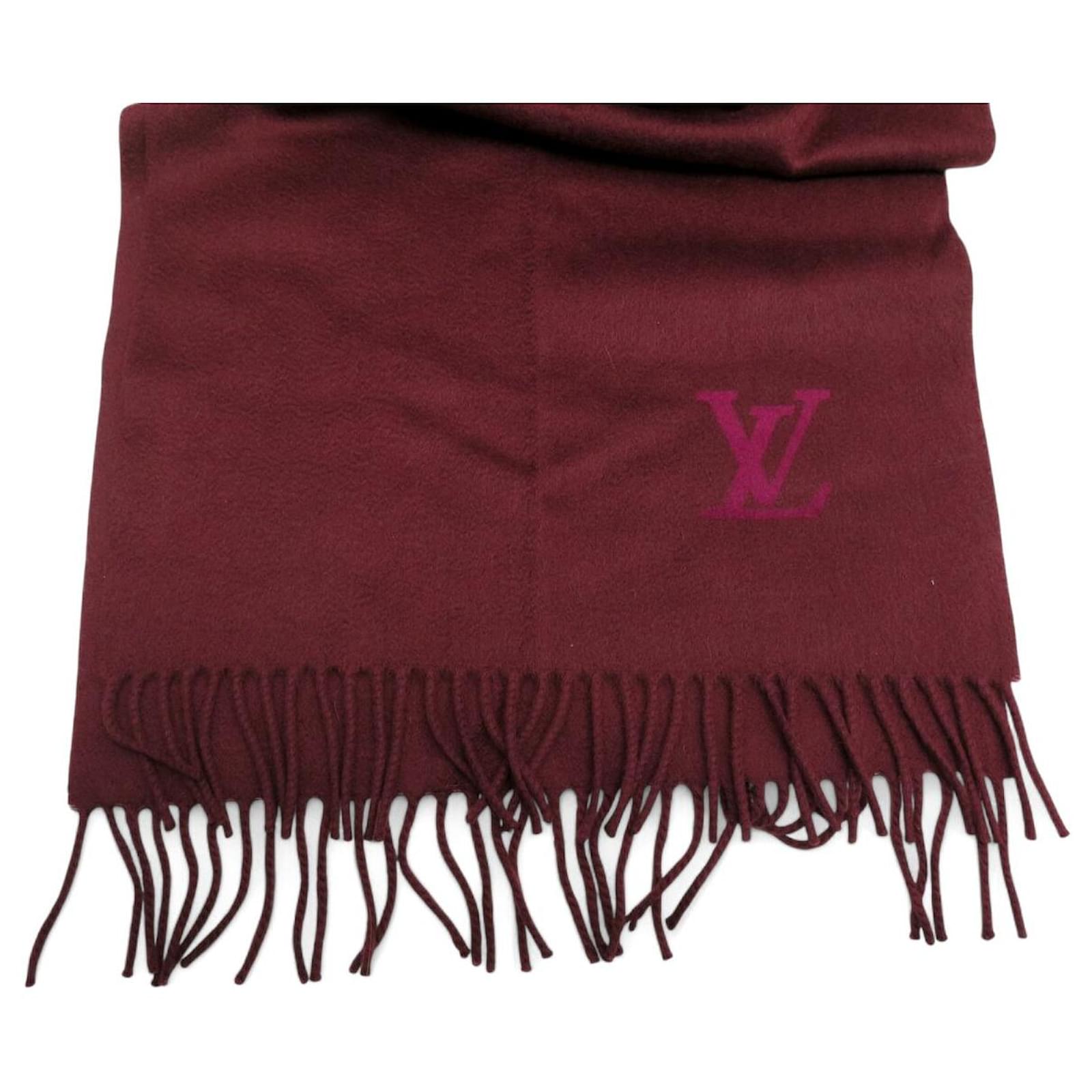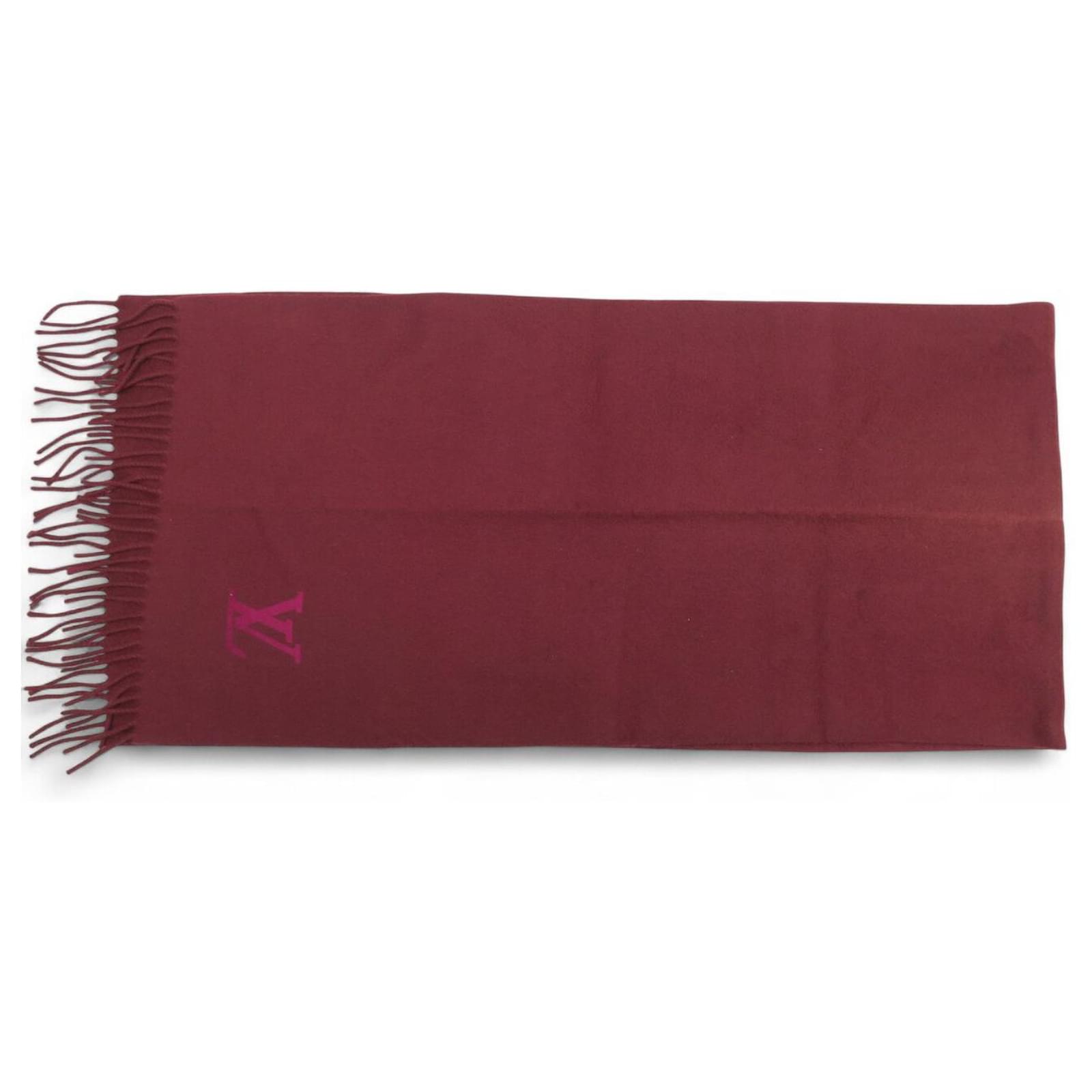 NEW LOUIS VUITTON JHELAM FRINGED CASHMERE SCARF WITH LV LOGO Dark red