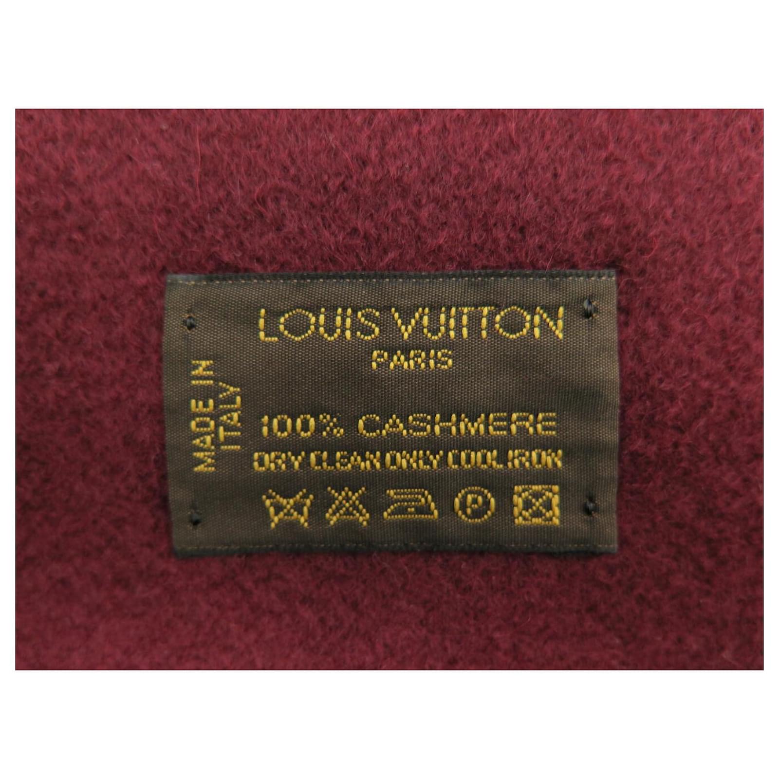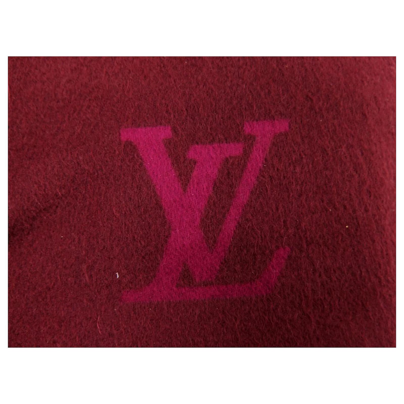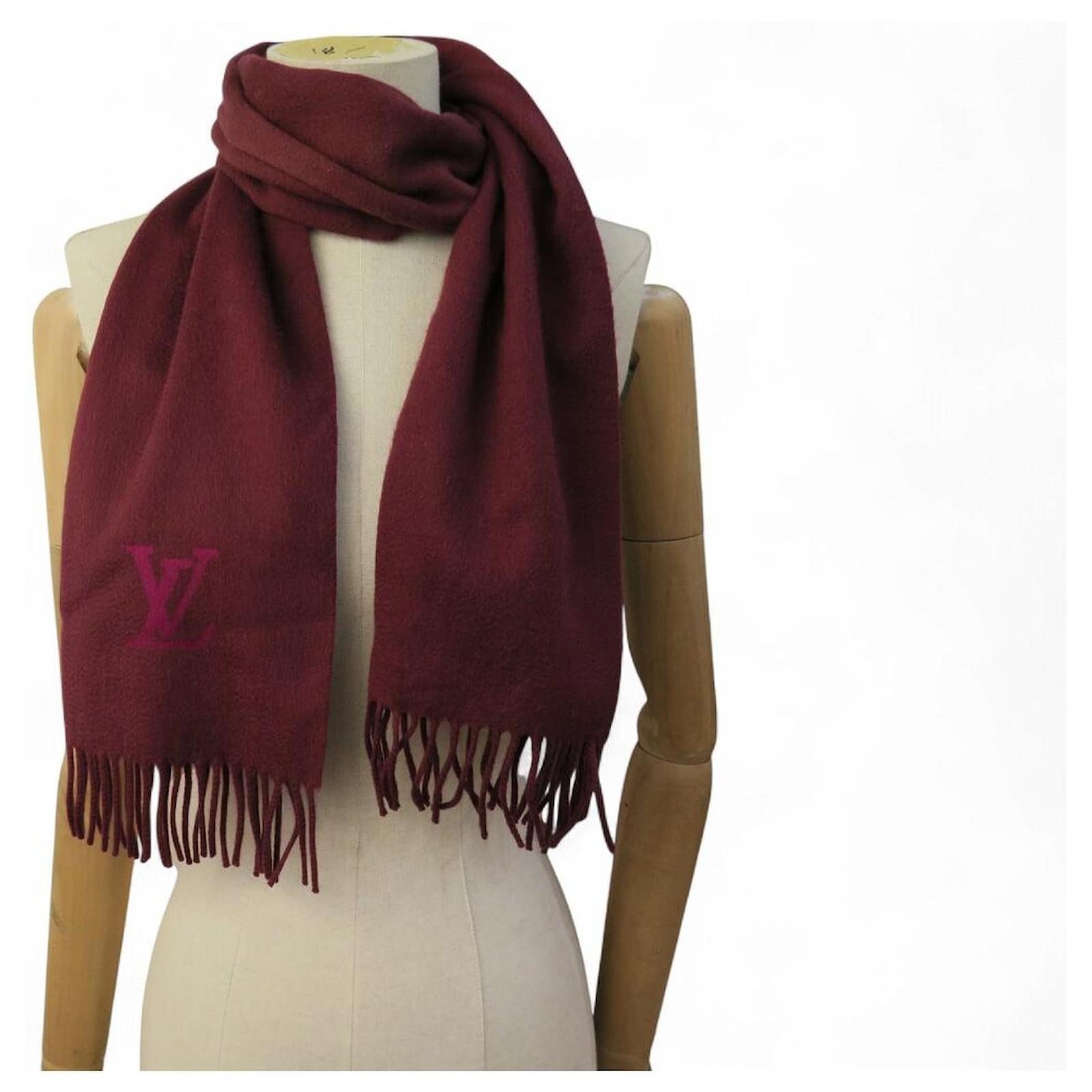 NEW LOUIS VUITTON JHELAM FRINGED CASHMERE SCARF WITH LV LOGO Dark red