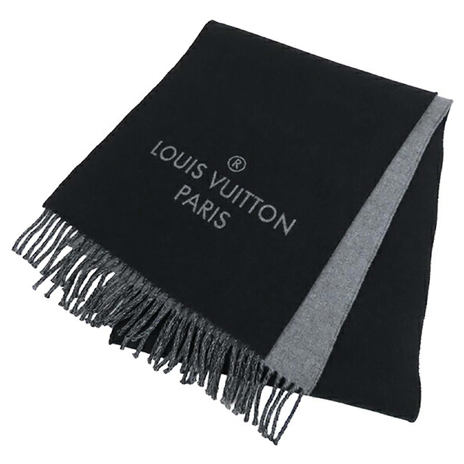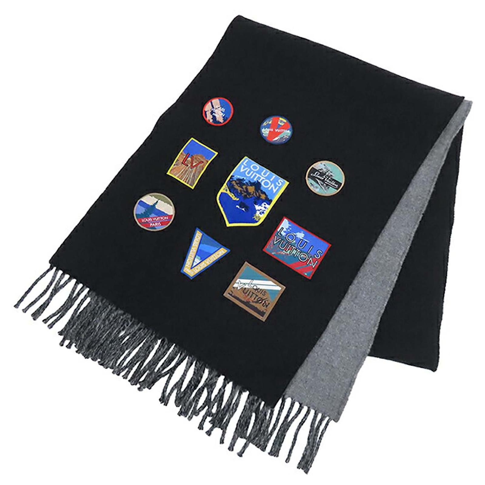 Louis Vuitton Black Wool and Cashmere Echarpe City Alps Logo Patch Scarf