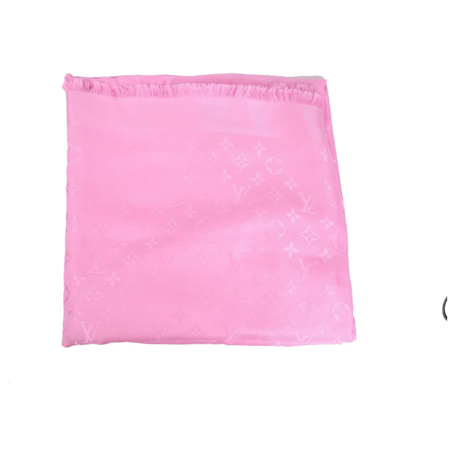 Model: Monogram ClassicMaterial: Silk | WoolColor: PinkDimensions: 142cm x 142cmJacquard weaveTone-on-tone Monogram patternFringed borderSome pulled threads