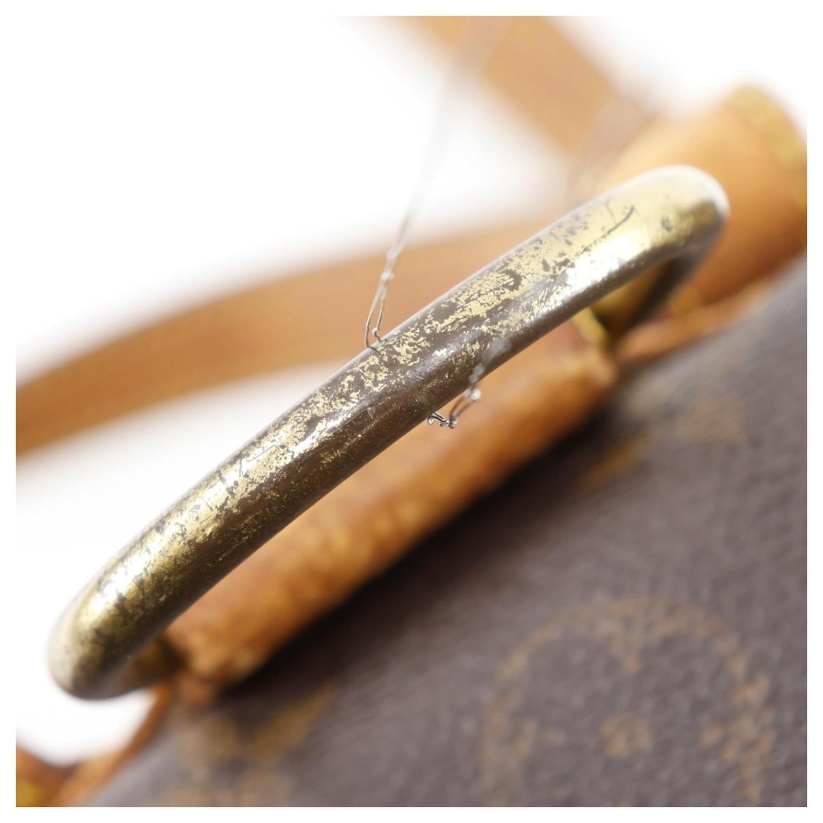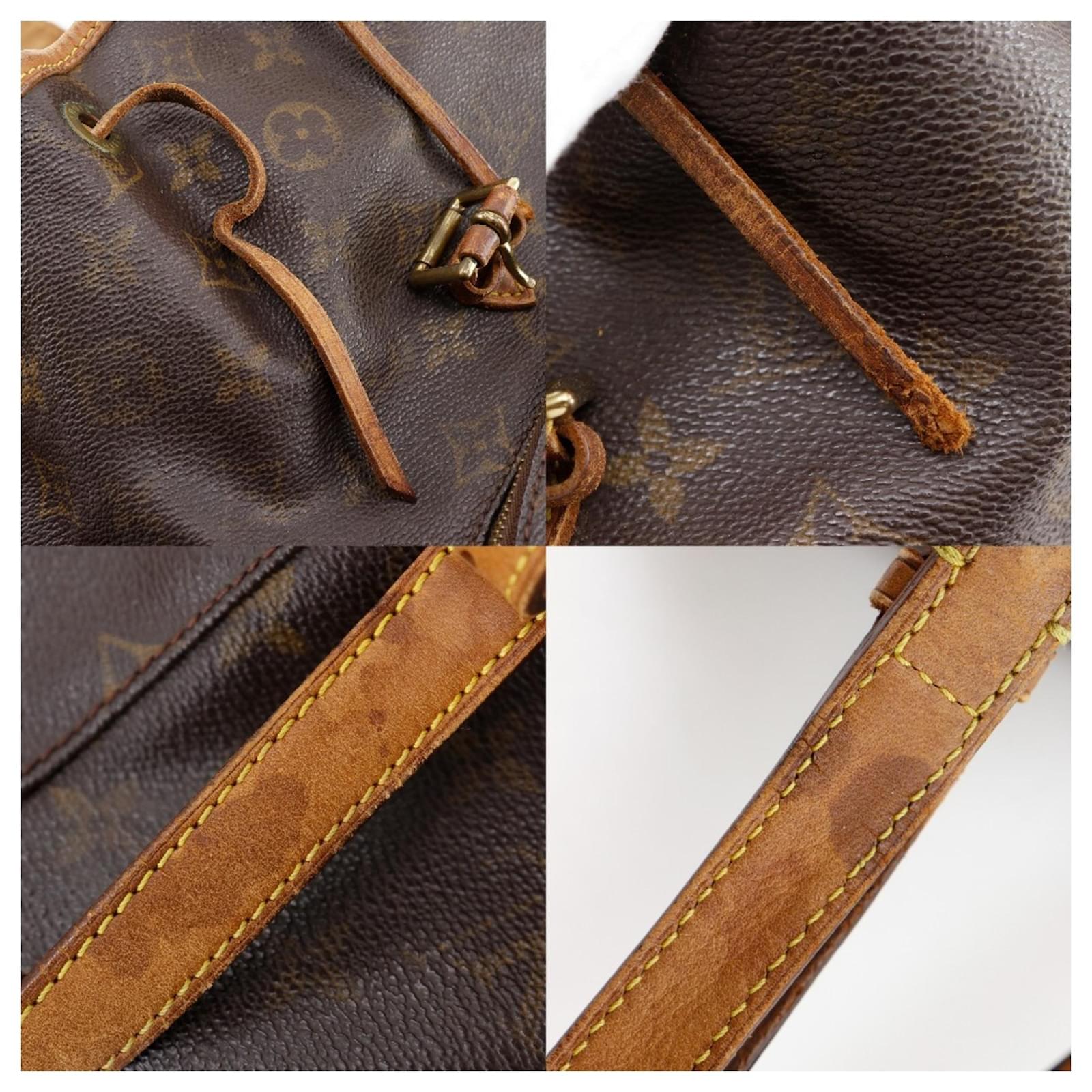 This Louis Vuitton Montsouris MM Backpack, model M51136, features a brown monogram canvas design. It measures 28cm in height, 25cm in width, and 12cm in depth, making it a practical choice for daily use. The backpack is categorized as used, rated Rank B, indicating visible traces of usage with some damages and dirt, yet remains in acceptable condition for continued wear. Notable details include slight overall cracking and peeling on the exterior, as well as slight discoloration. The handle also shows slight cracking, and there are moderate levels of overall scratches and dirt. No accessories are included with this item. Potential buyers are advised to review the provided images for a precise understanding of the item's condition.