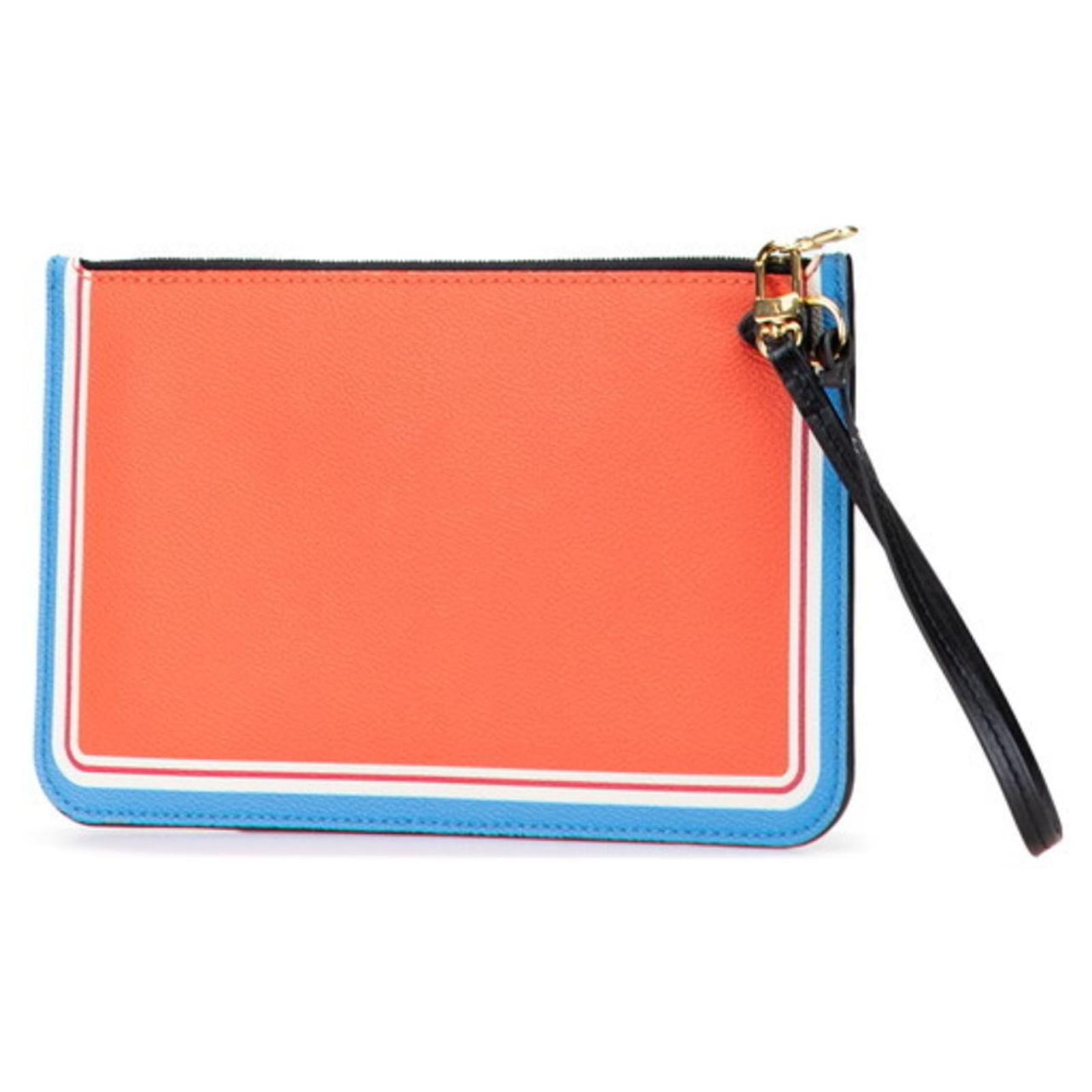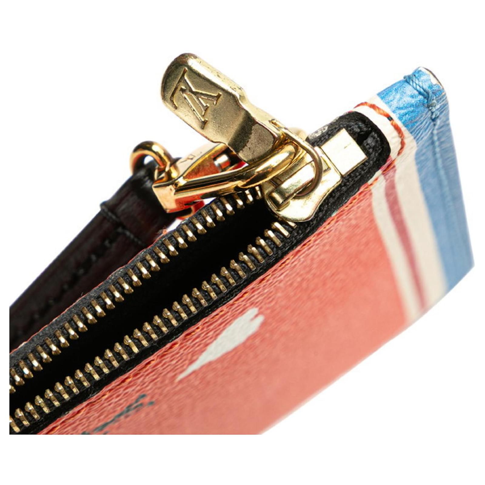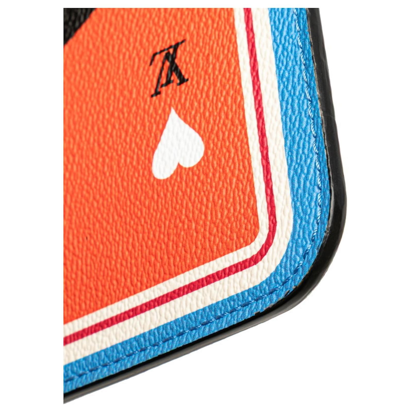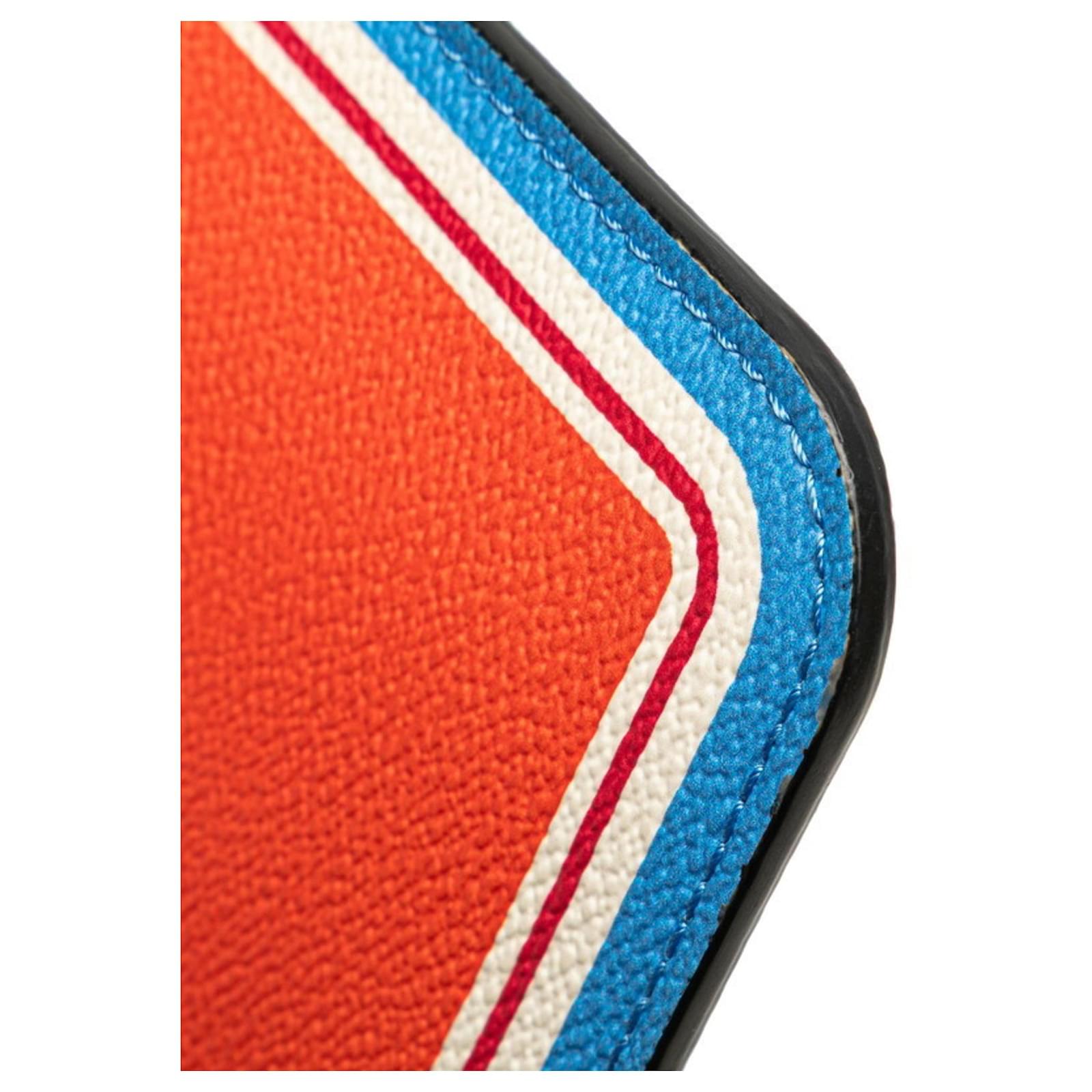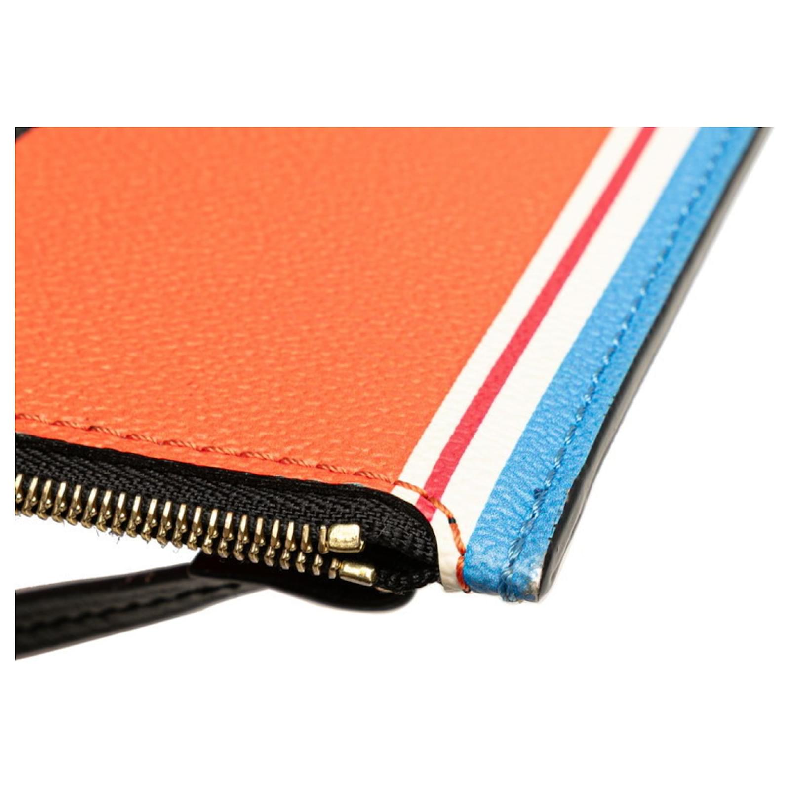 The Louis Vuitton Monogram Game On Neverfull MM Accessory Pouch is a stylish and functional item designed for women. This pouch features a zipper closure and is crafted from a combination of PVC and leather, showcasing a vibrant blue and orange color scheme.