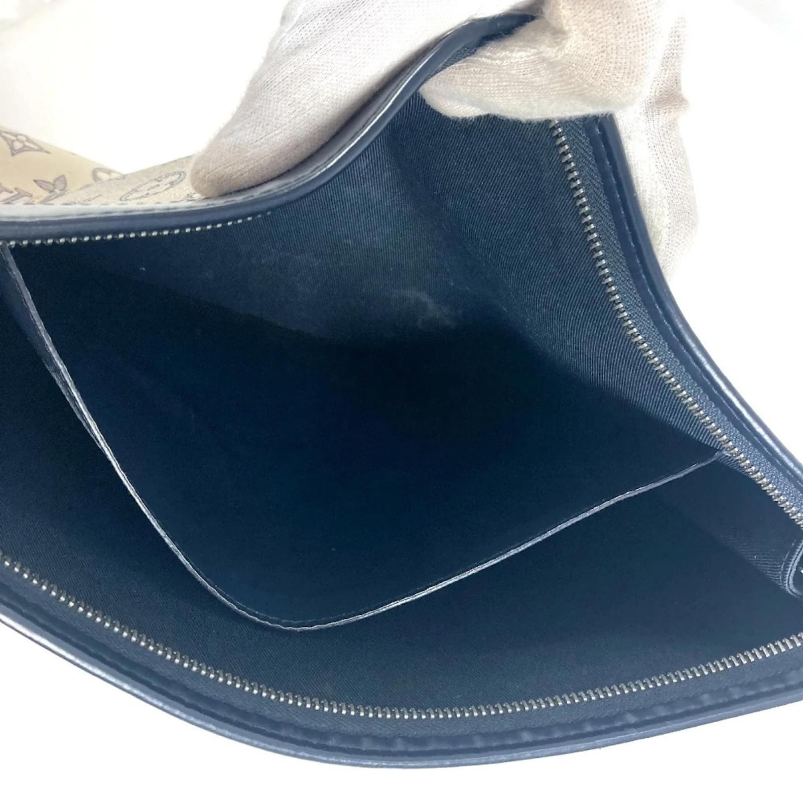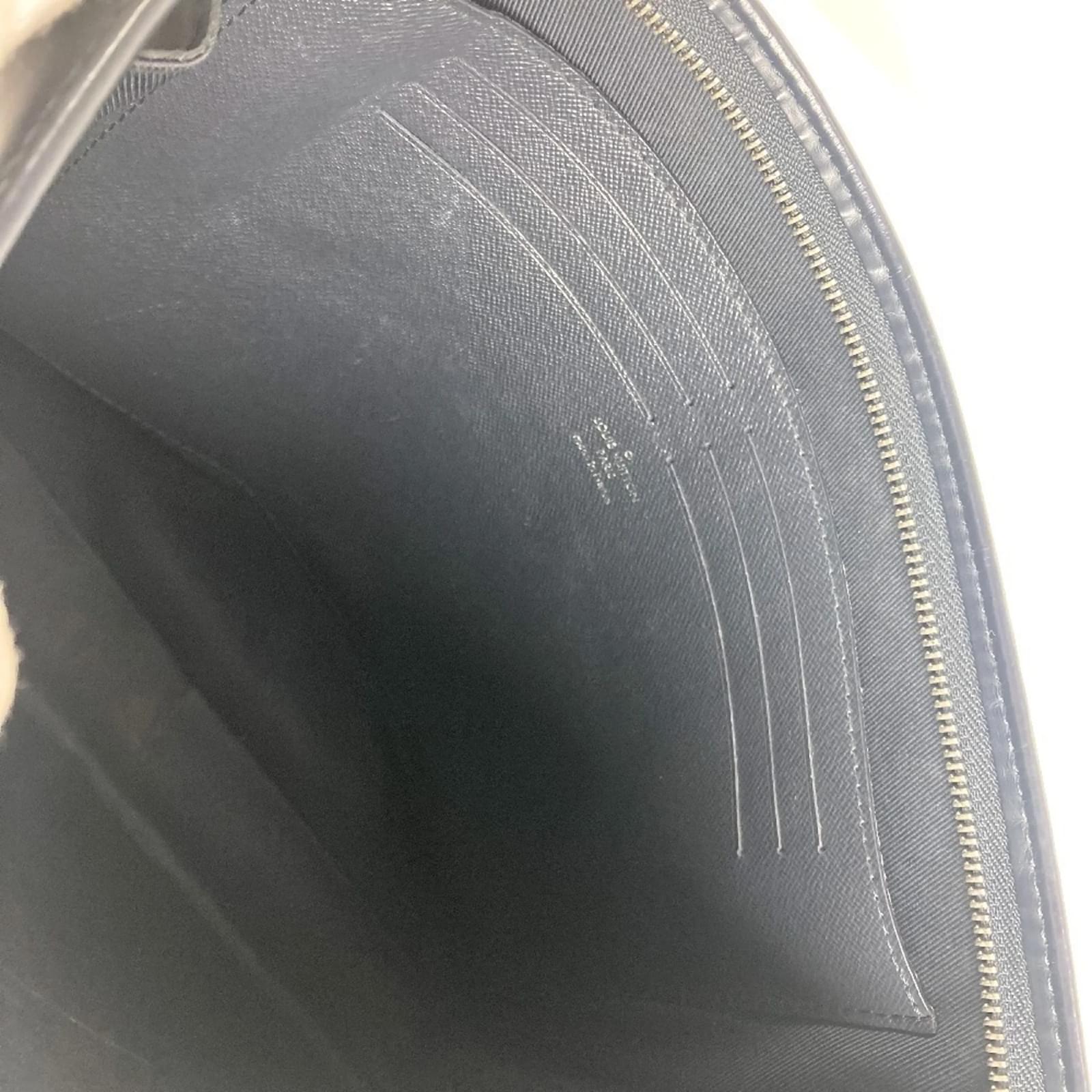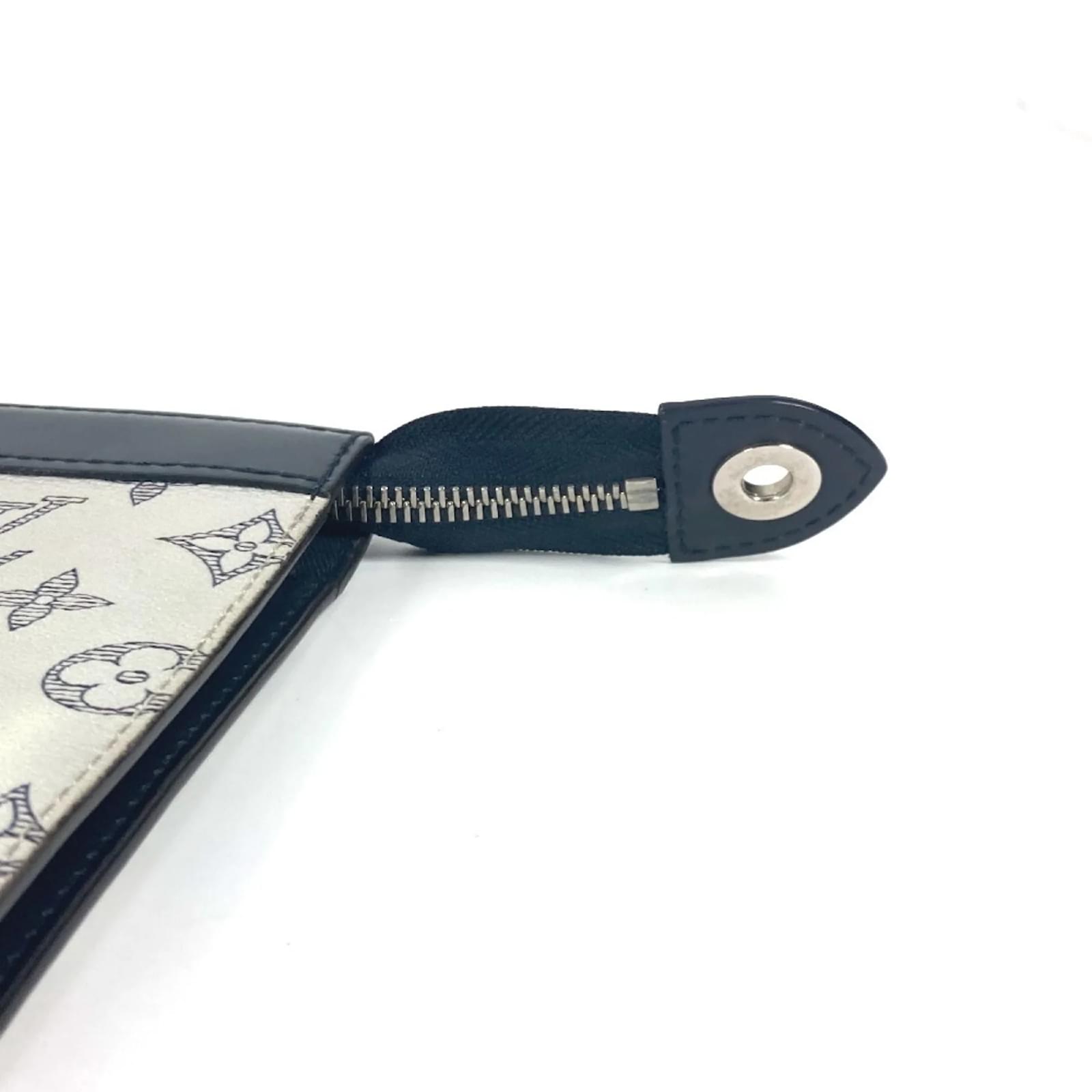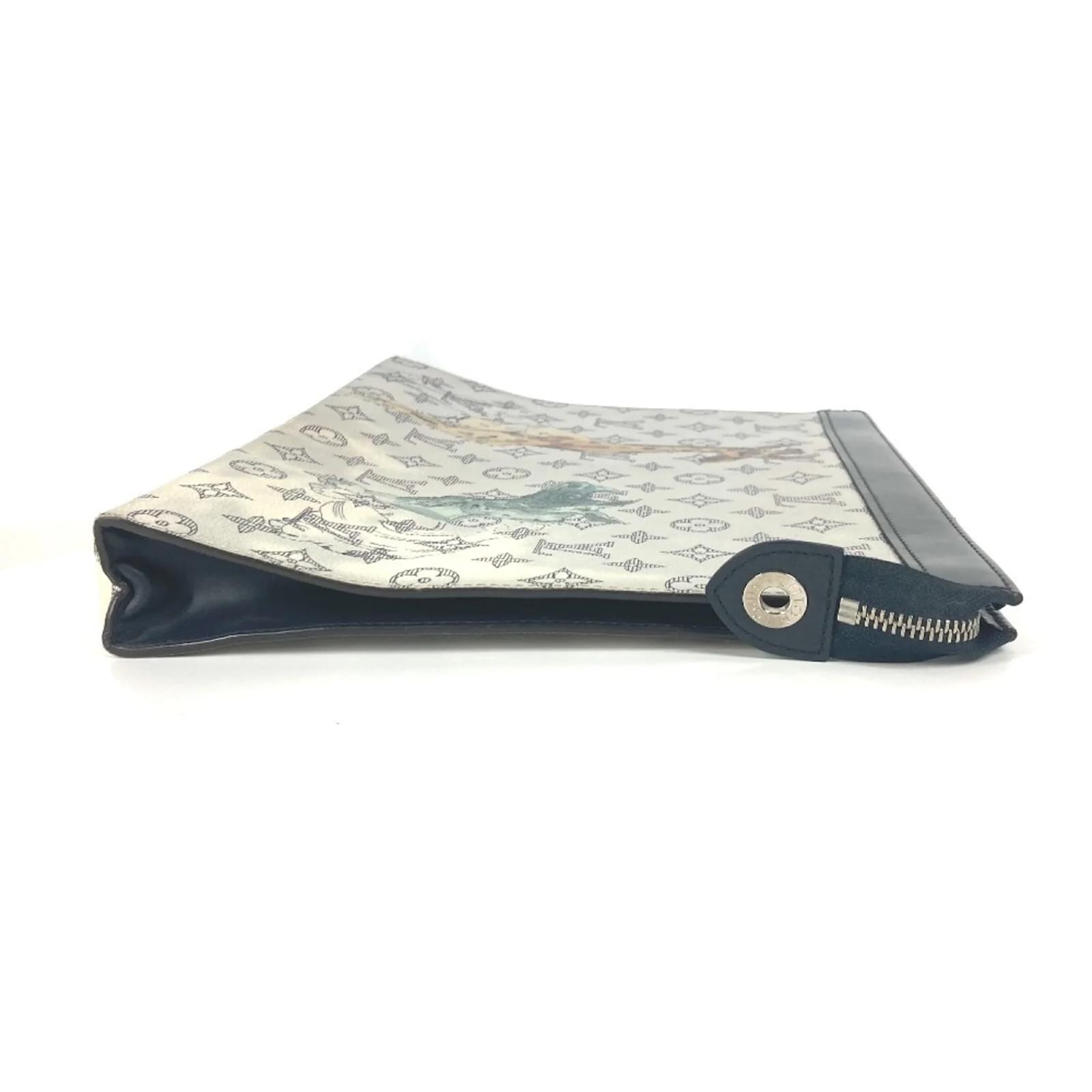 This Louis Vuitton Monogram Savannah Chapman Brothers Pochette Voyage GM Pouch Bag is designed as a versatile clutch, suitable for both men and women. It features a navy and white leather exterior, measuring 26cm in height and 32.5cm in width. The bag is classified as used but remains in good condition, showing slight traces of use, including minor scratches and dirt. It is important to review the provided images for a detailed view of the item's condition. No additional accessories are included with the purchase.