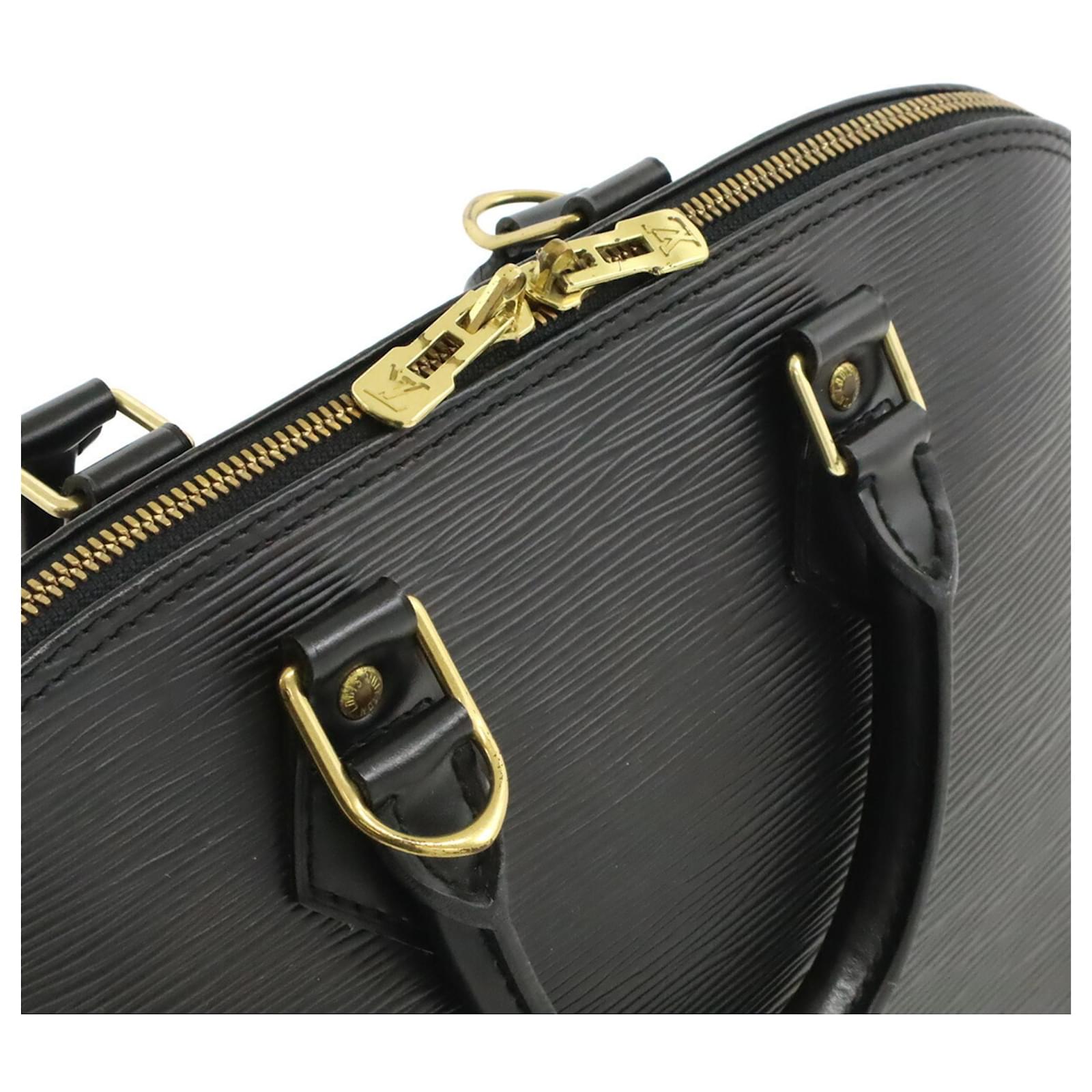 The Louis Vuitton Epi Alma Handbag is crafted from high-quality Epi leather in a sophisticated black hue. This stylish handbag measures 24 cm in height, 34.5 cm in width, and 16.5 cm in depth, making it a practical choice for daily use.
