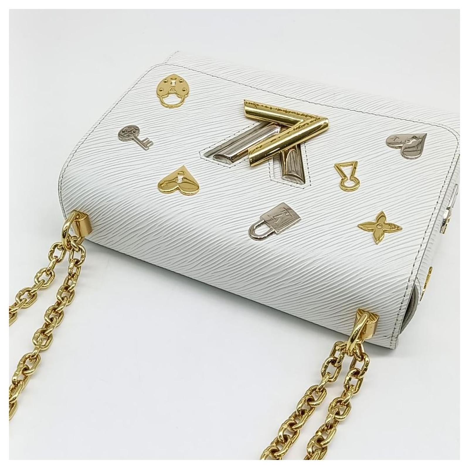 This Louis Vuitton Epi Twist MM (model M52890) is a white women's bag made in France. It shows natural signs of use, including peeling and scratches on the gold turnlock and corner wear, with a well-kept interior. Body: Turnlock gold plating peeling and scratches Strap (with) : Natural feeling of use Interior: Good Corner: Wear SR0159 COO: FRANCE Gender: WOMEN Color: white Dimension: Length 23 cm x Height 16.5 cm x Width 9 cm Condition: A Designer: LOUIS VUITTON