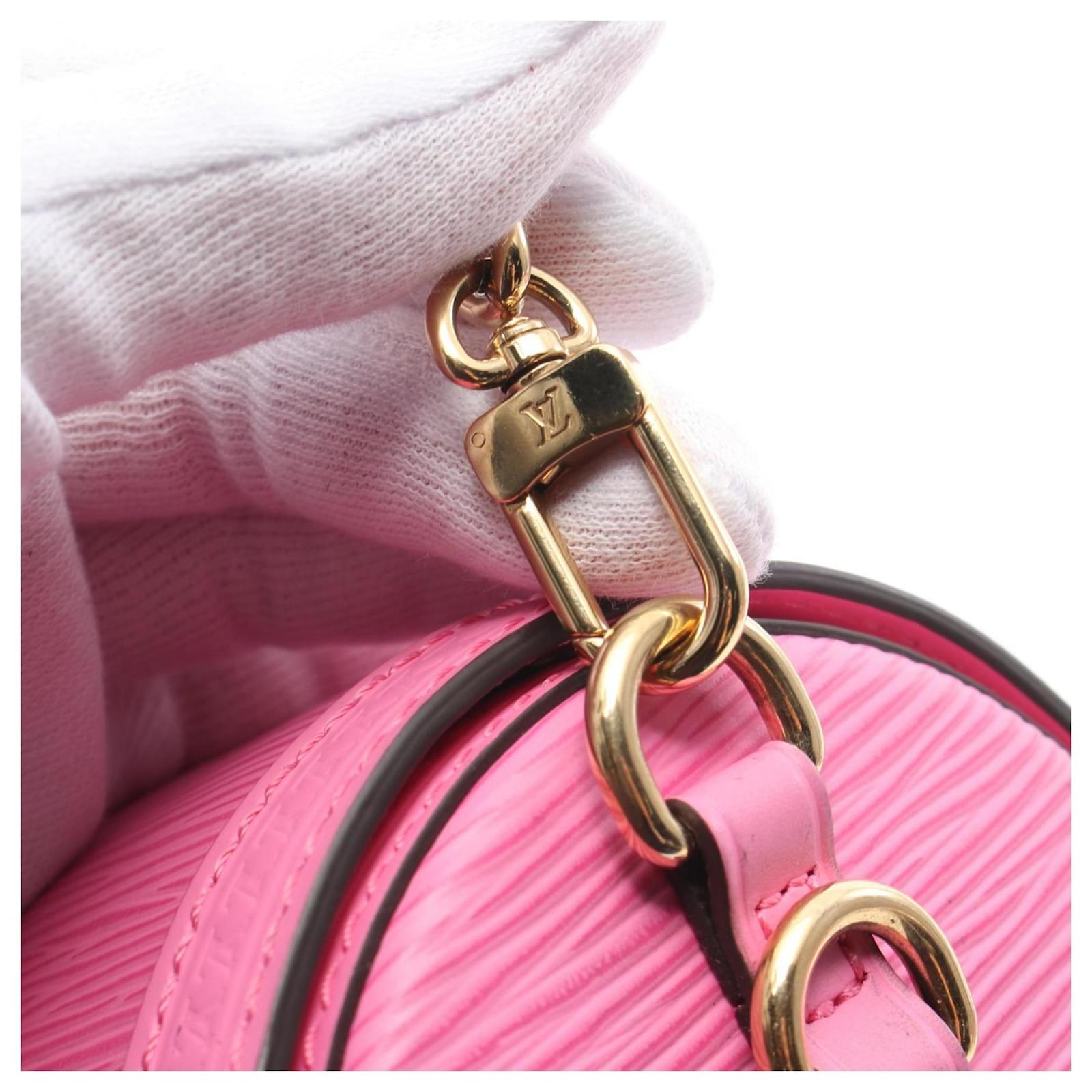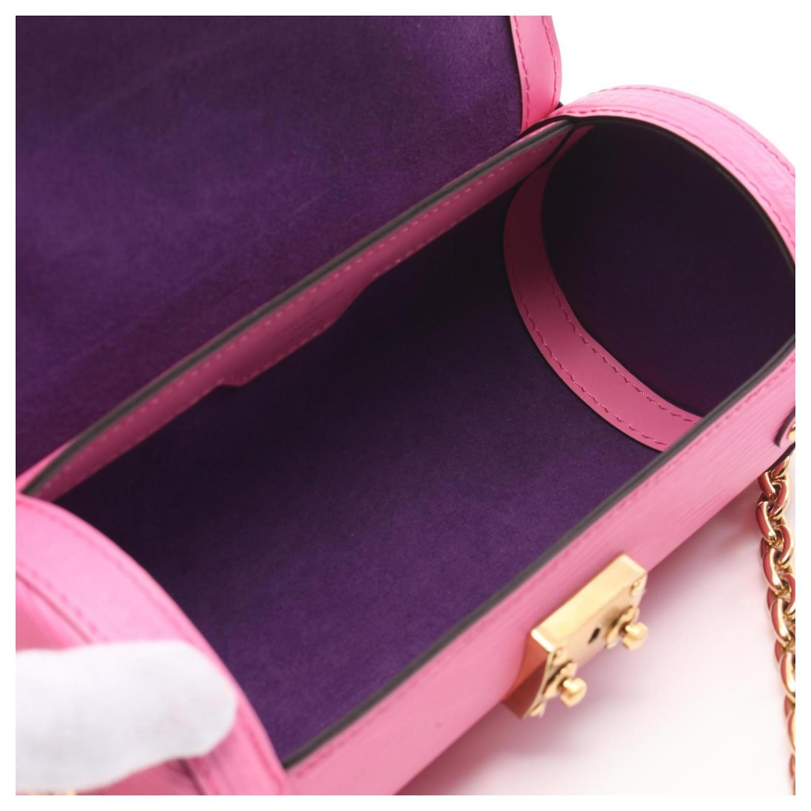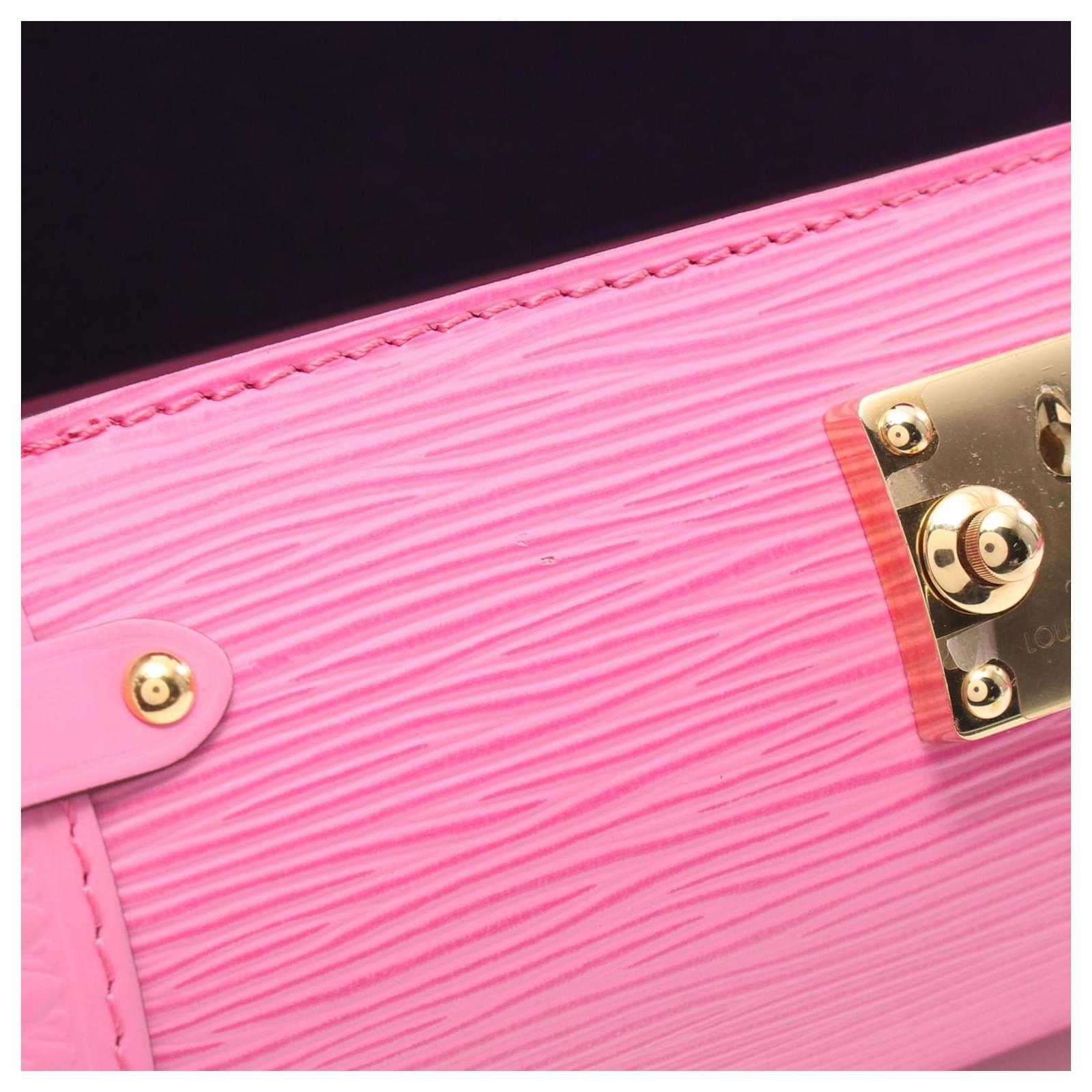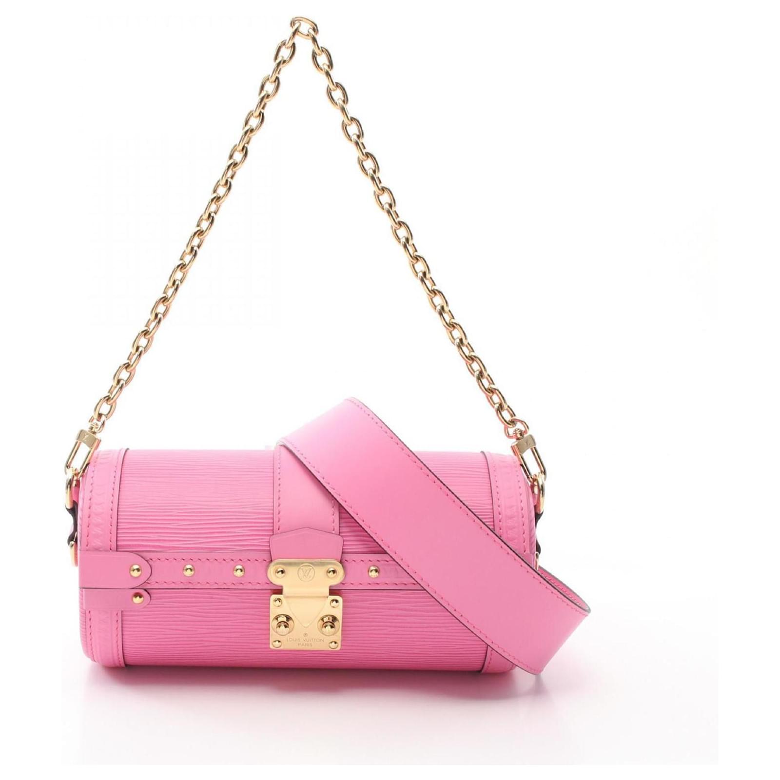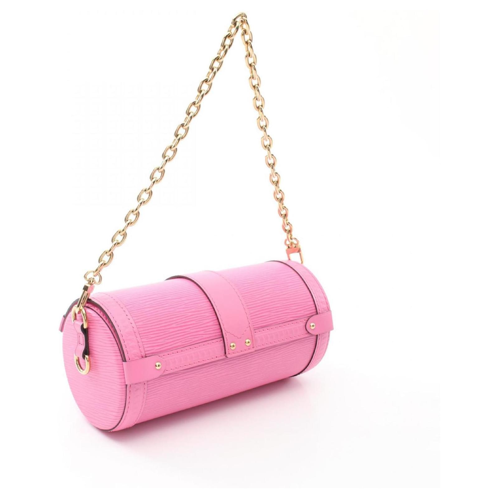 The Louis Vuitton Papillon Trunk Handbag is crafted from Epi leather in a pink and rose pink color scheme. This handbag measures 9.5cm in height, 20cm in width, and 9.5cm in depth, making it a compact accessory suitable for various occasions.