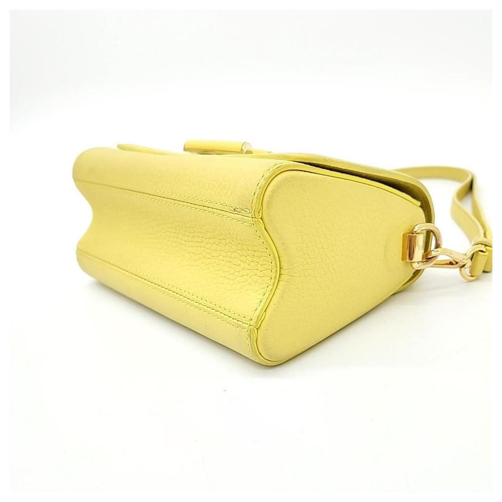 Contents: Made of yellow tone leather, twisted PM size with handle detail as a point, good storage capacity. Body - overall dark staining, minor staining on both sides, white staining on flap, turnlock staining Handle - dark staining Strap (exact) - stains, gold scratches Interior - fine stains, partially darkened Edges - Minor wear Comes with Case, Dust, Invoice & Other COO: FRANCE Gender: WOMEN Color: YELLOW TONE Dimension: 18.5cmcm x 14.5cmcm x 9cmcm Condtion: FAIR Designer: LOUIS VUITTON