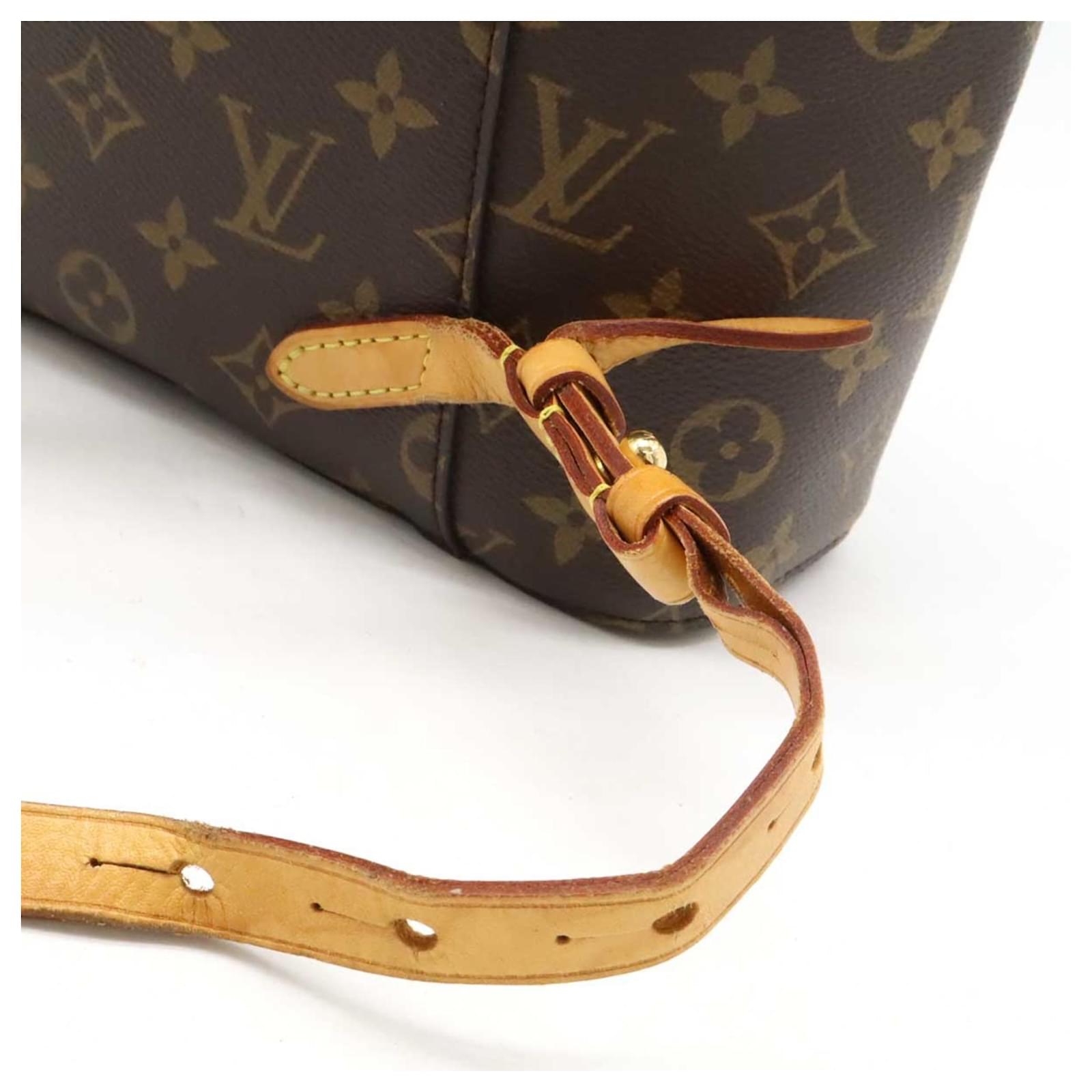 Measuring 30cm x 25cm x 9.5cm, this item is classified as used but remains in good condition, showing slight traces of usage, including minor scratches and dirt. Notable imperfections include some discoloration on the vachetta leather, a slight stickiness on the front, and minor wear on the straps and hardware.