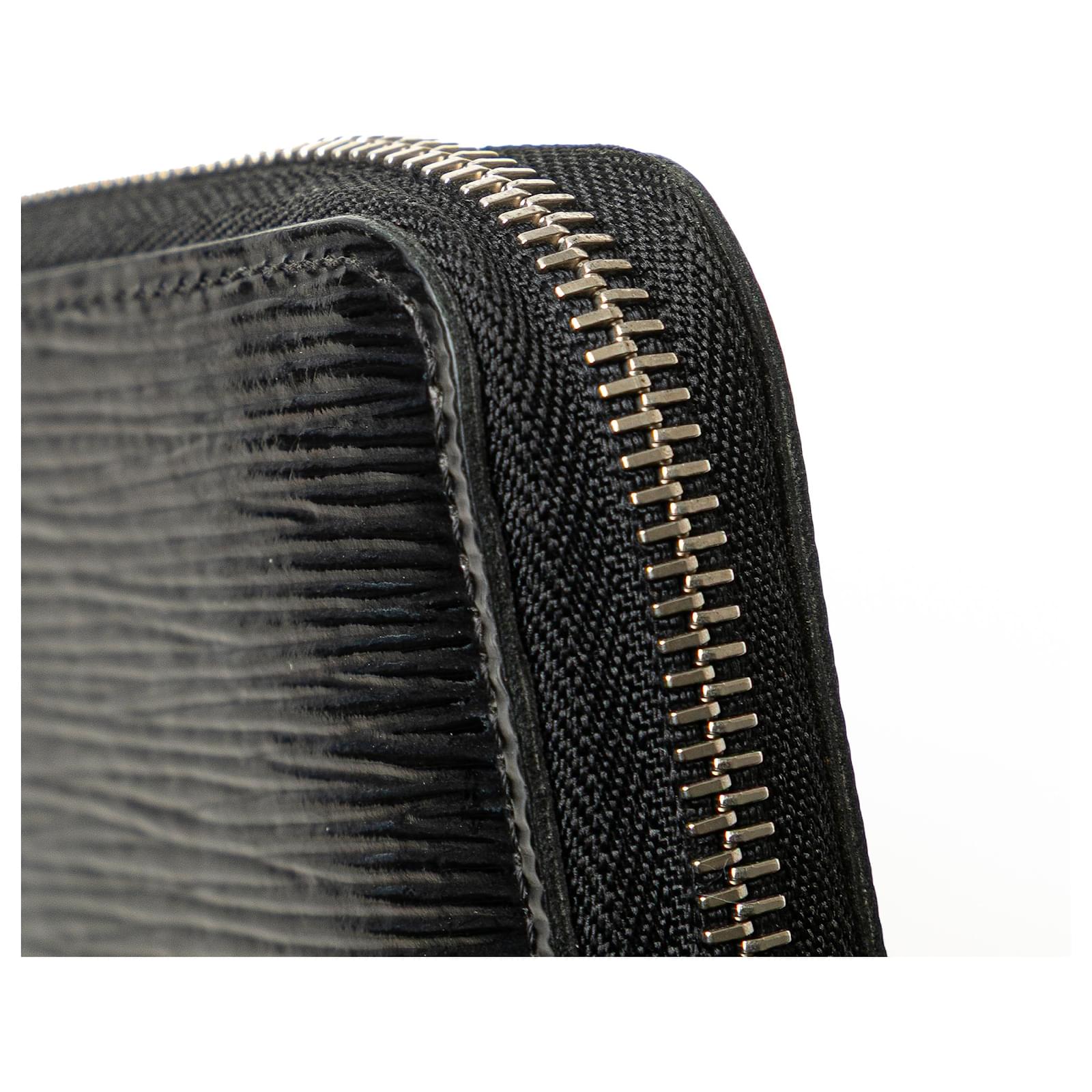 This long wallet features an epi leather body, a zip-around closure, and interior zip and slip compartments. It carries a B+ condition rating.