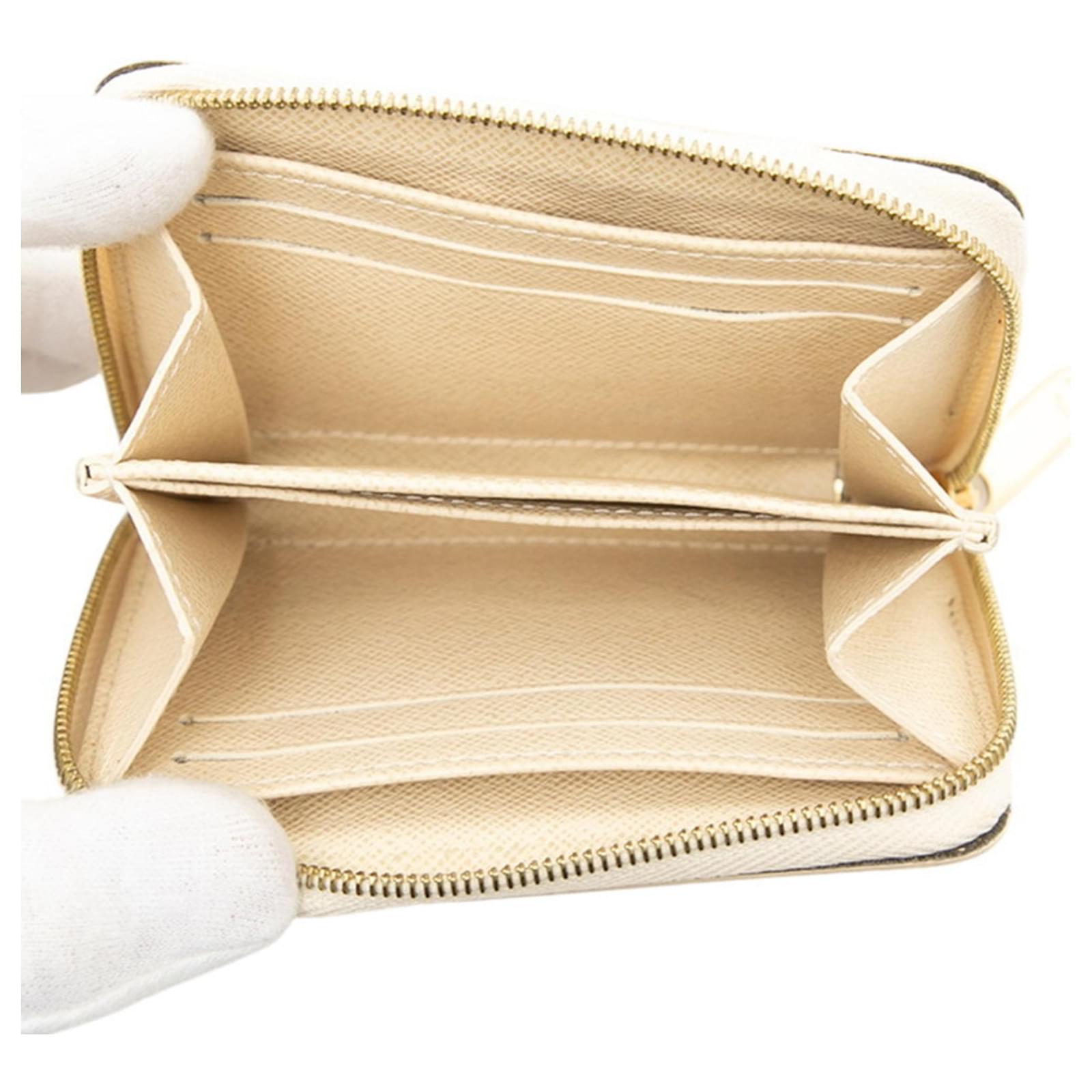 This Louis Vuitton Damier Azur Zippy Coin Purse is crafted from a combination of PVC and leather, primarily in a white hue. Its dimensions measure 8.5cm x 11cm x 2cm, making it a compact accessory suitable for carrying coins or business cards. The product is labeled with the model number N63069 and is categorized as a women's item.
