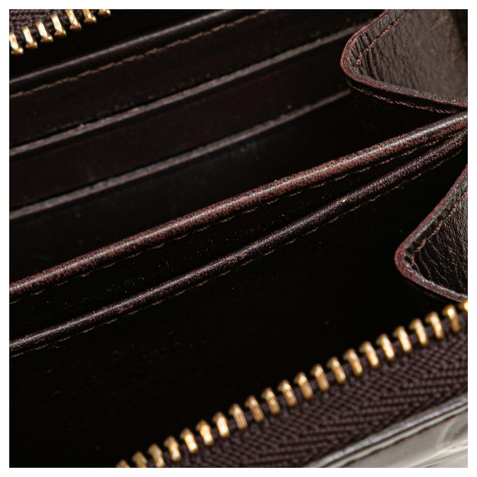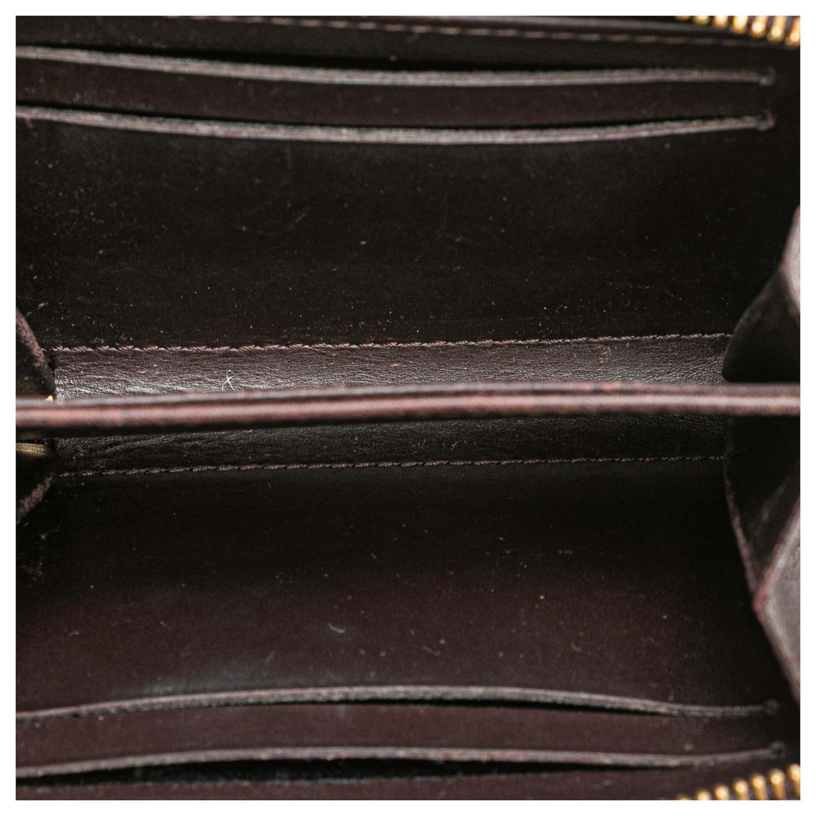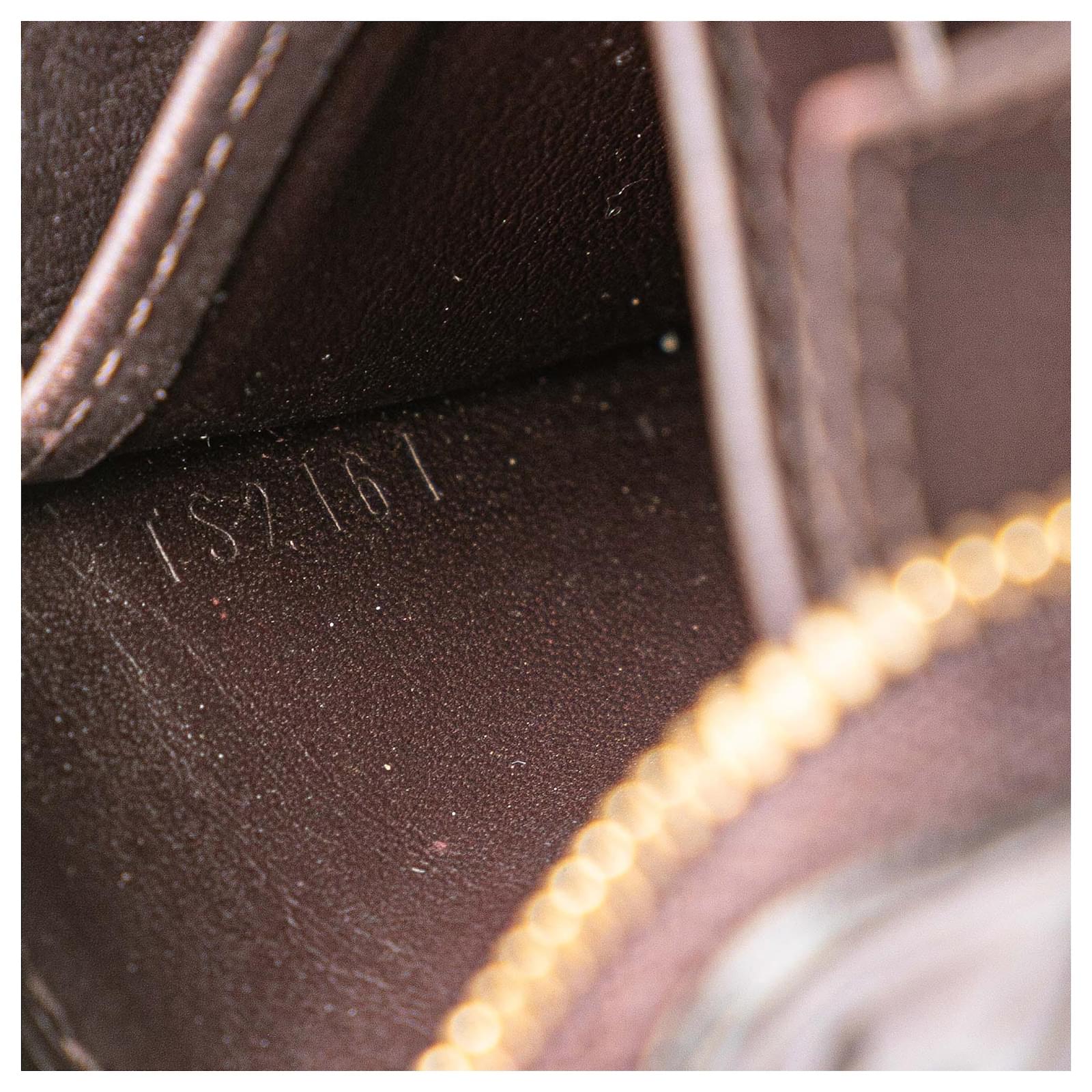 This coin purse features a monogram vernis leather body, an exterior zip closure, interior card slots, and open compartments. It carries a B+ condition rating.