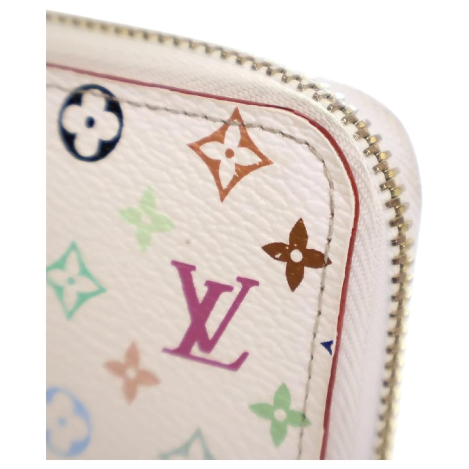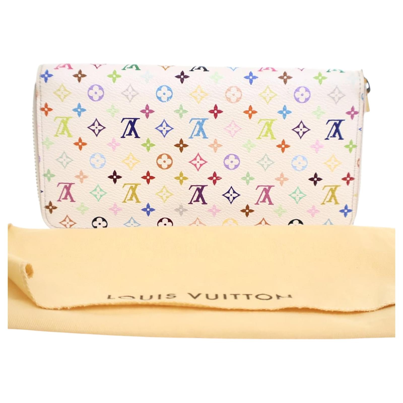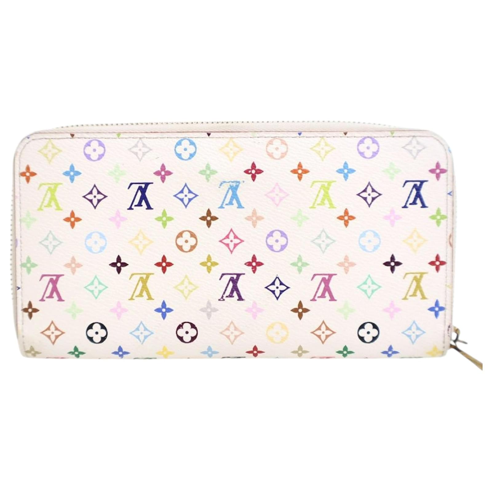 This wallet features a monogram multicolore canvas body, a zip-around closure, an interior zip compartment, interior slip pockets, and card slots. It carries an AB condition rating.